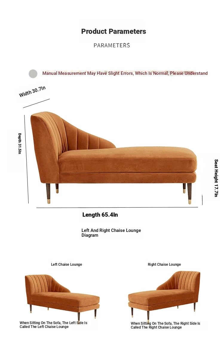 Nordic Chic Velvet Chaise Lounge Sofa - Modern Minimalist Design for Small Spaces, Ideal for Living Rooms and Balconies, Perfect for Bedrooms in a French Style