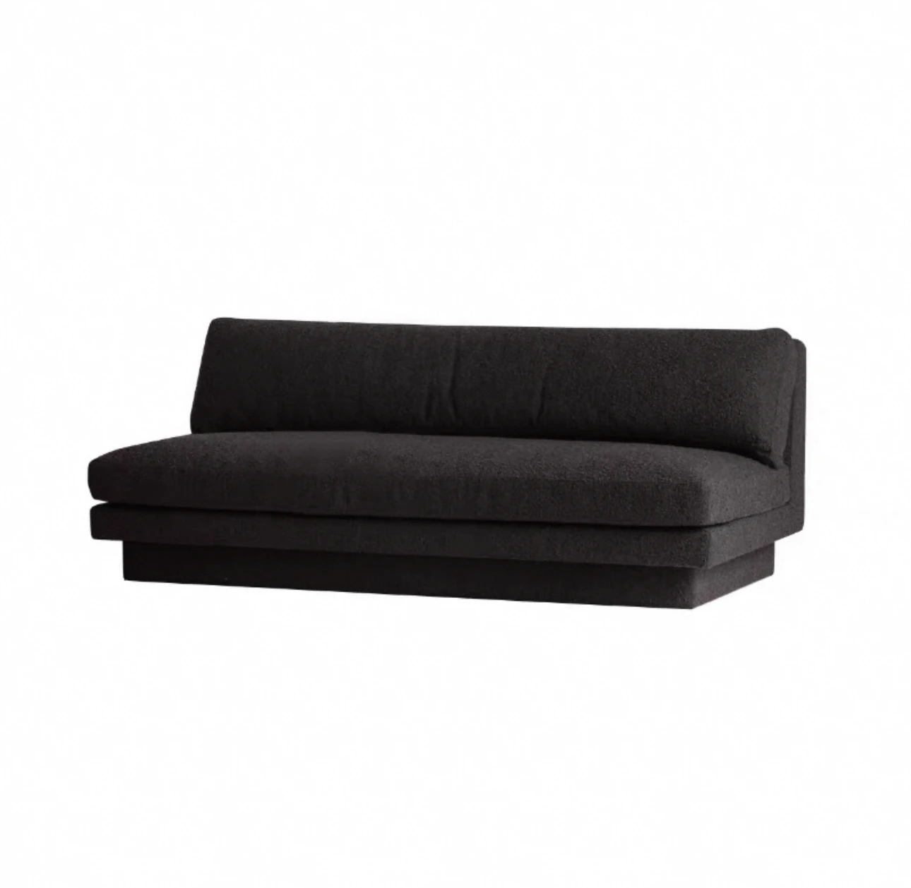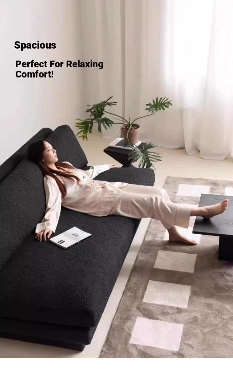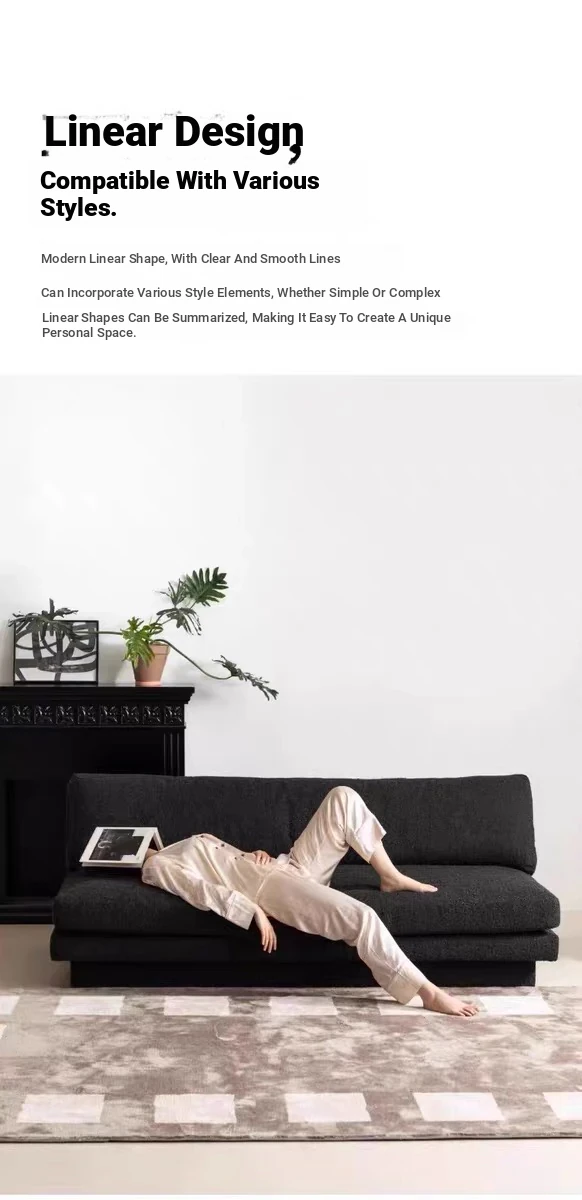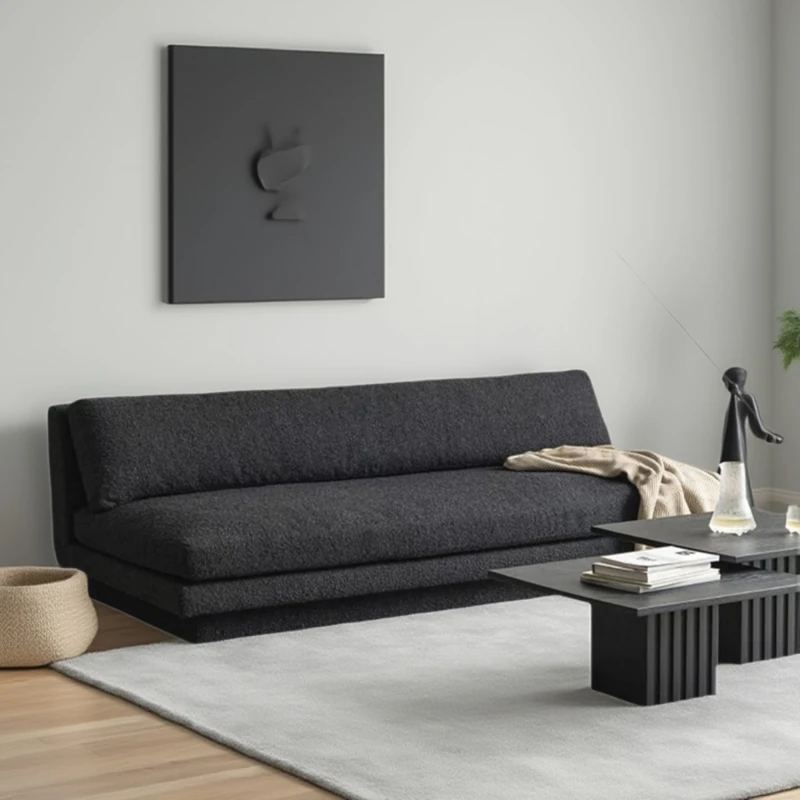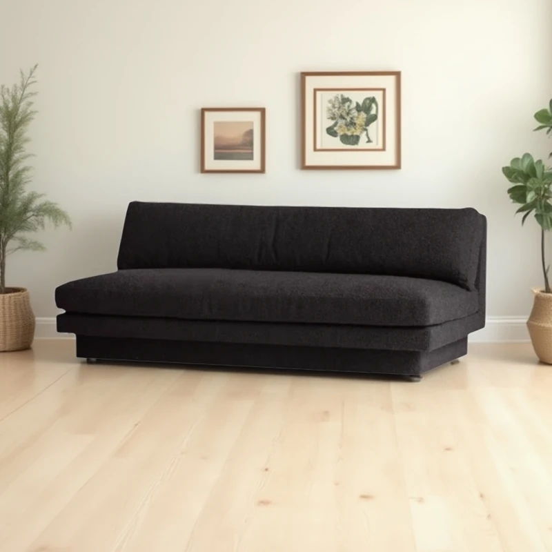 Nordic Minimalist Black Fabric Sofa - Modern Floor Sofa for Living Room, Three-Seater, Armless Design, Cozy Teddy Velvet Upholstery