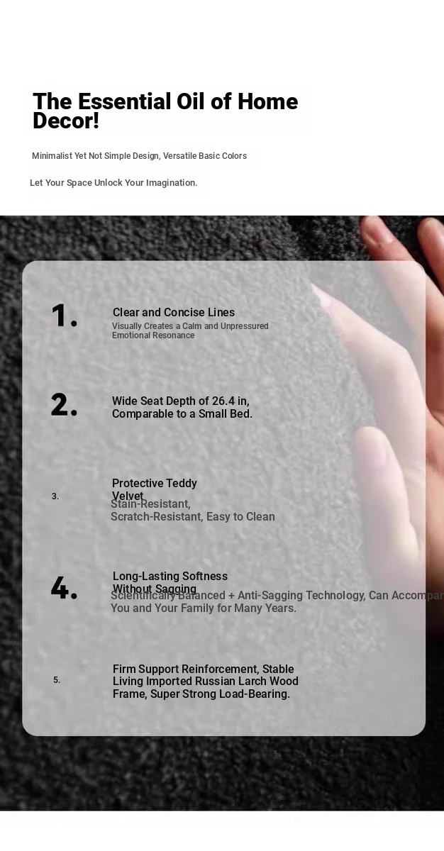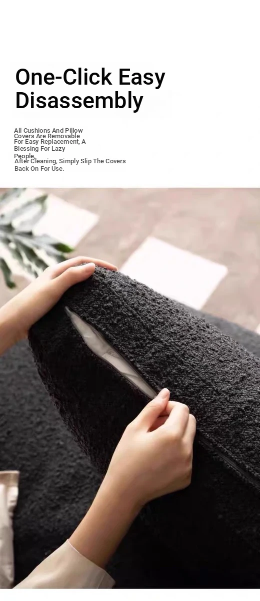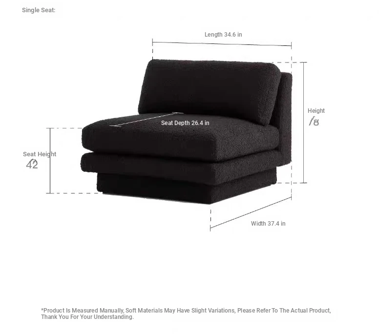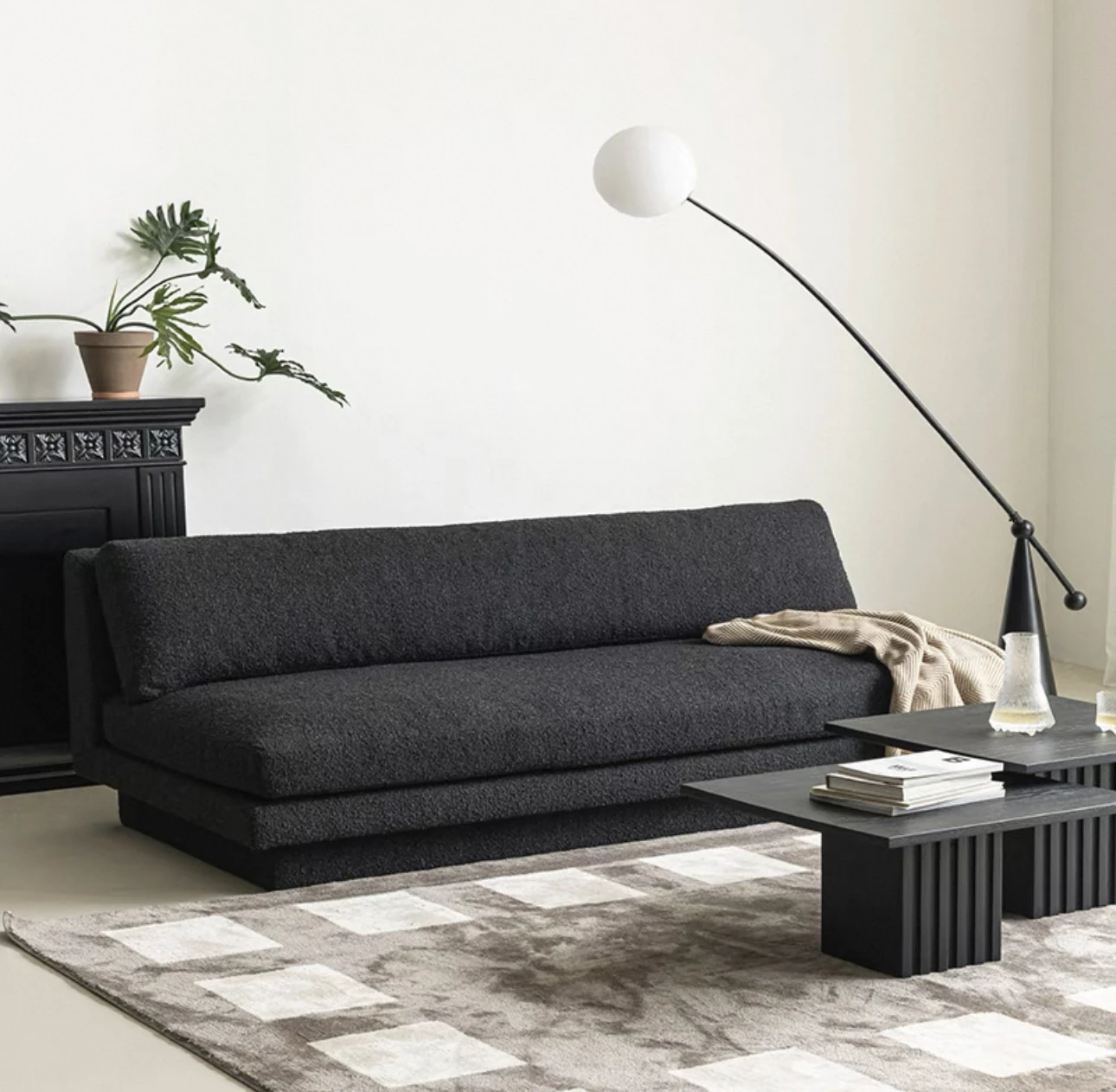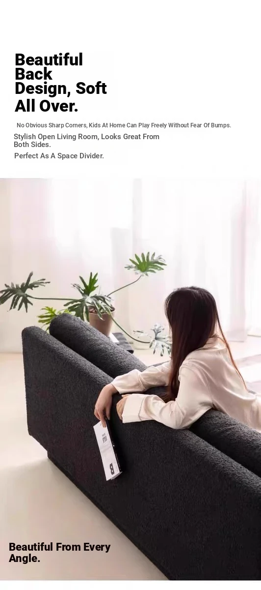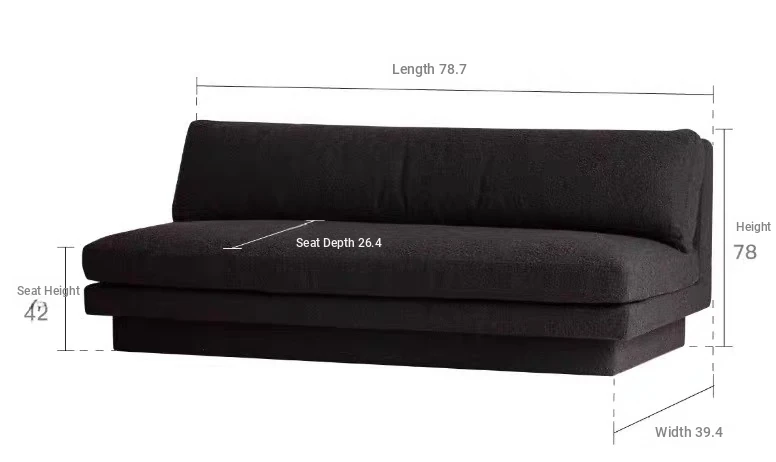 Nordic Minimalist Black Fabric Sofa - Modern Floor Sofa for Living Room, Three-Seater, Armless Design, Cozy Teddy Velvet Upholstery