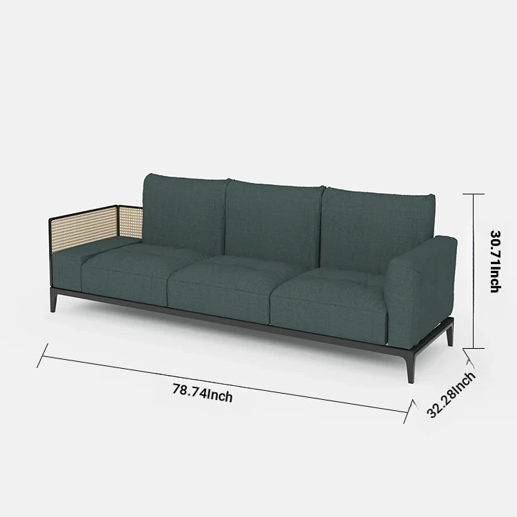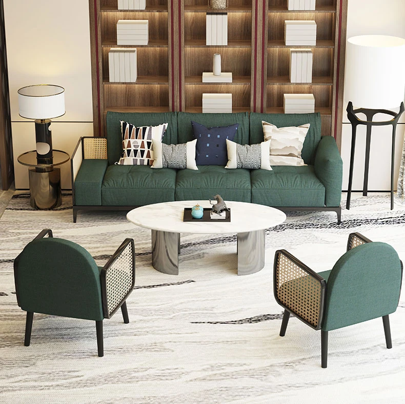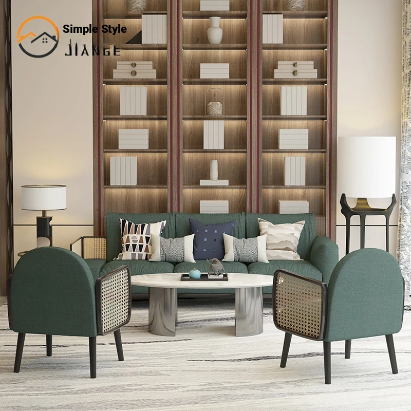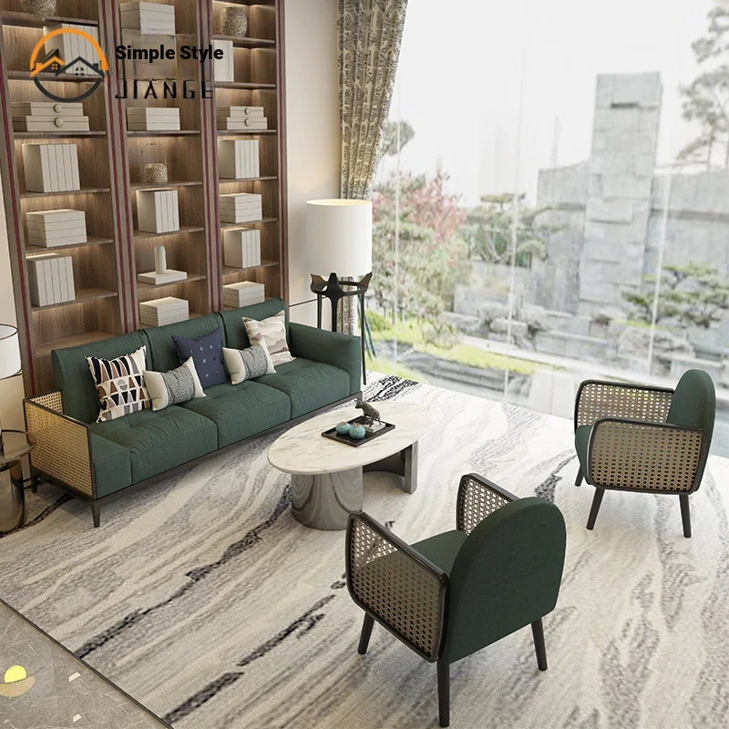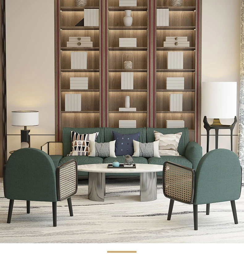 Nordic Style Solid Wood Rattan Sofa for Boutique Hotel – Chic and Cozy Lounge Seating for Small Living Rooms – Luxurious Fabric Reception Booth Furniture