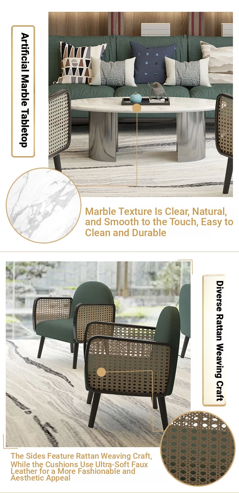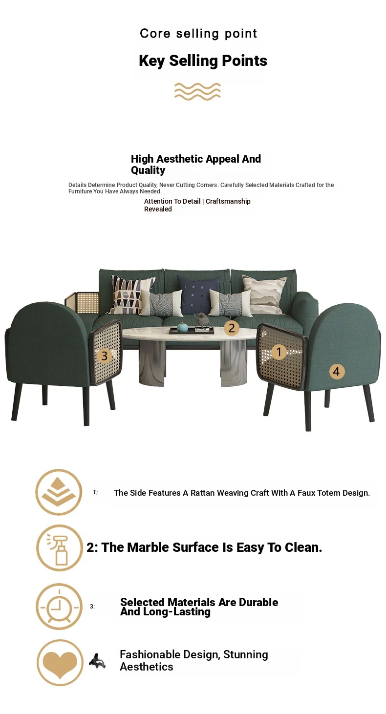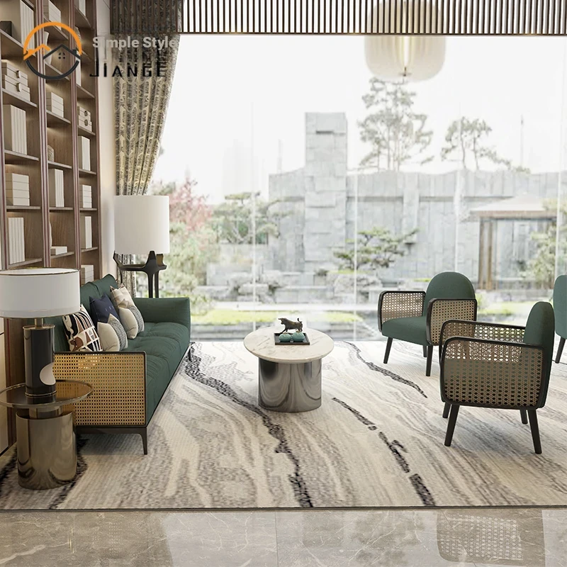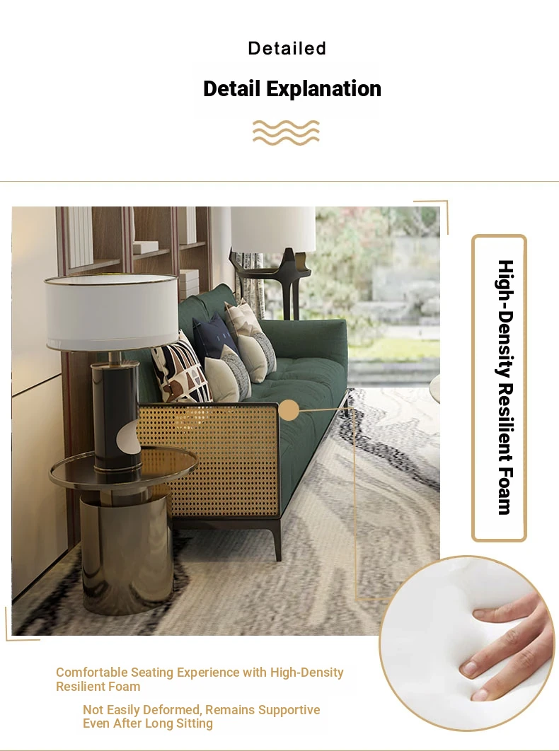 Nordic Style Solid Wood Rattan Sofa for Boutique Hotel – Chic and Cozy Lounge Seating for Small Living Rooms – Luxurious Fabric Reception Booth Furniture