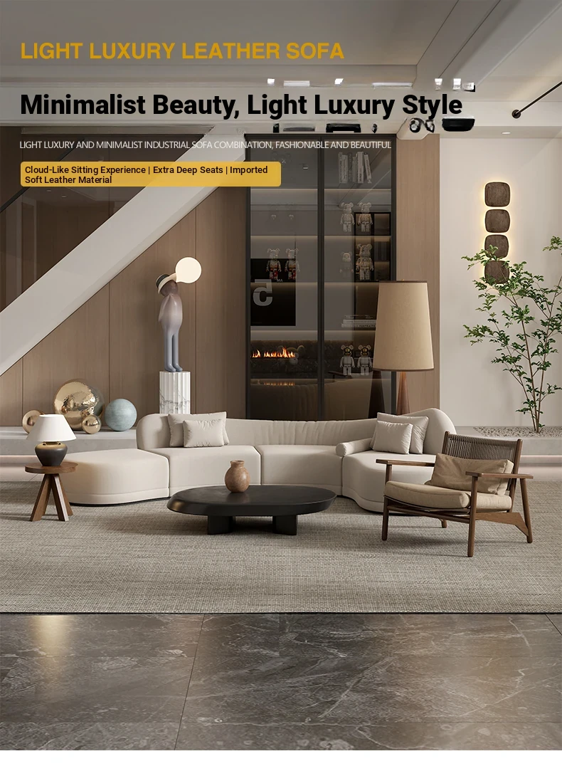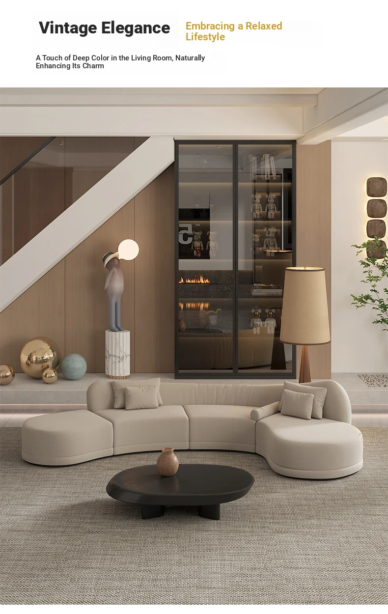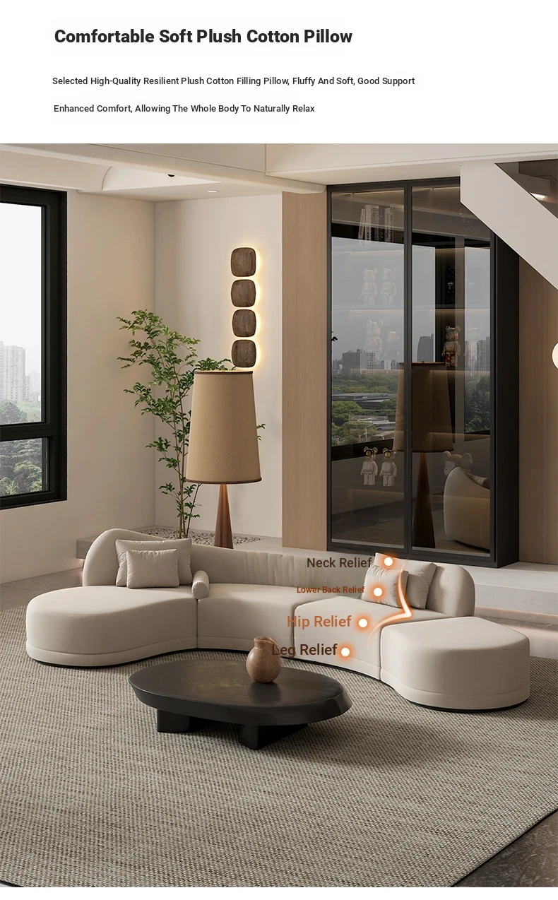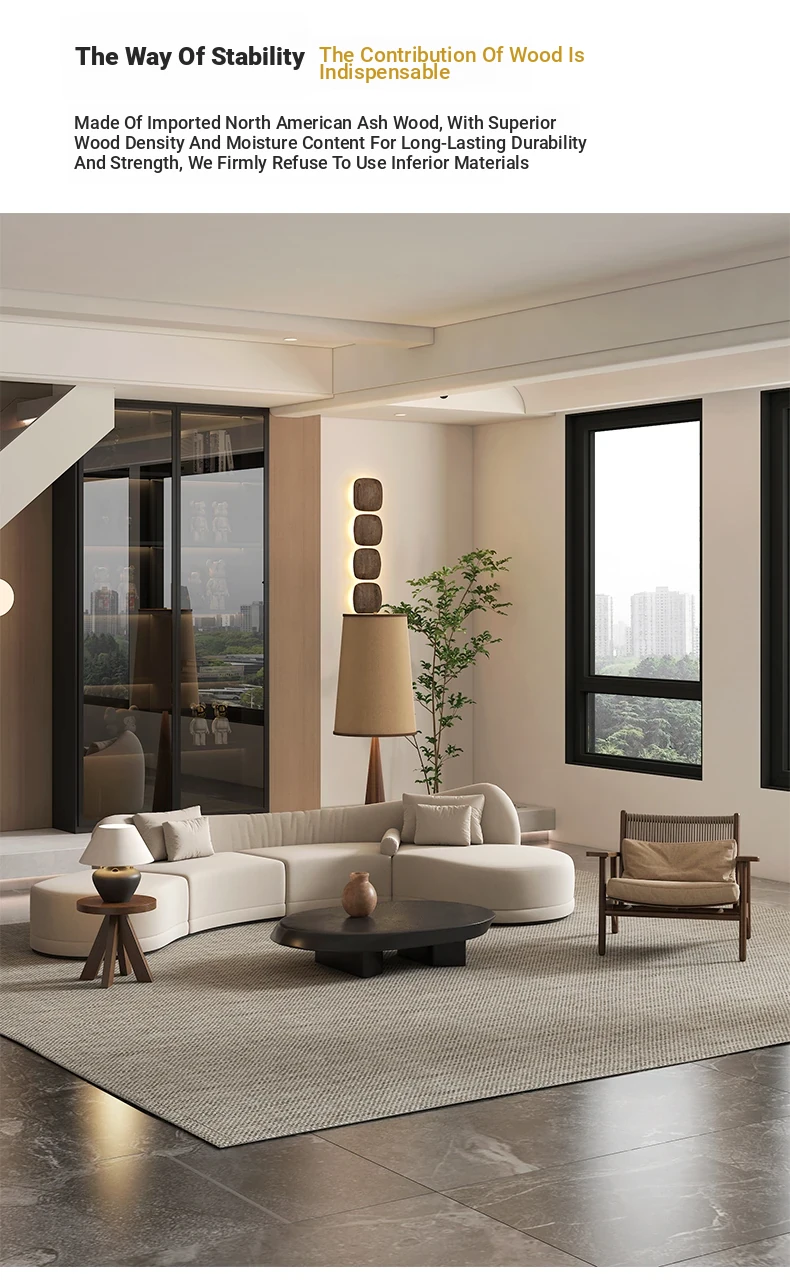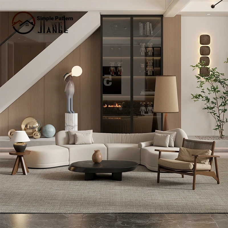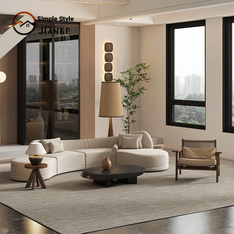Nordic Wabi-Sabi Style Curved Fabric Sofa Set – Modern Guesthouse & Hotel Living Room Reception Single Leisure Chair