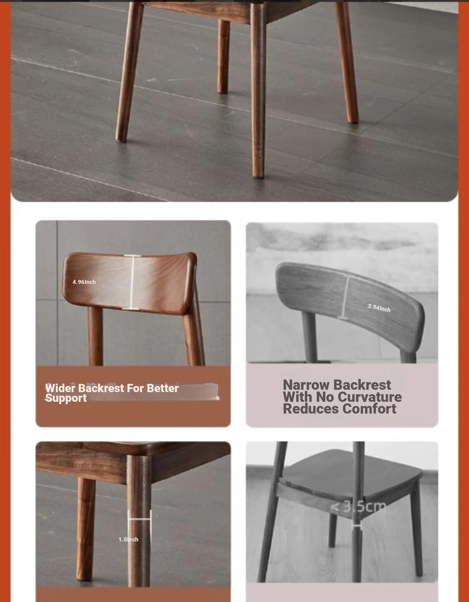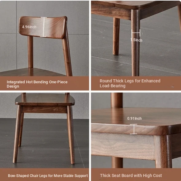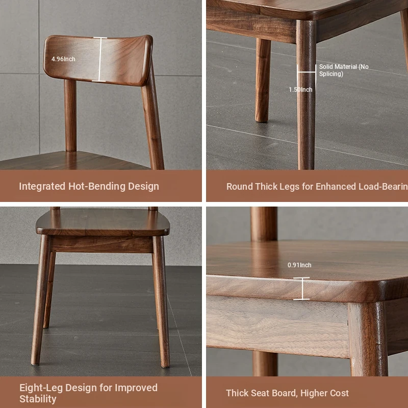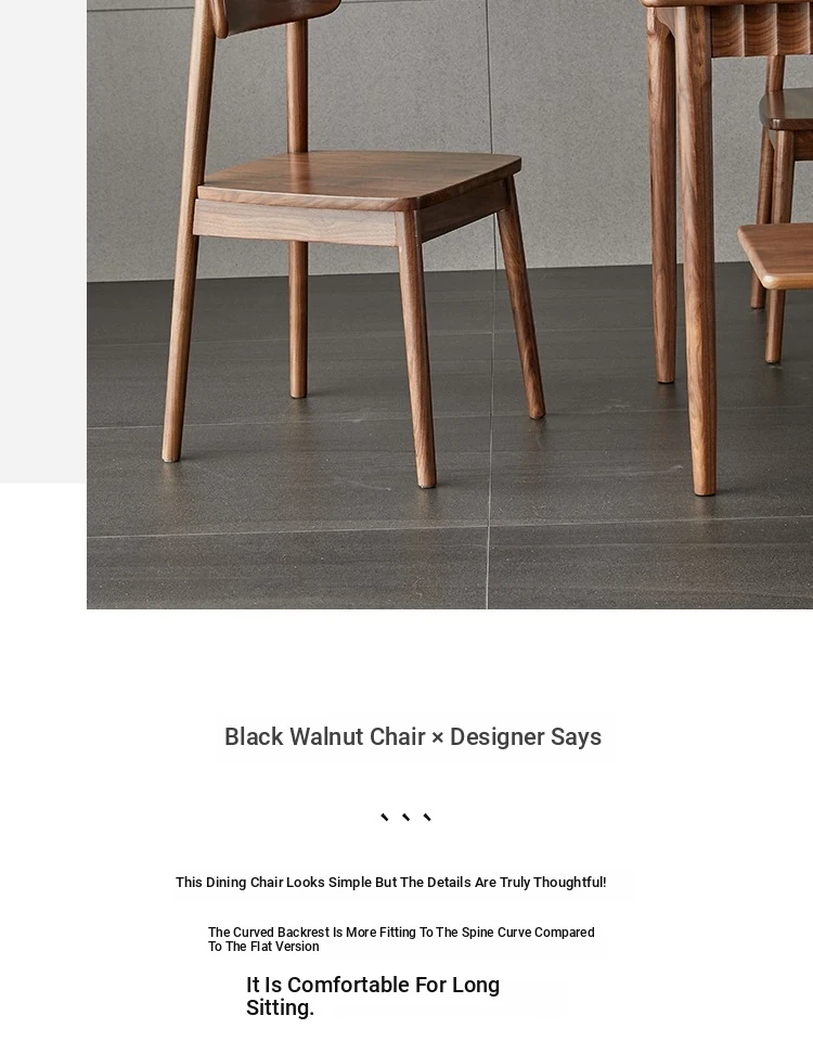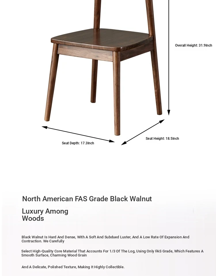 North American Black Walnut Dining Chair - Solid Wood Scandinavian Minimalist Japanese Style Home Backrest Chair for Desk and Leisure Use