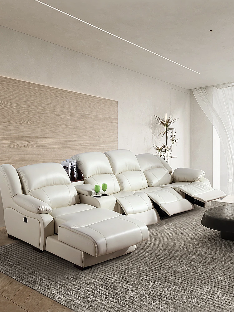 Premium Genuine Leather Electric Recliner Sofa - Luxurious Space Capsule Design for Home Theater and Modern Small Living Rooms