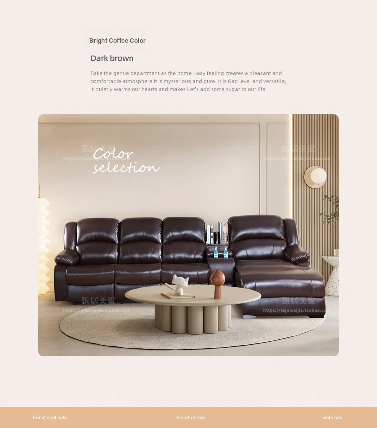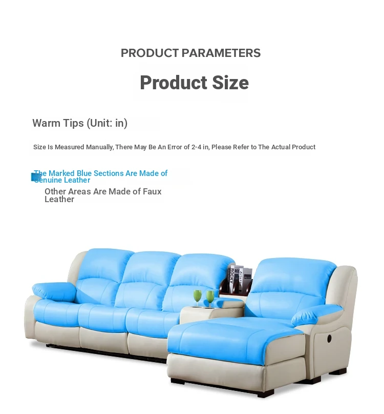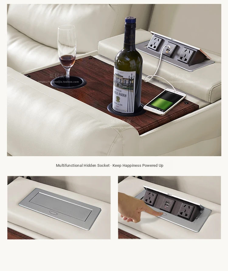 108.66in/4-position [side Power + CLP + middle backrest tea table + side power] Import top layer yellow cowhide thick leather (delicate hand feeling) be alert to Australian ecological leather