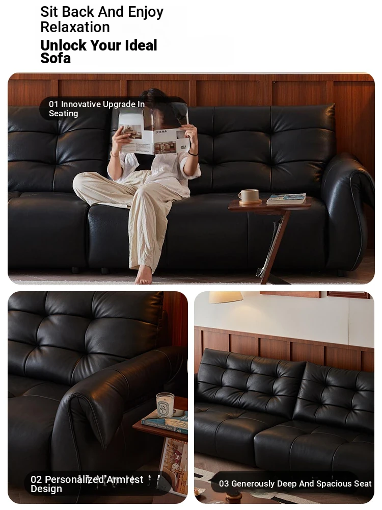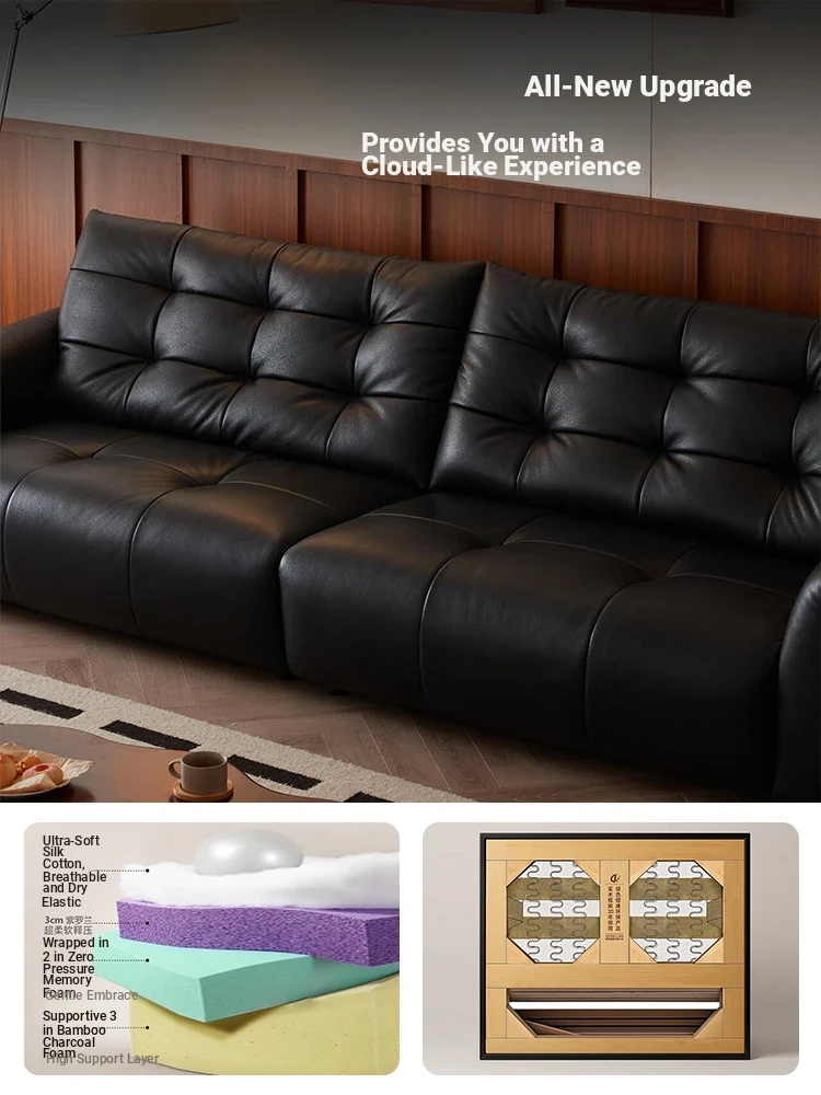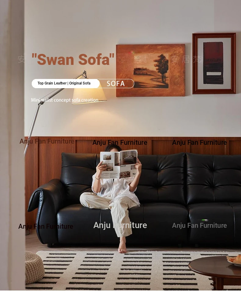 Swan Genuine Leather Sofa - Italian Minimalist Luxury Design for Small Spaces, 2025 New Model with Top Grain Cowhide, Perfect for Your Living Room