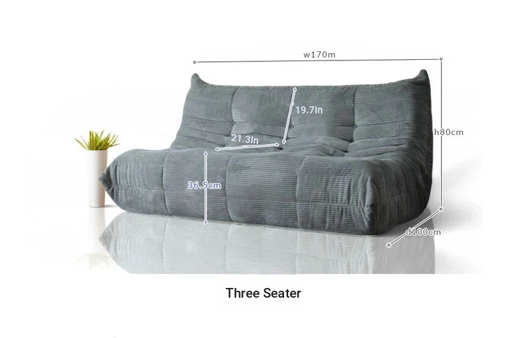 Togo Corduroy Caterpillar Sofa - 1.7m Long, 0.8m Wide, 1.2m High - Stylish Armless Lounger for Living Room - Perfect for Singles and Couples - Cozy and Modern Design