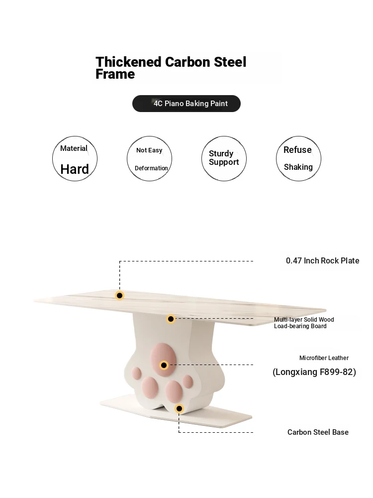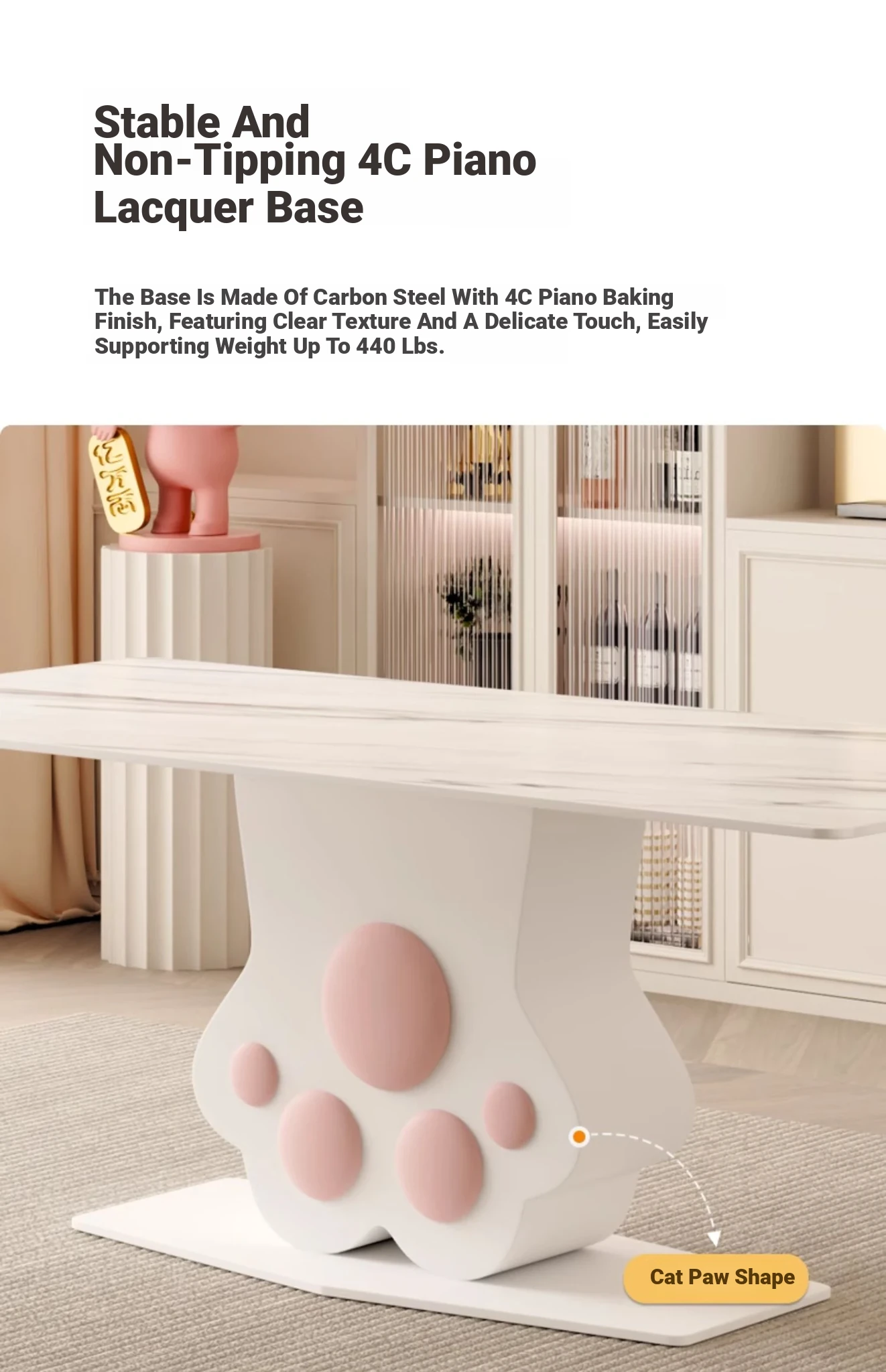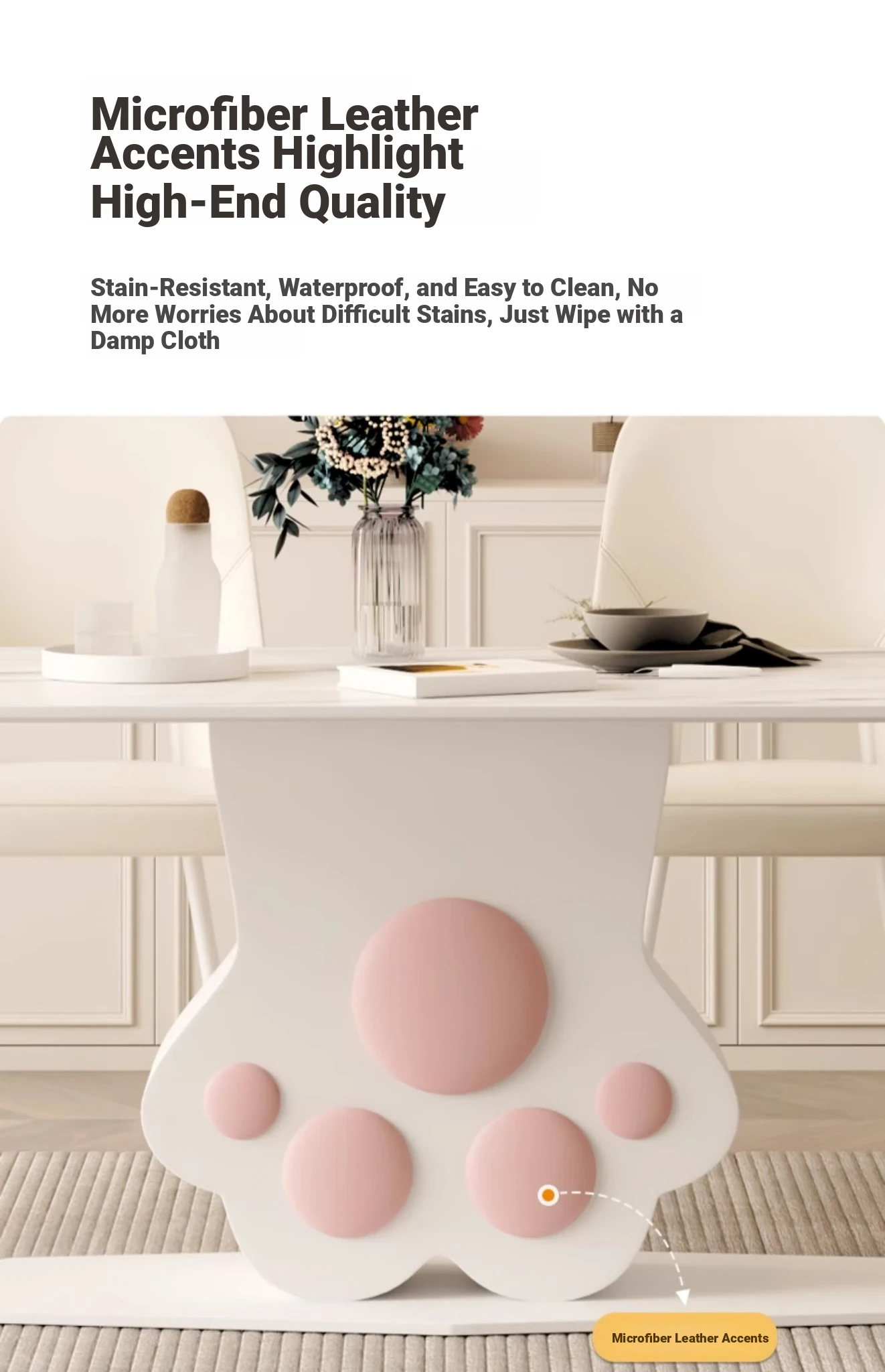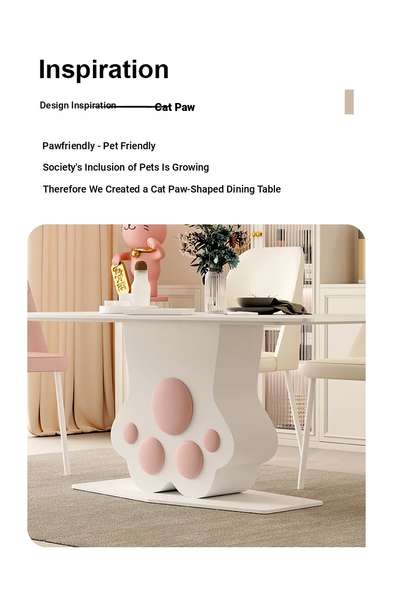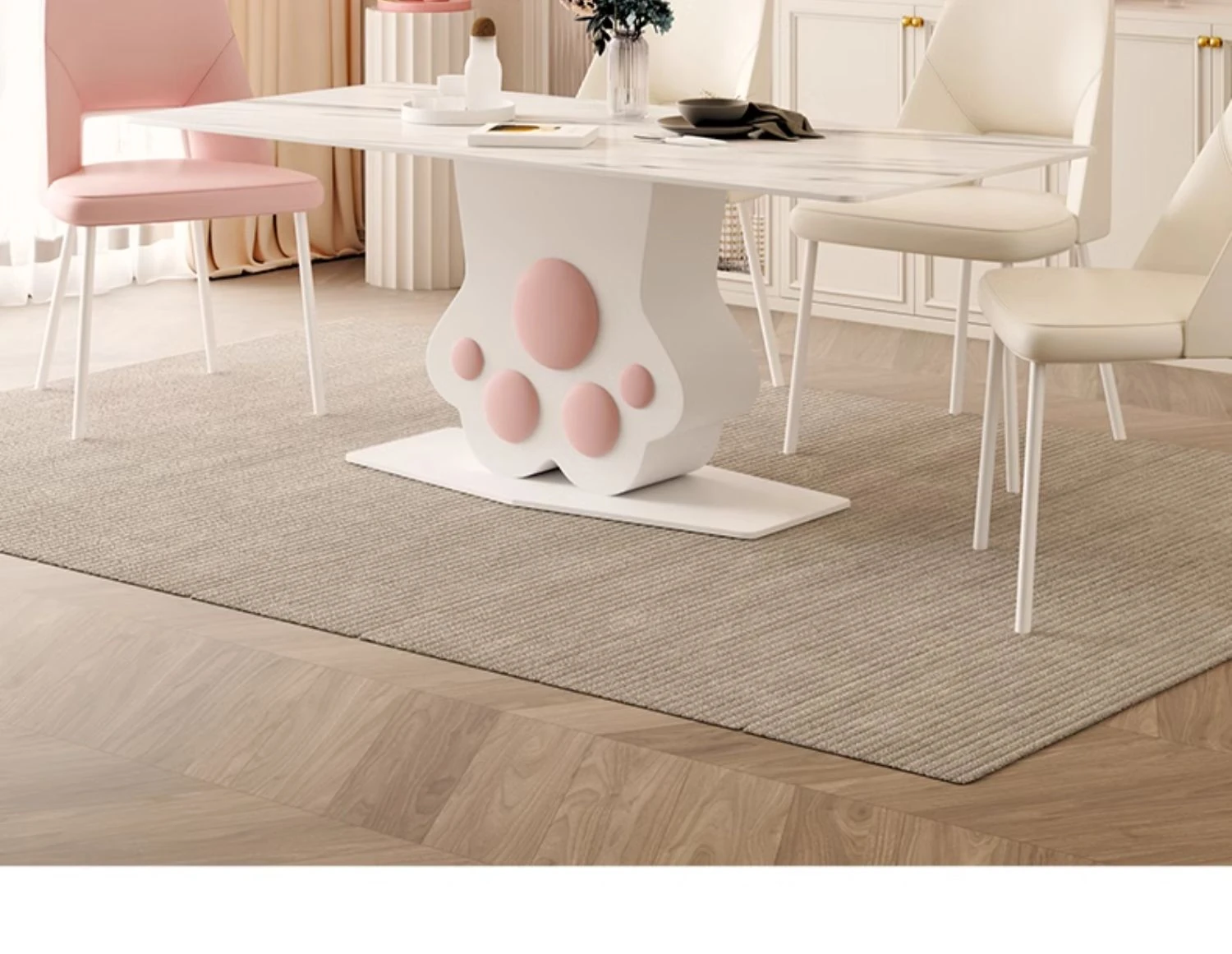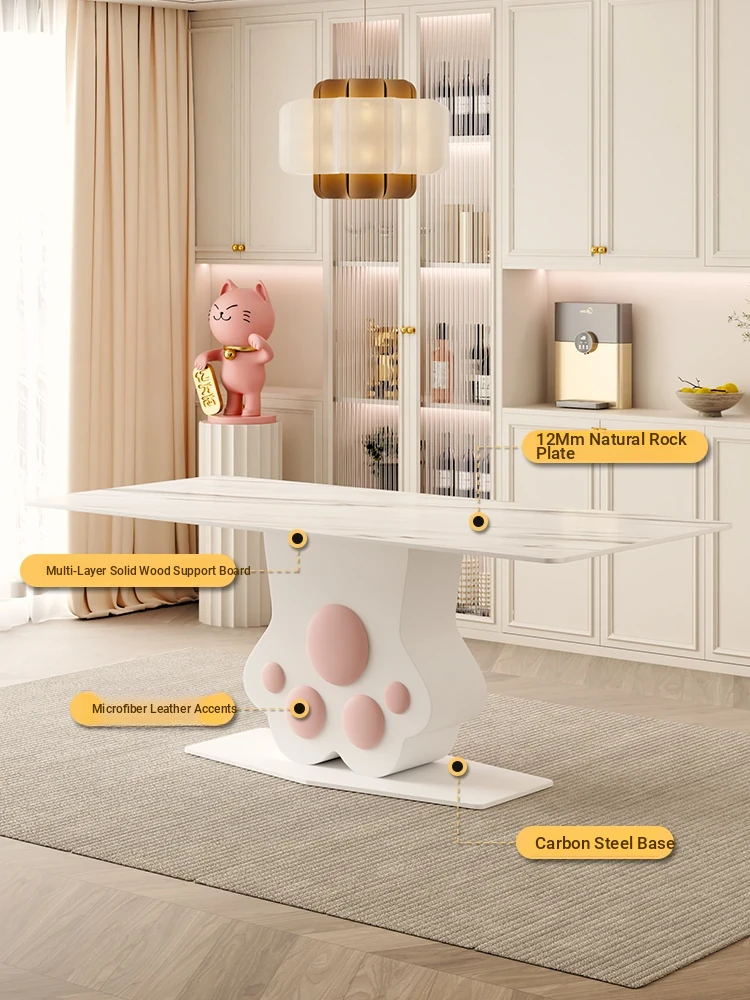 Trendy Cat Paw Design Creamy Rock Dining Table - Cute and High-End 1.8m Minimalist Modern Style, Perfect for Stylish Interiors