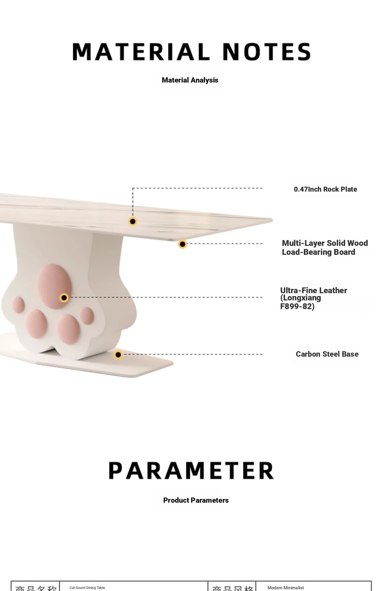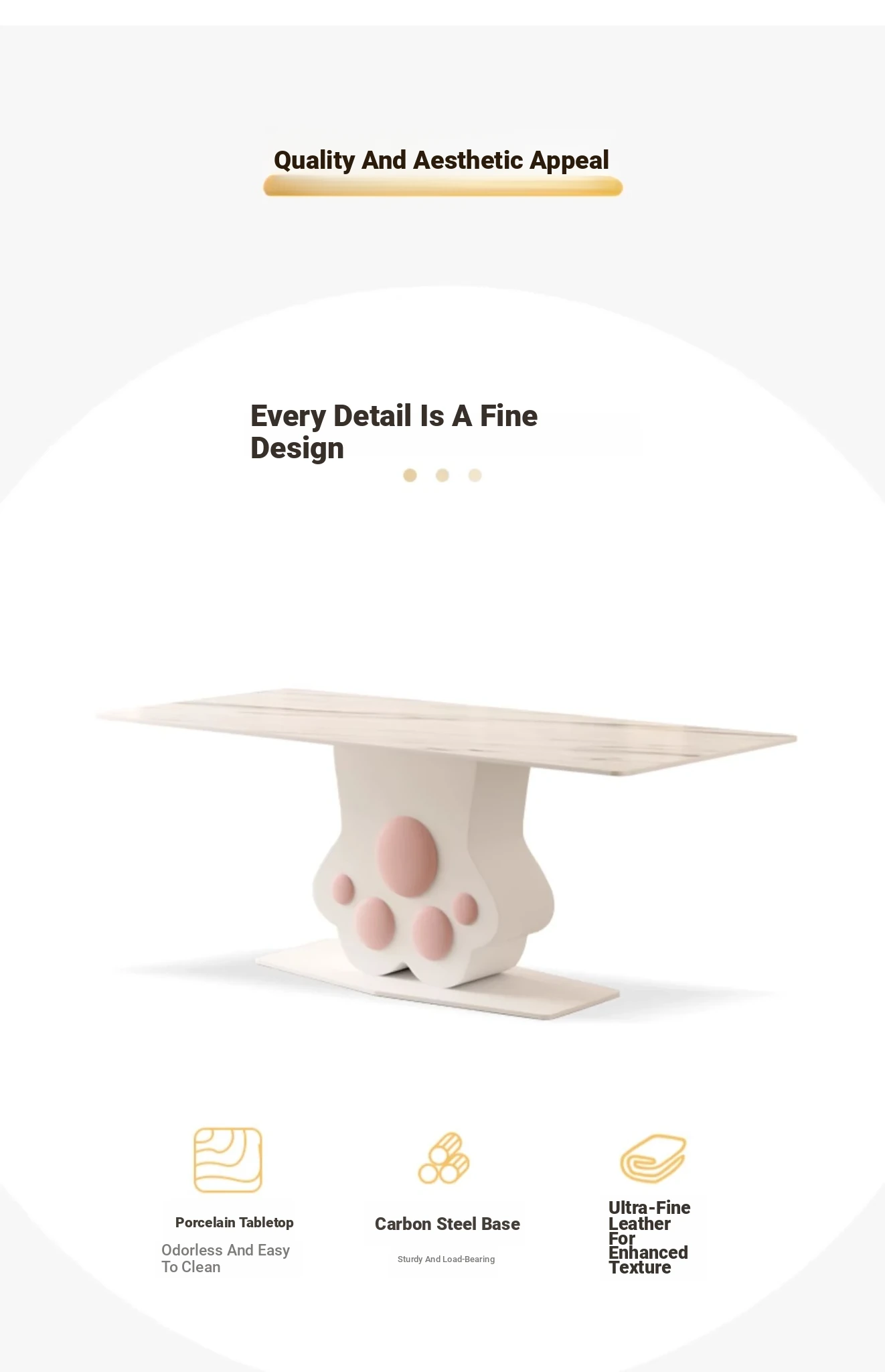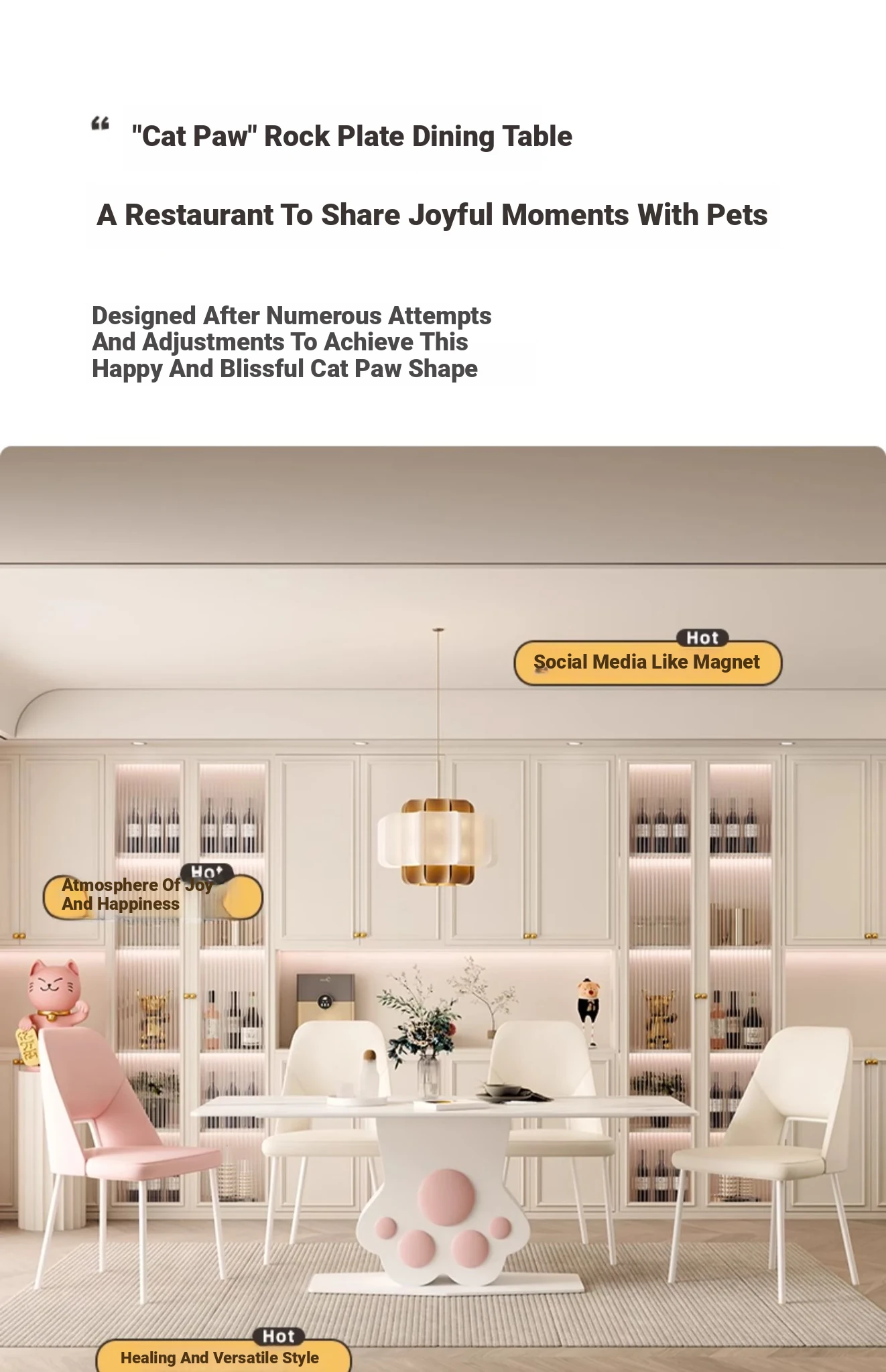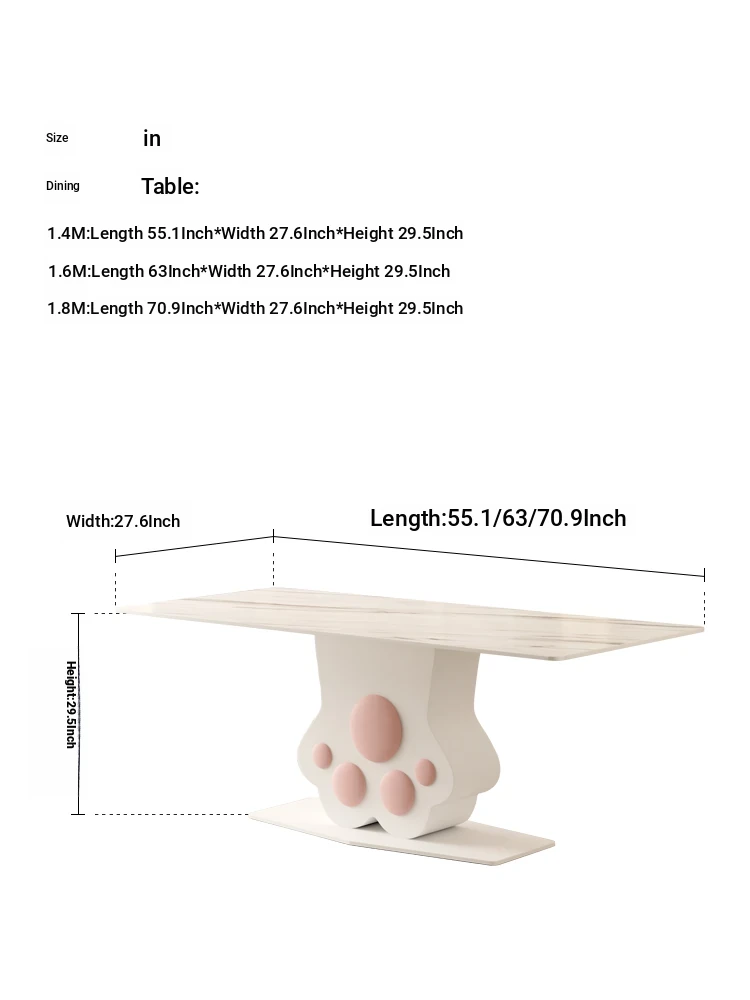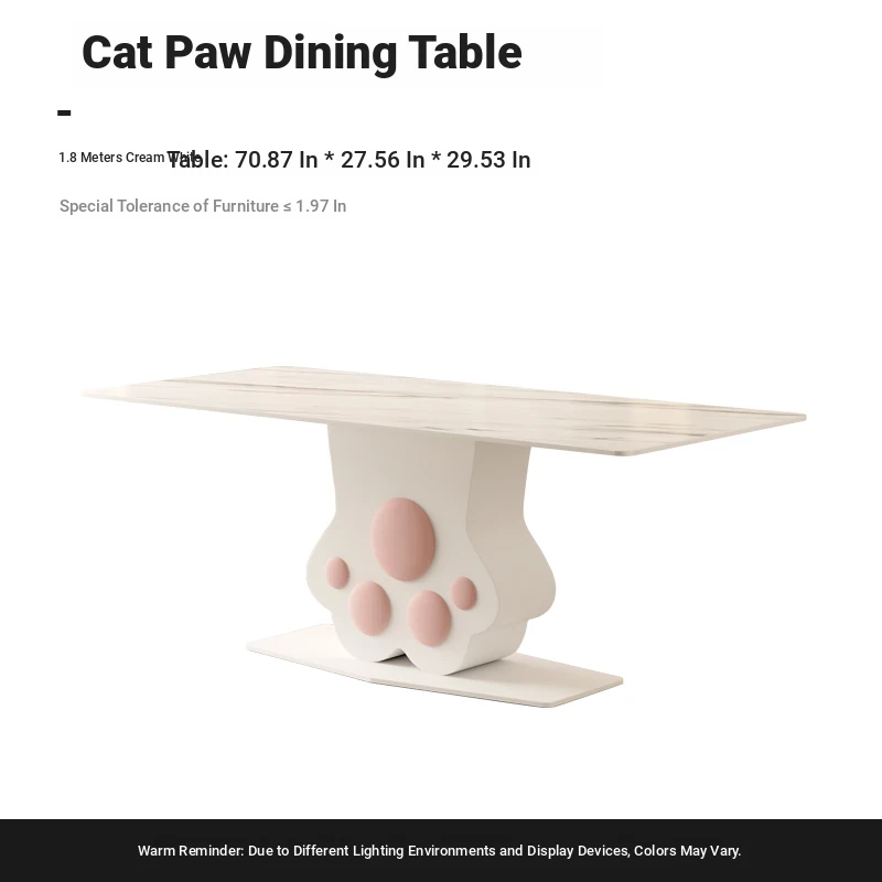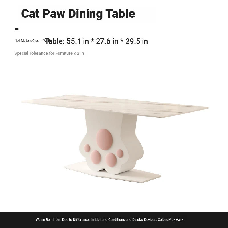 Trendy Cat Paw Design Creamy Rock Dining Table - Cute and High-End 1.8m Minimalist Modern Style, Perfect for Stylish Interiors