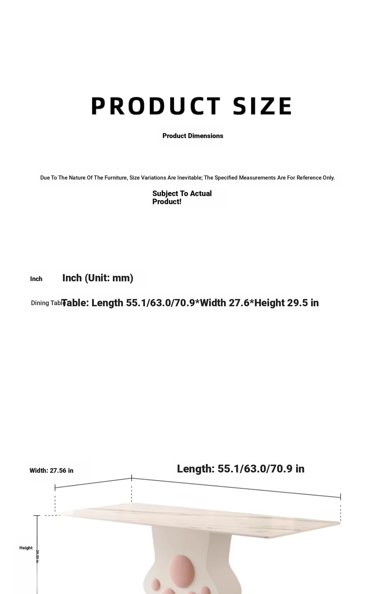 [Cat Claw dining table] 62.99 ins milk White(Carbon steel base)