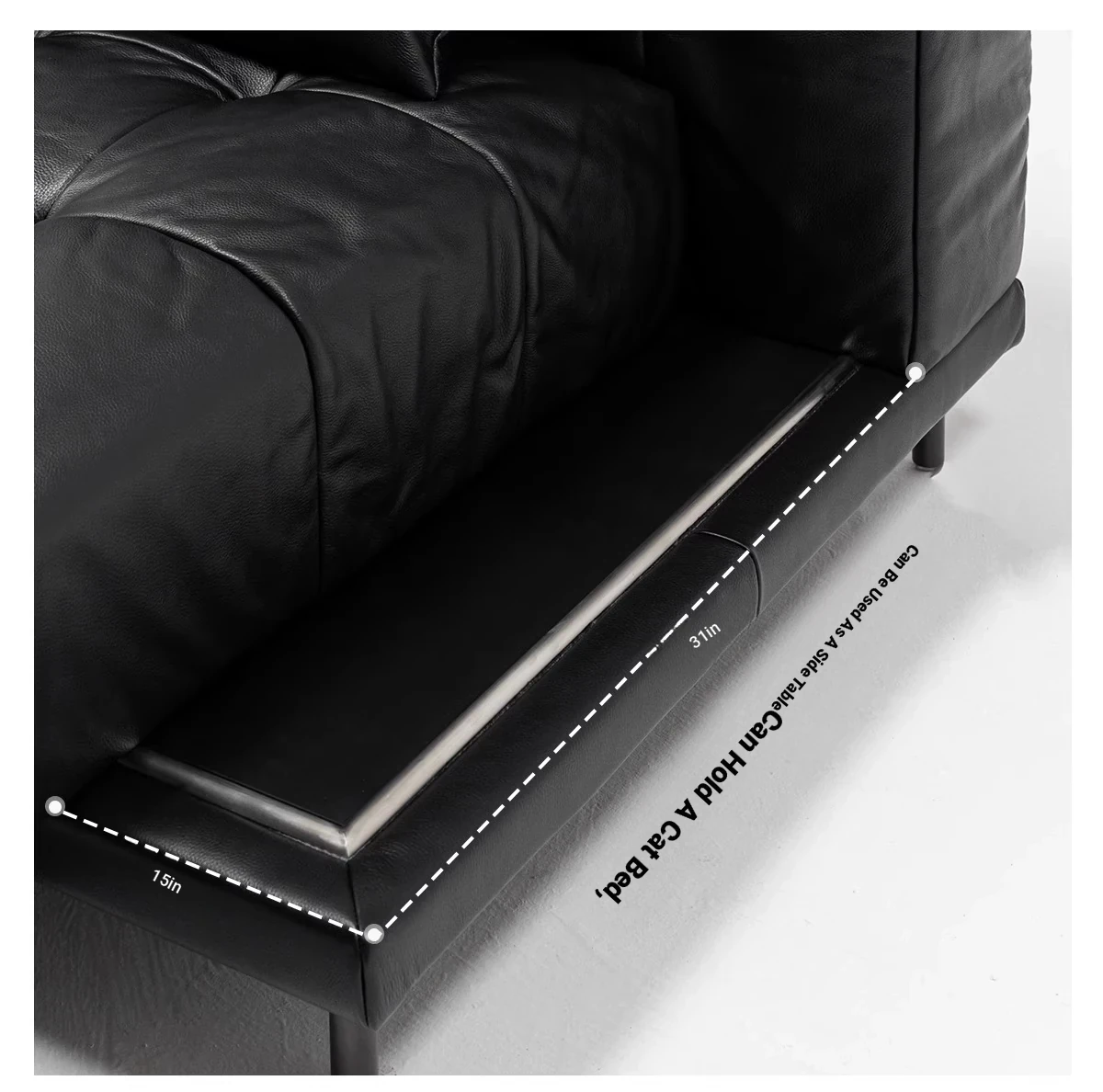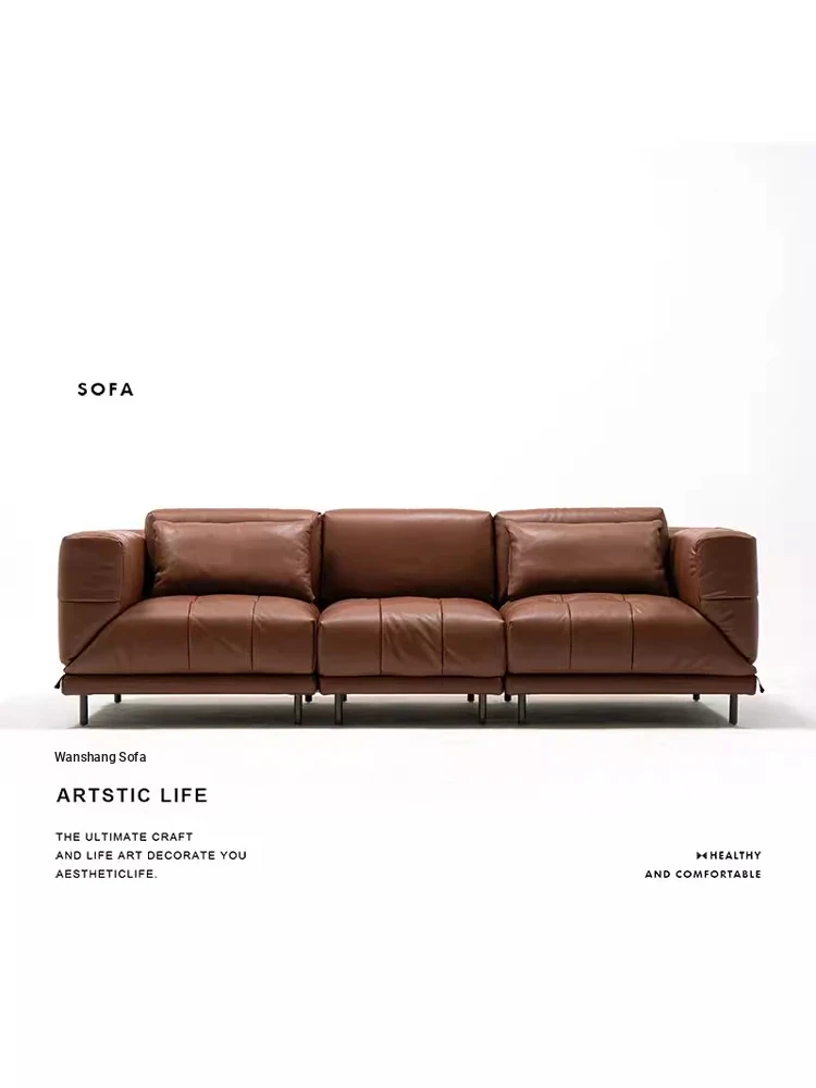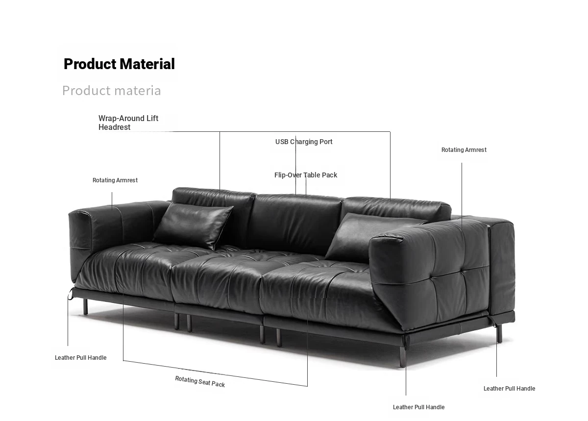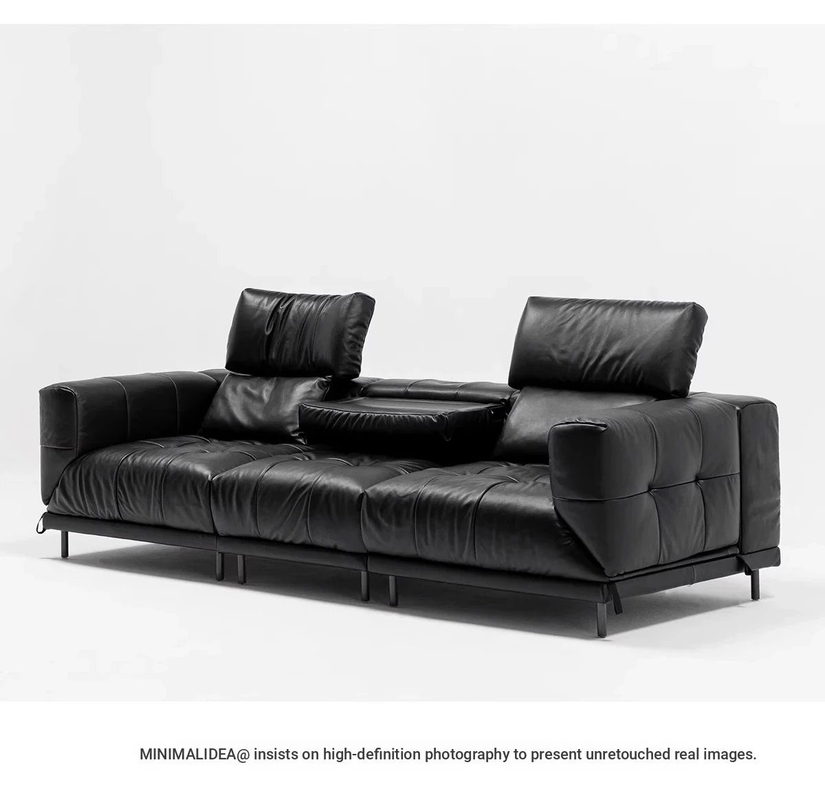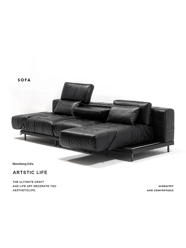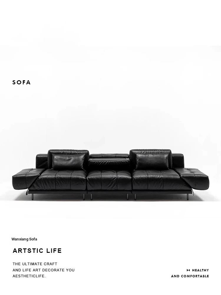 Versatile Genuine Leather Sofa for Small Living Rooms - Modern Island Design in Sleek Black Top-Grain Leather, Perfect for Compact Spaces!