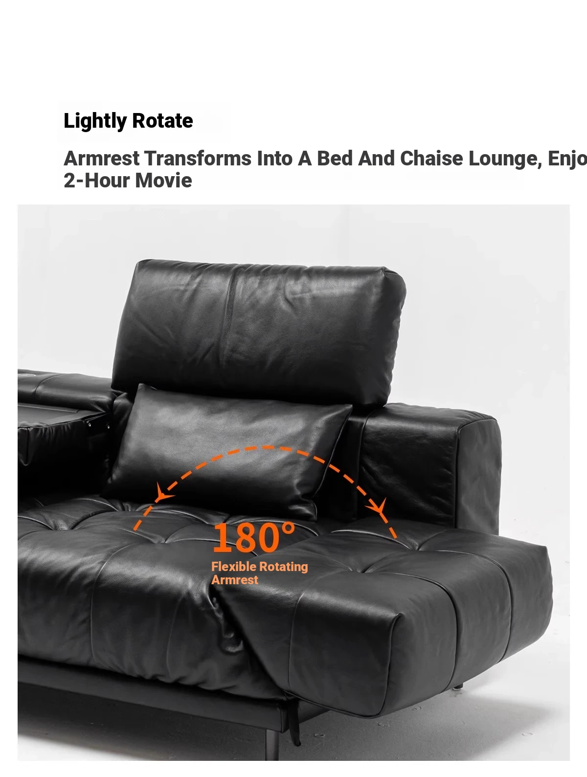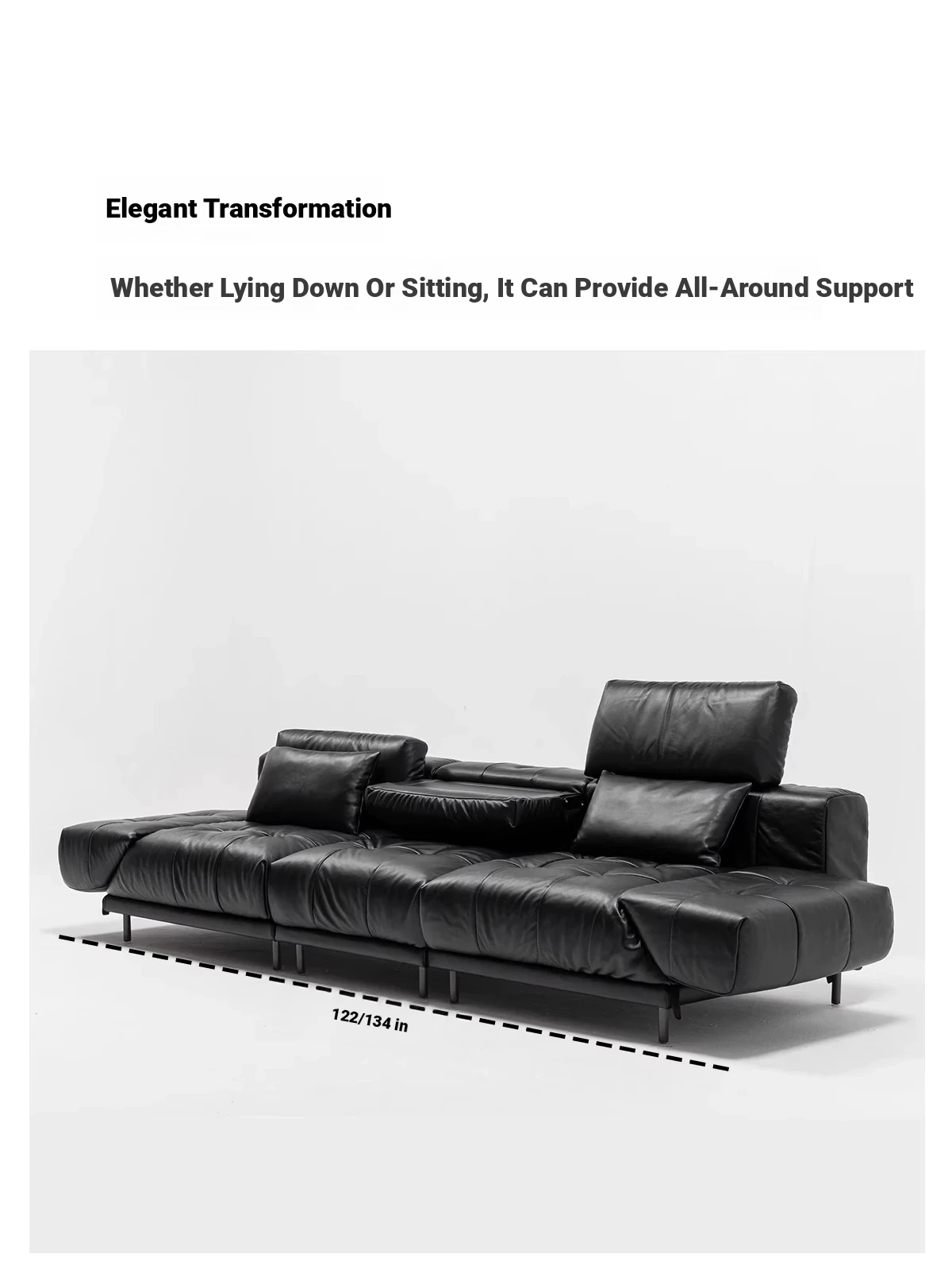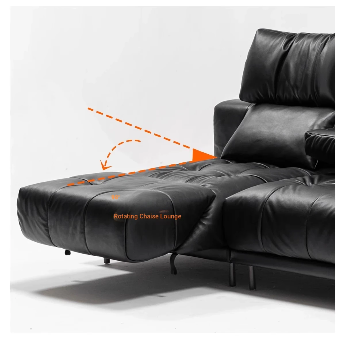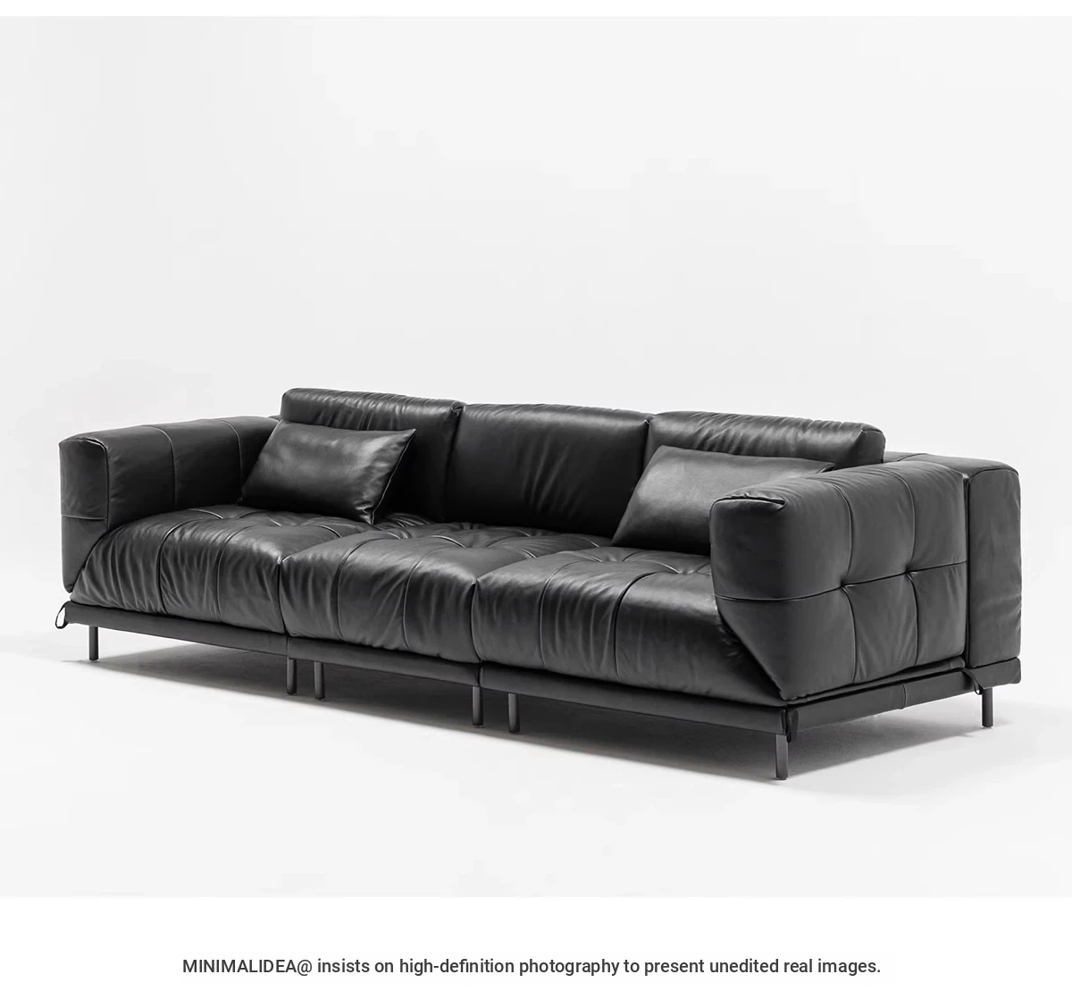 Versatile Genuine Leather Sofa for Small Living Rooms - Modern Island Design in Sleek Black Top-Grain Leather, Perfect for Compact Spaces!