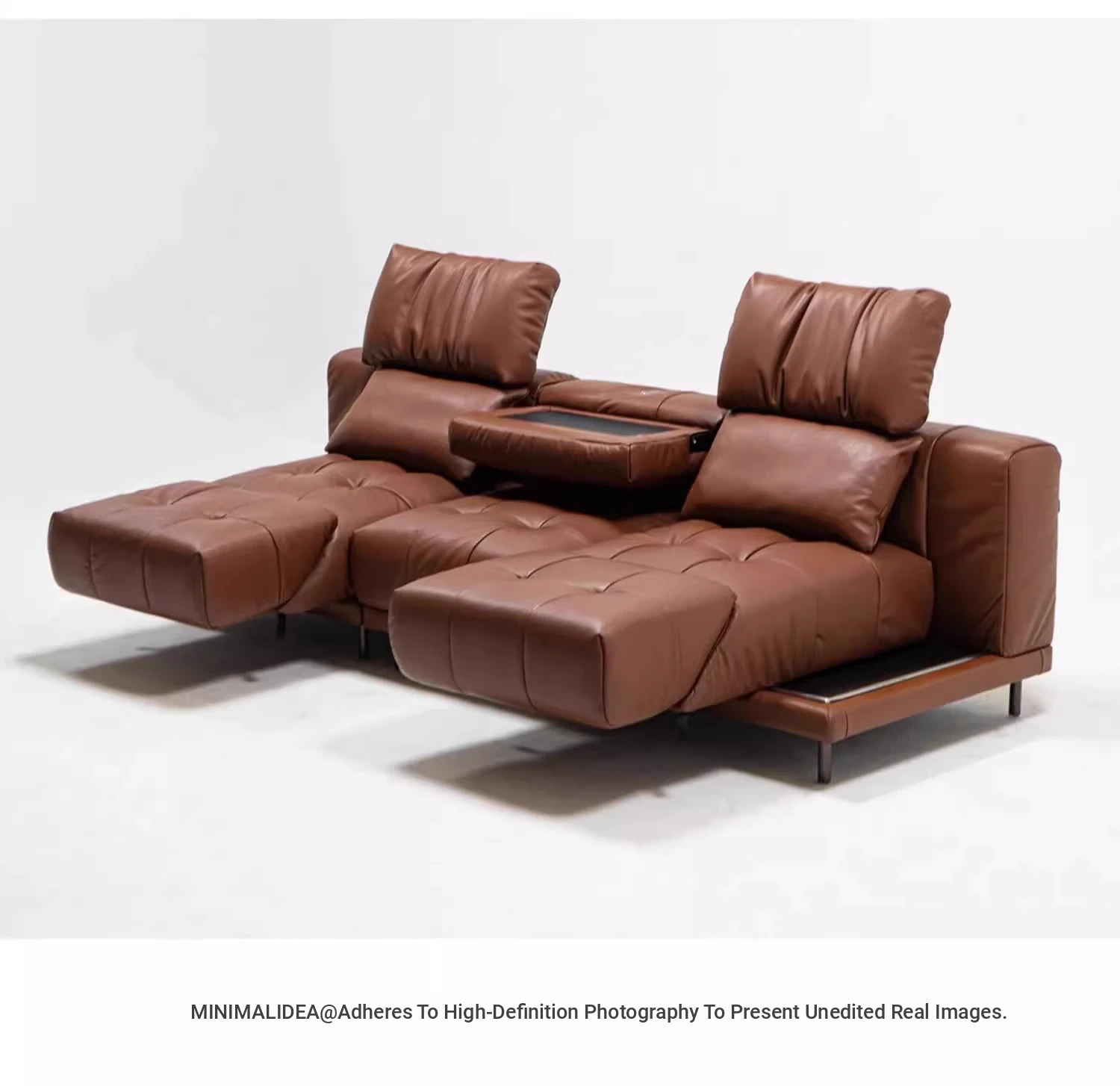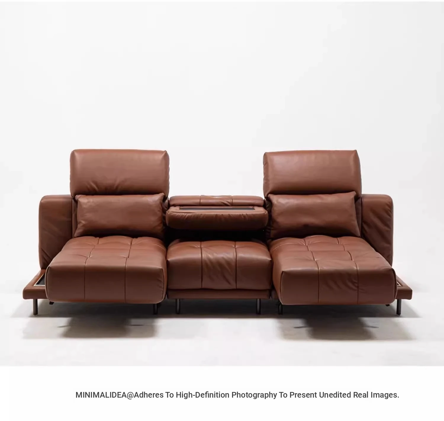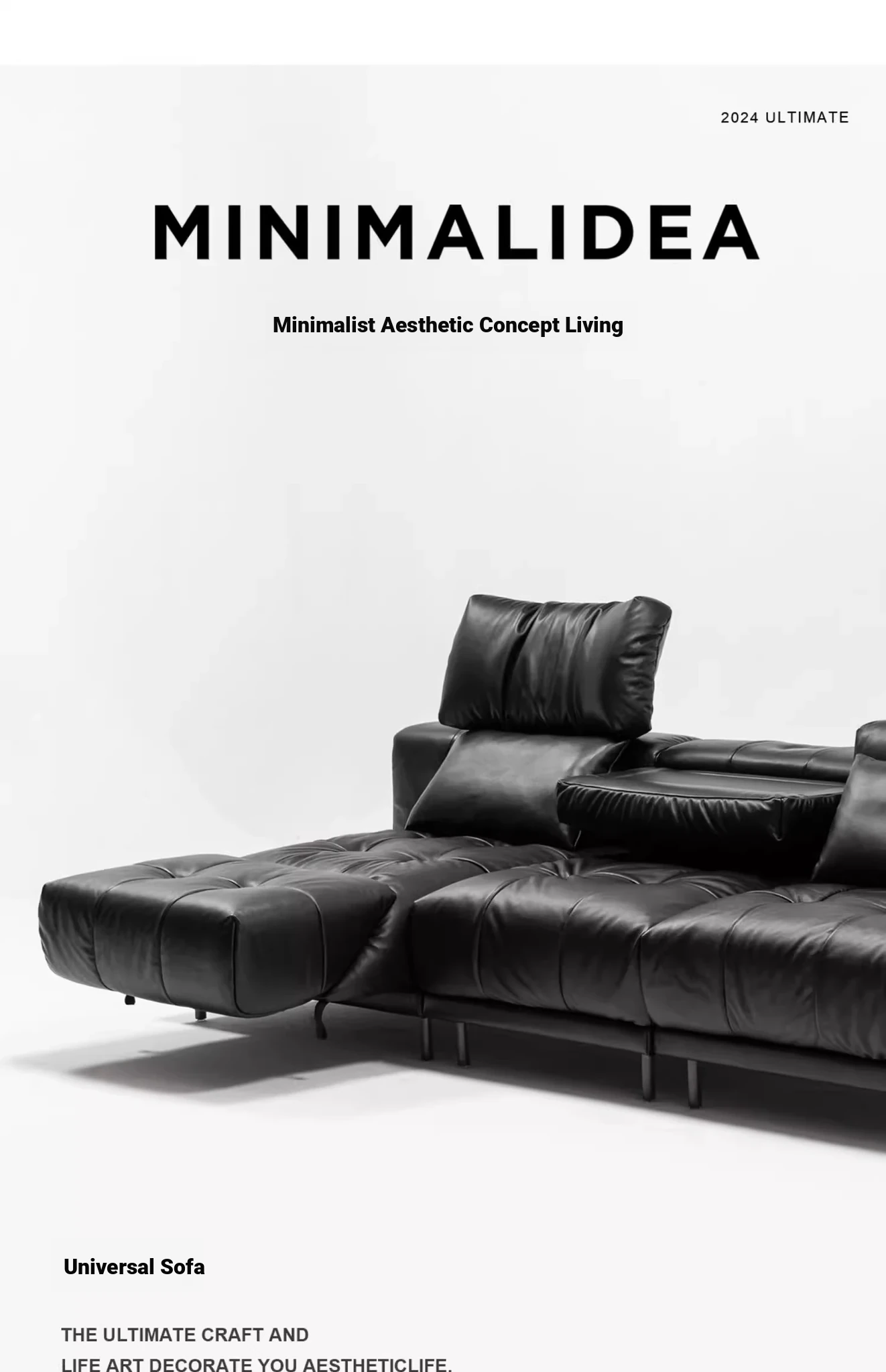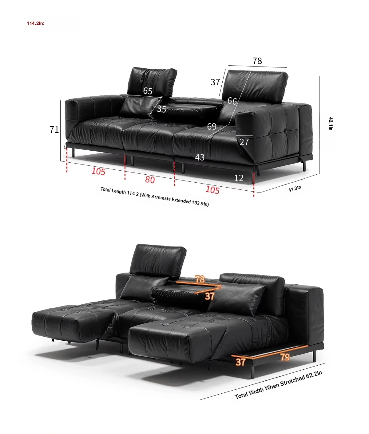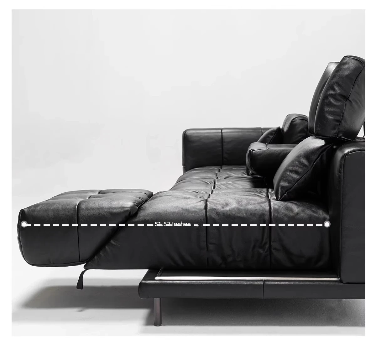 Versatile Genuine Leather Sofa for Small Living Rooms - Modern Island Design in Sleek Black Top-Grain Leather, Perfect for Compact Spaces!