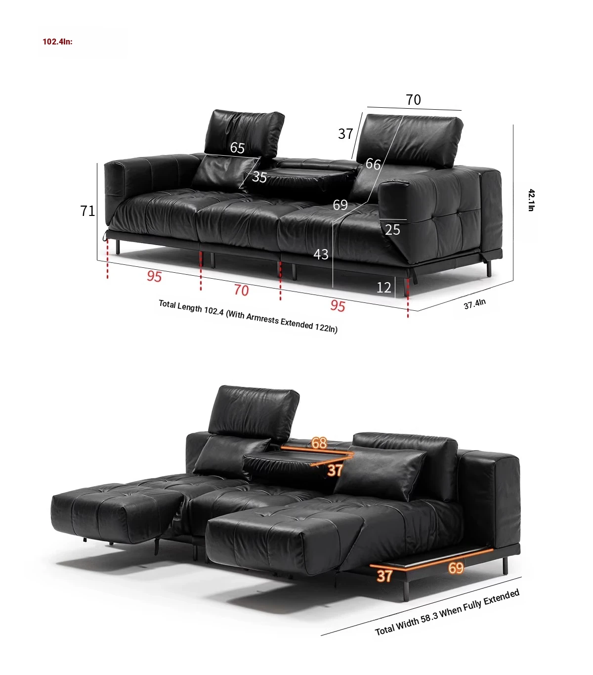 102.36in large three-person position