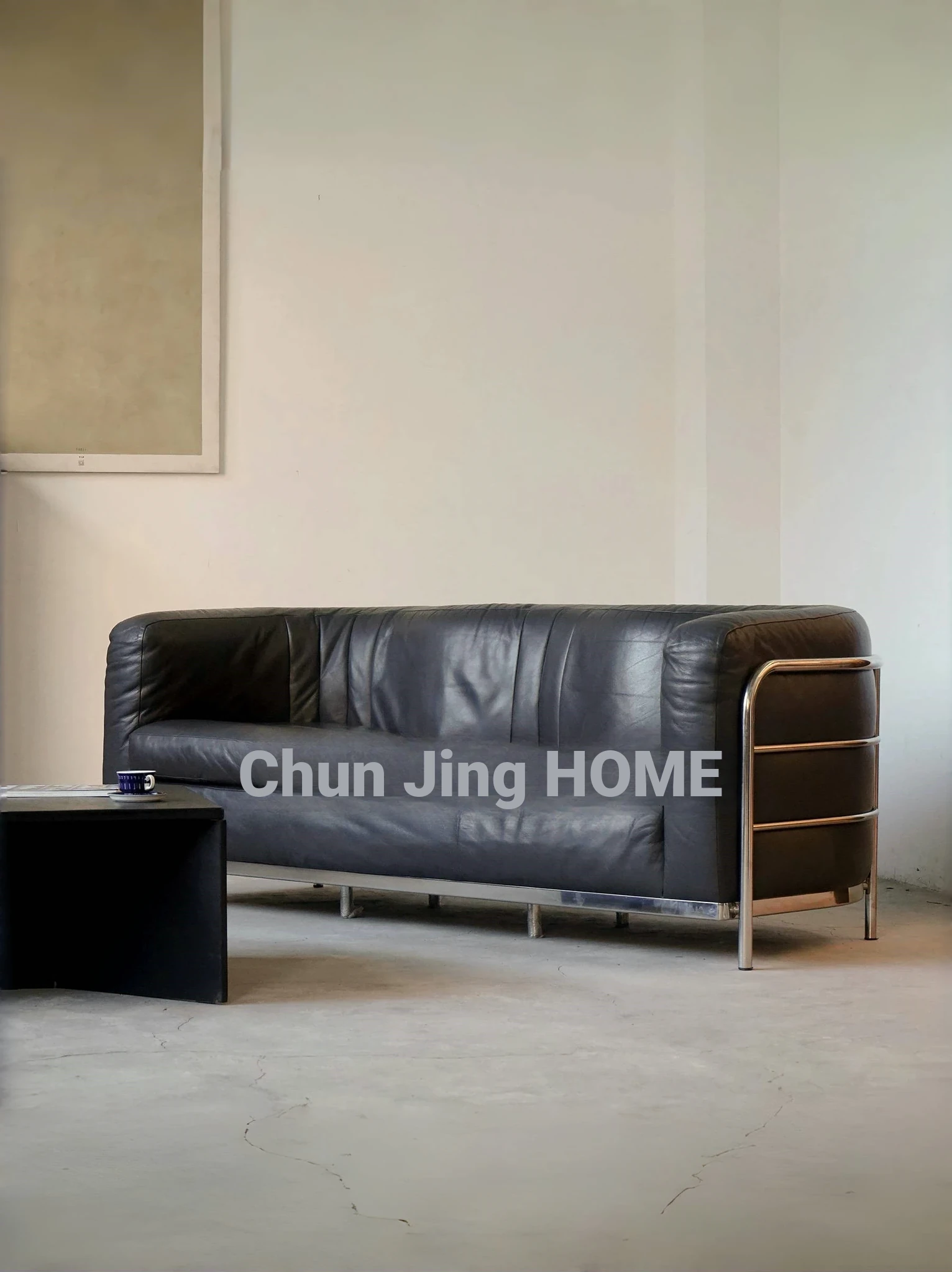 Vintage Bauhaus Black Metal Three-Seater Sofa - Italian Designer Replica by ZANOTTA, Embracing Waves Design