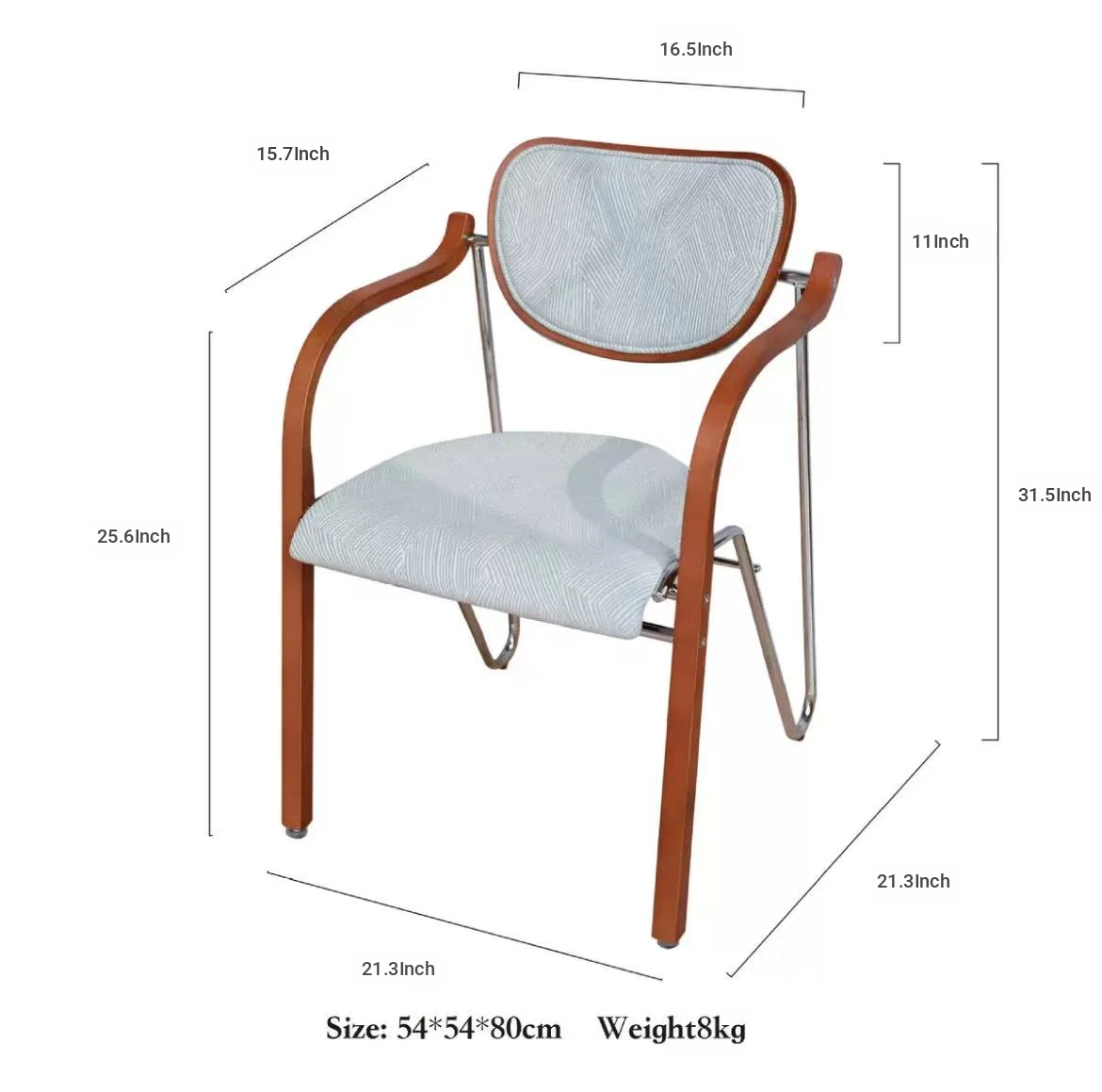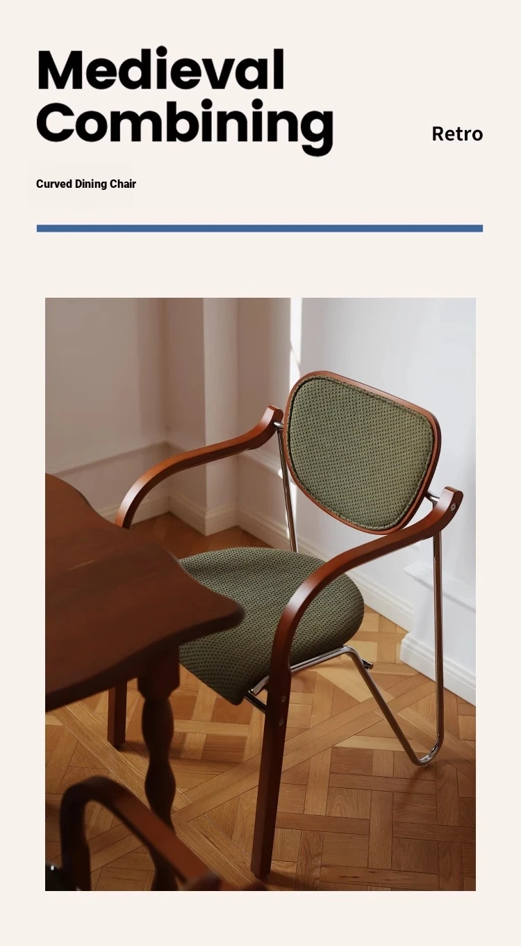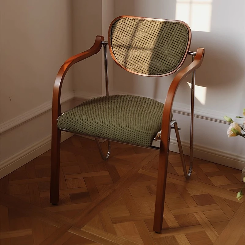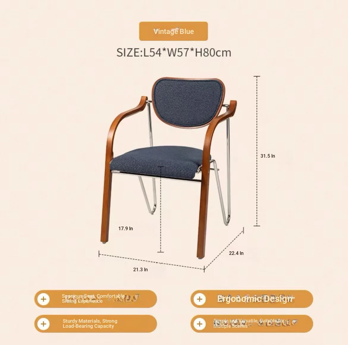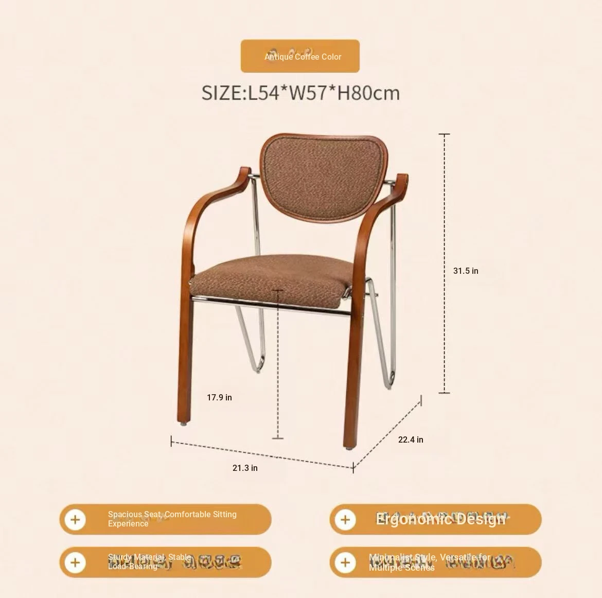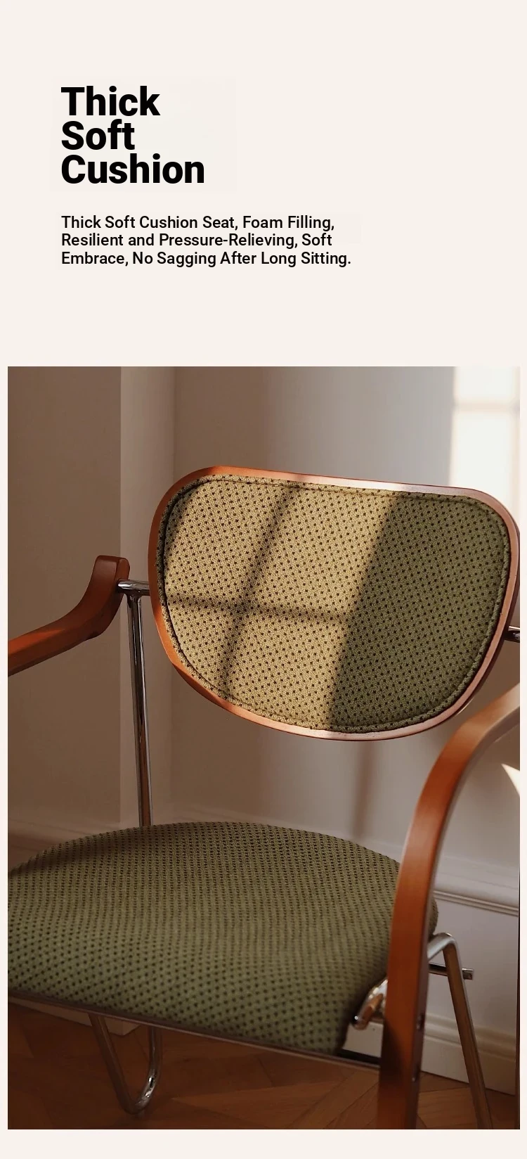 Vintage French Style Solid Wood Upholstered Dining Chair with Stainless Steel Armrests - Perfect for Living Room, Dining Room, Office, and Leisure Spaces.