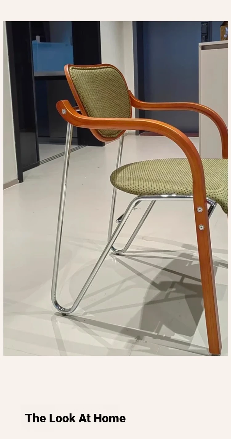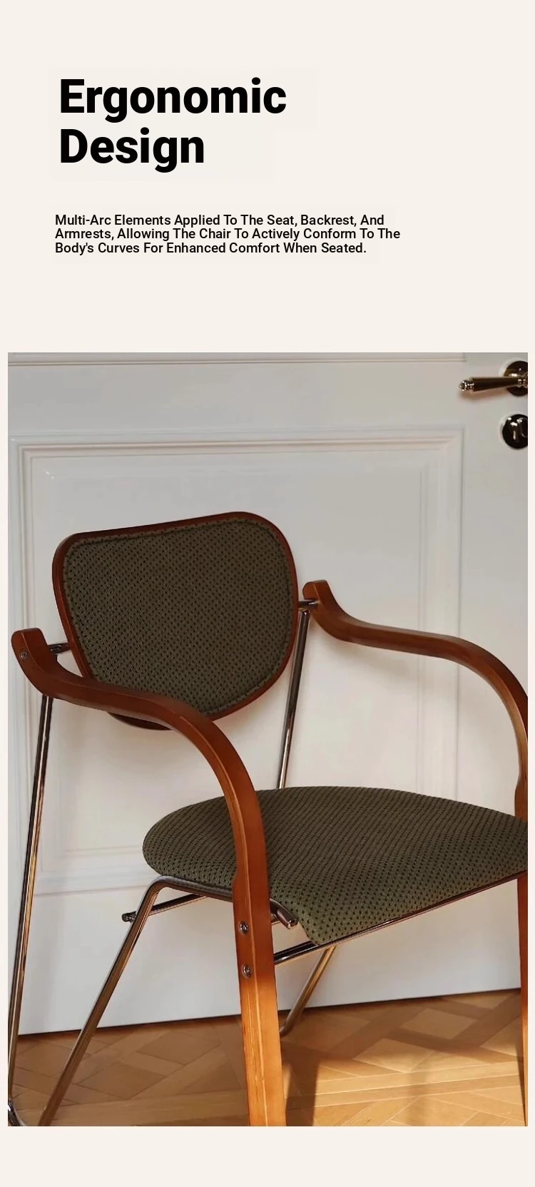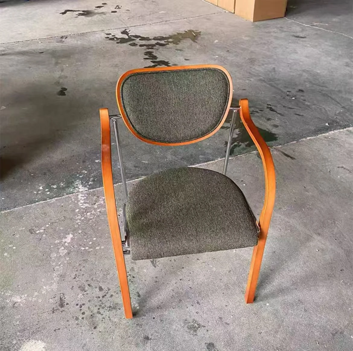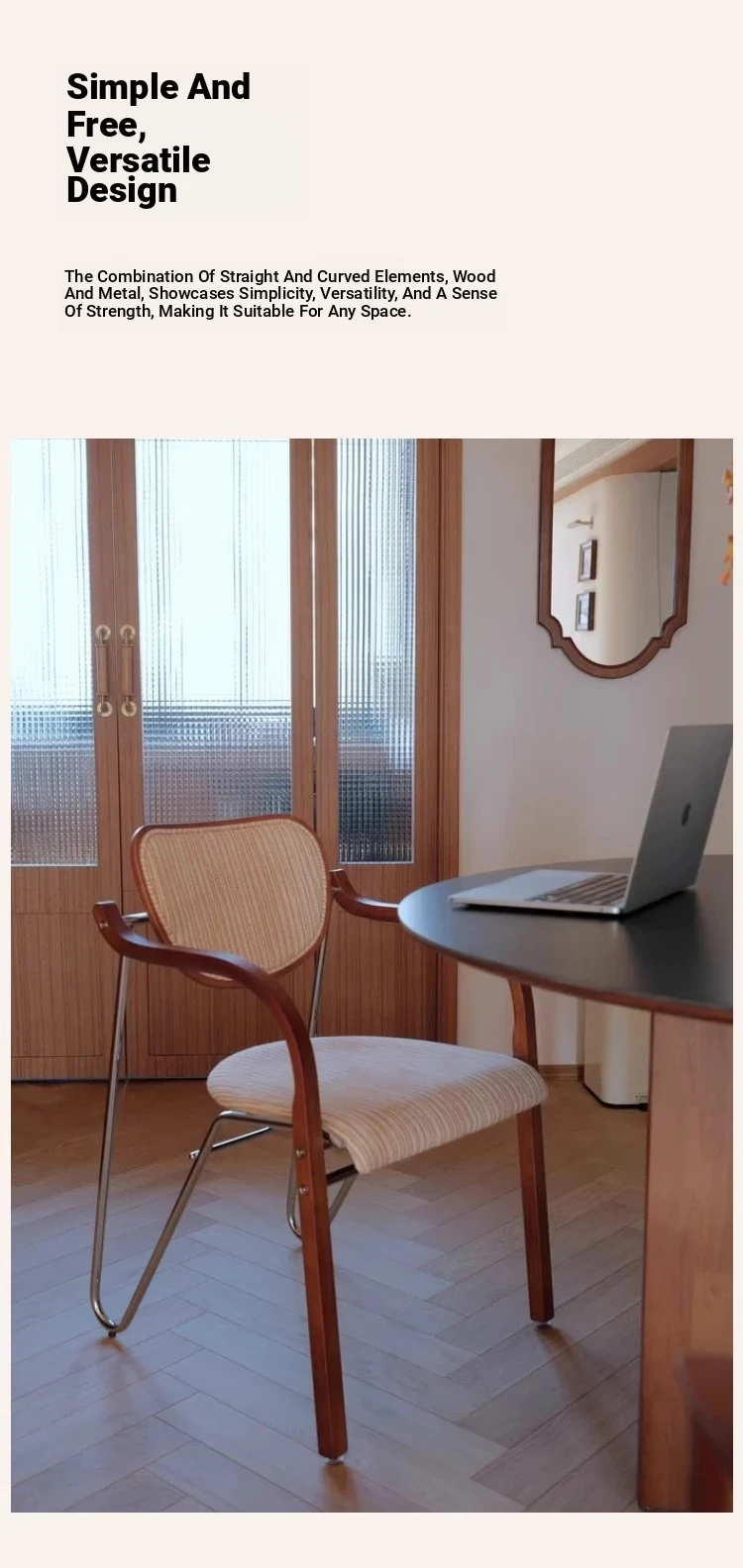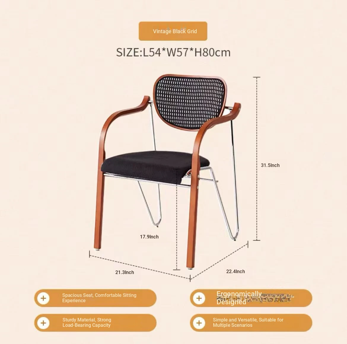 Vintage French Style Solid Wood Upholstered Dining Chair with Stainless Steel Armrests - Perfect for Living Room, Dining Room, Office, and Leisure Spaces.