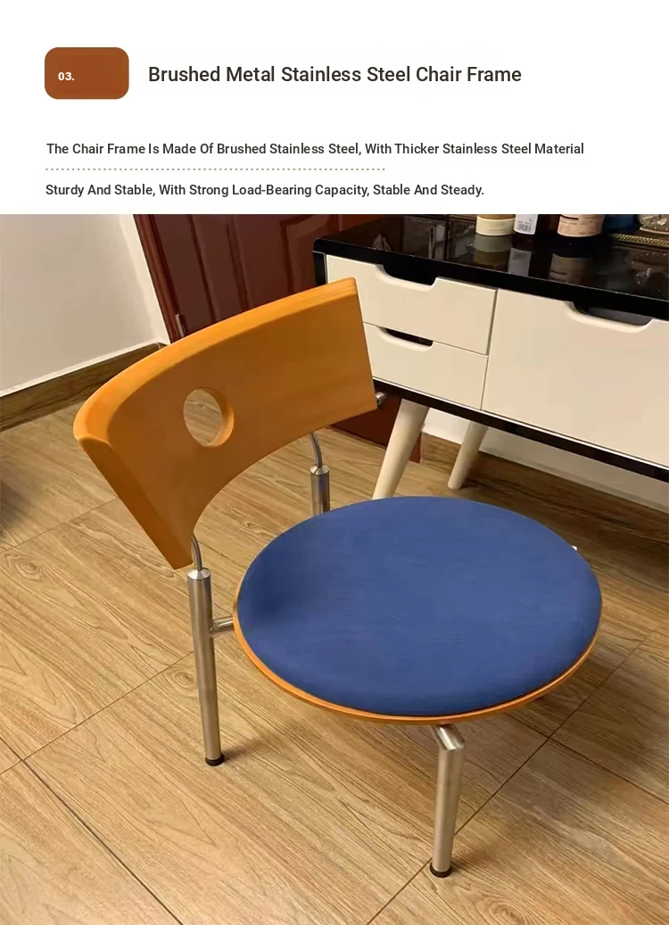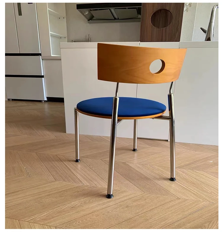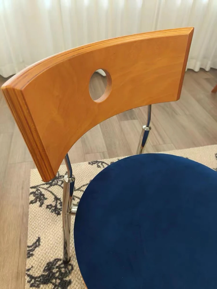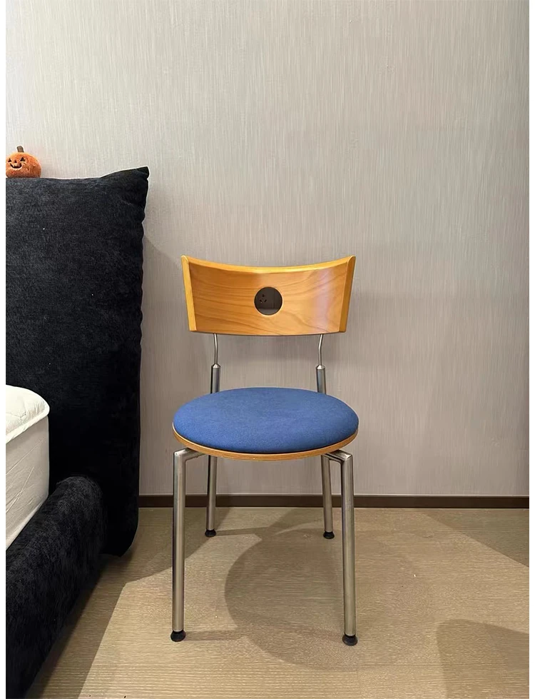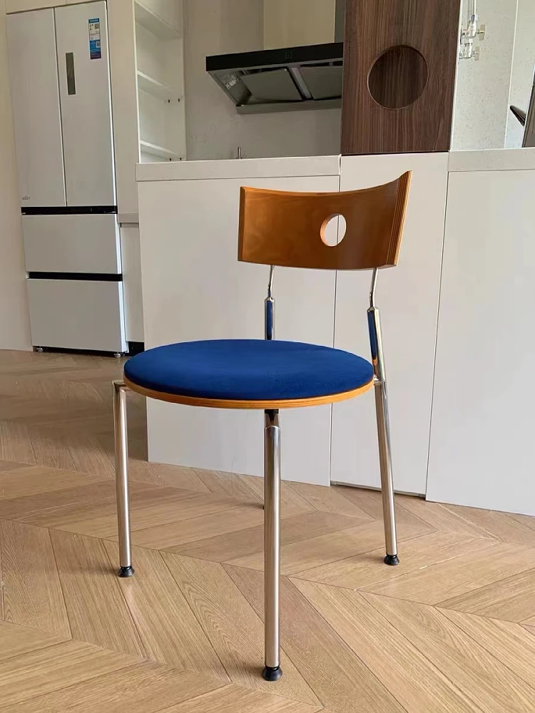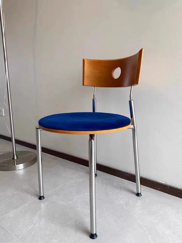 Vintage Solid Wood Dining Chair with Backrest - Bauhaus Style Mid-Century Chair, Stainless Steel Restaurant Stool, Designer Seating for Home Use