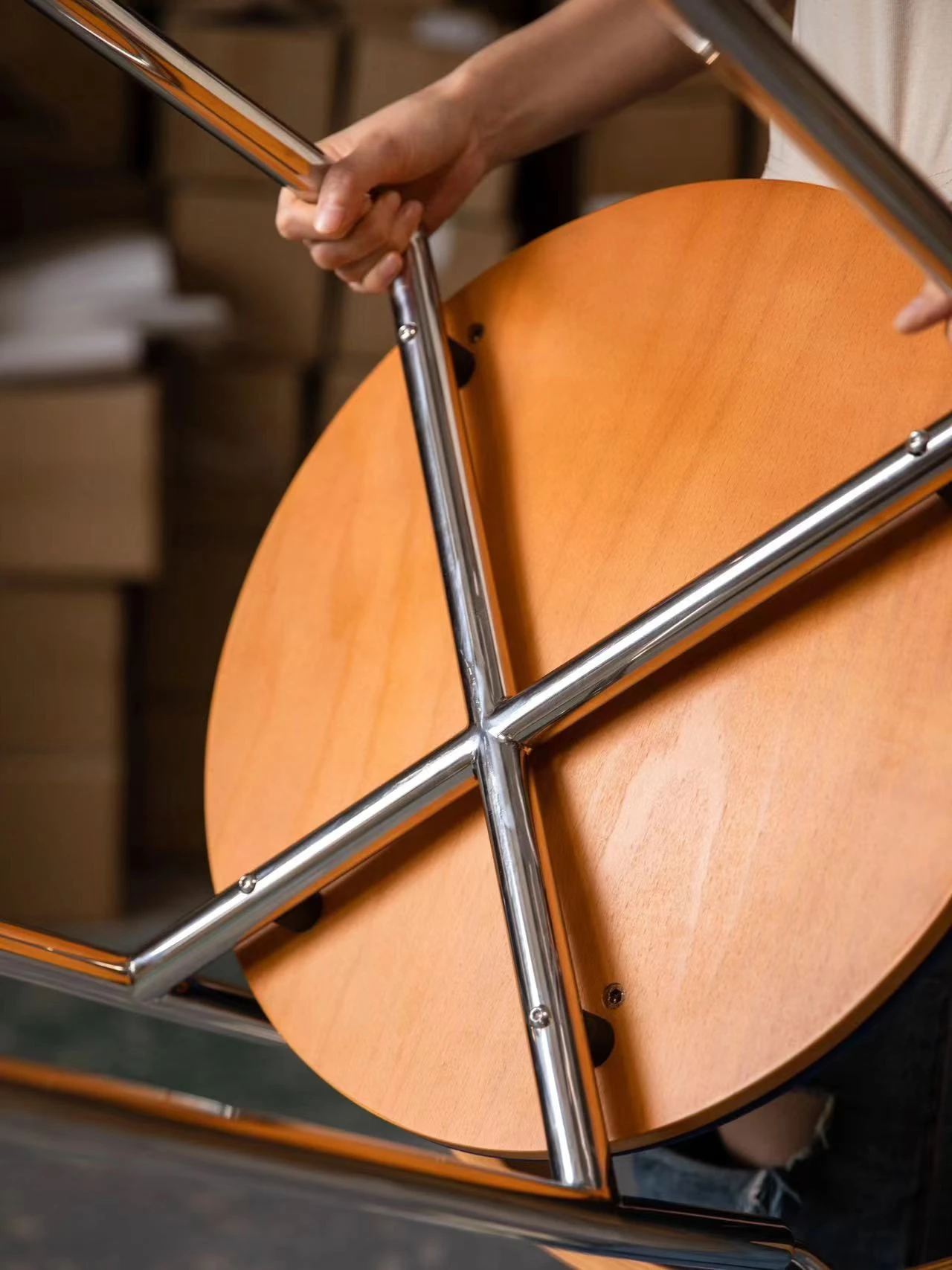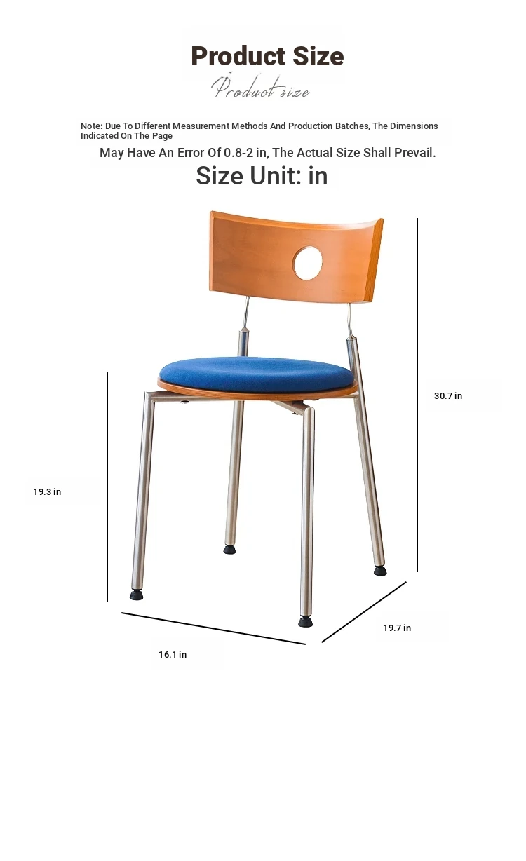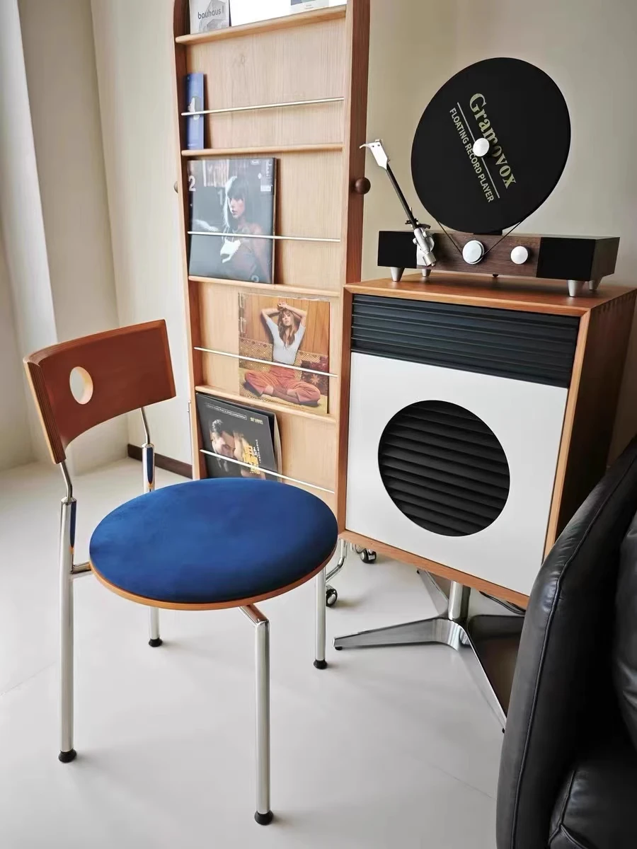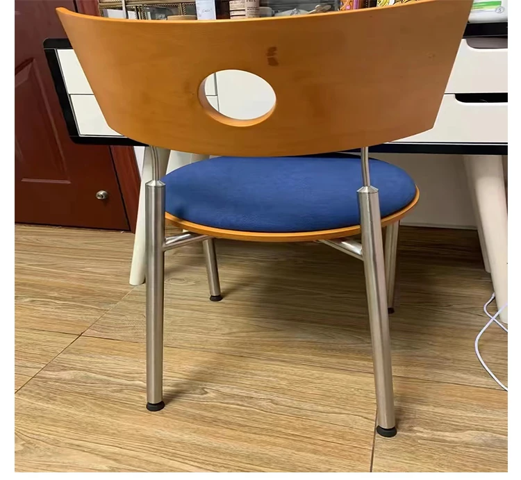 Vintage Solid Wood Dining Chair with Backrest - Bauhaus Style Mid-Century Chair, Stainless Steel Restaurant Stool, Designer Seating for Home Use