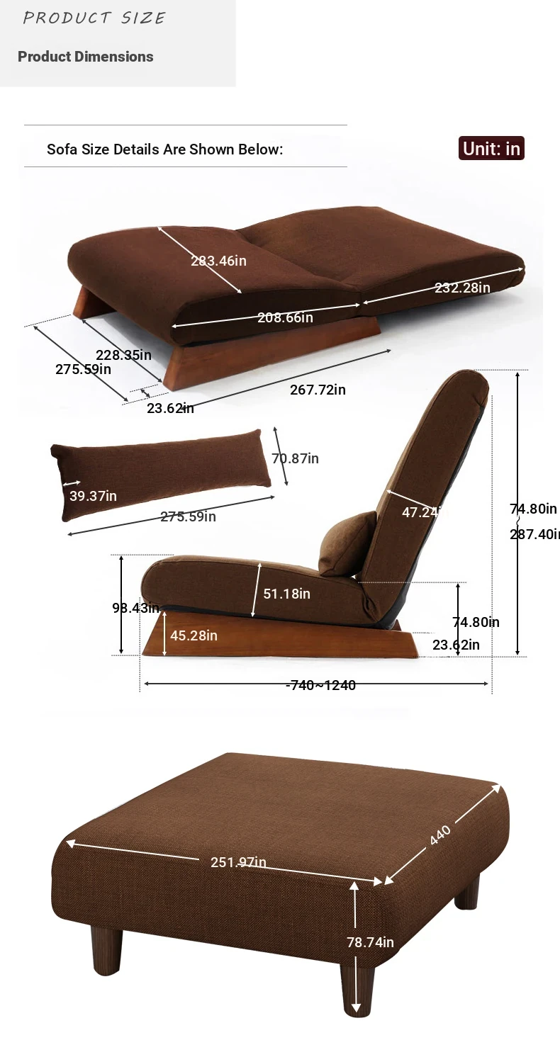 Exclusive Edition: Sofa + Pedal [Brown] [SS Grade Comfortable Breathable Cotton Hemp Fabric + High Resilience Sponge]]