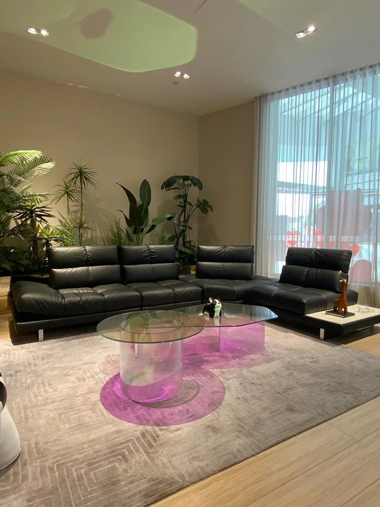 Italian Minimalist Asymmetrical Corner Sofa – Perfect for Villas, Spacious Flats, Hotels, and Office Lounges. Stylish Designer Piece for Reception Areas and Client Meetings.