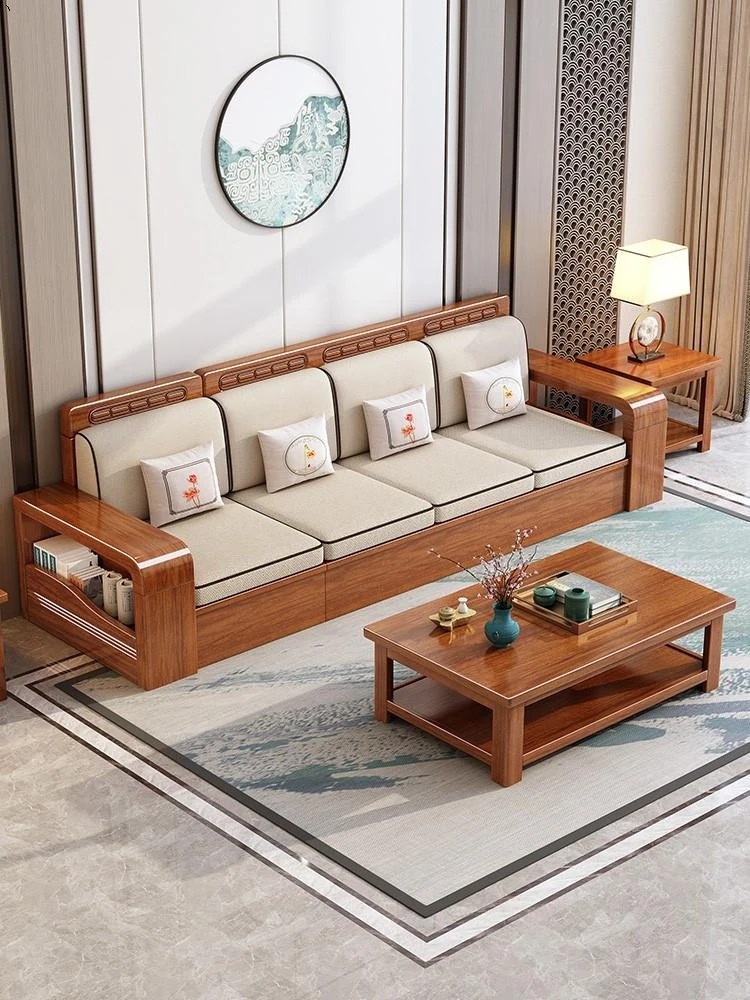 New Chinese Style Solid Wood Sofa in Black Gold - Versatile for Summer and Winter, Ideal for Spacious Villas with Storage Solutions - 2025 New Arrival