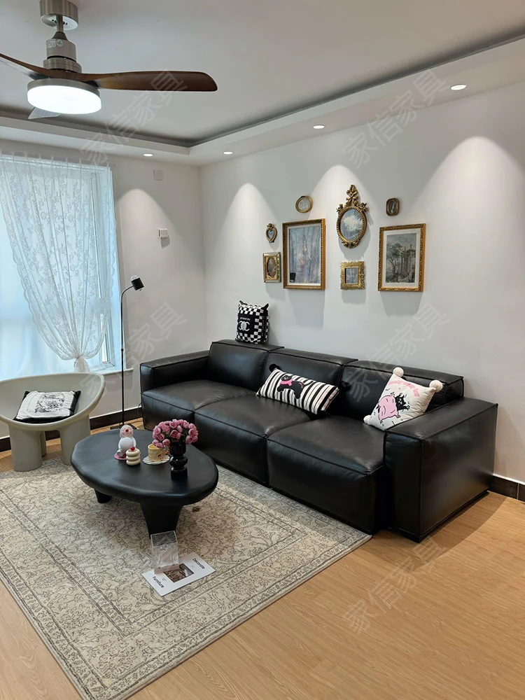 Italian Minimalist Genuine Leather Sofa - Modern Retro Style Black Cloud-Shape Sofa for Small Living Rooms