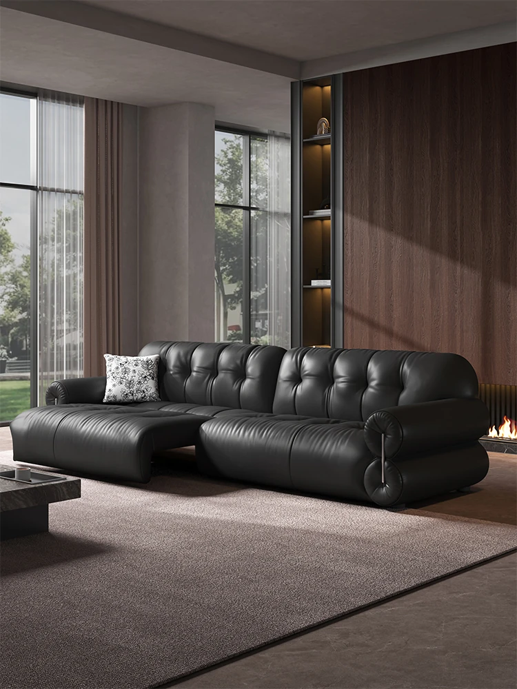 Lawrence Sofa - Italian Minimalist Design for Spacious Villas, Luxurious Black Top-Grain Leather, 25-Year New Model, Perfect for Modern Living Rooms