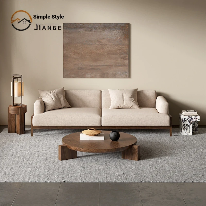 Modern Minimalist North American Black Walnut Sofa - Solid Wood Fabric Couch for Contemporary Living Rooms, Perfect Blend of Style and Comfort