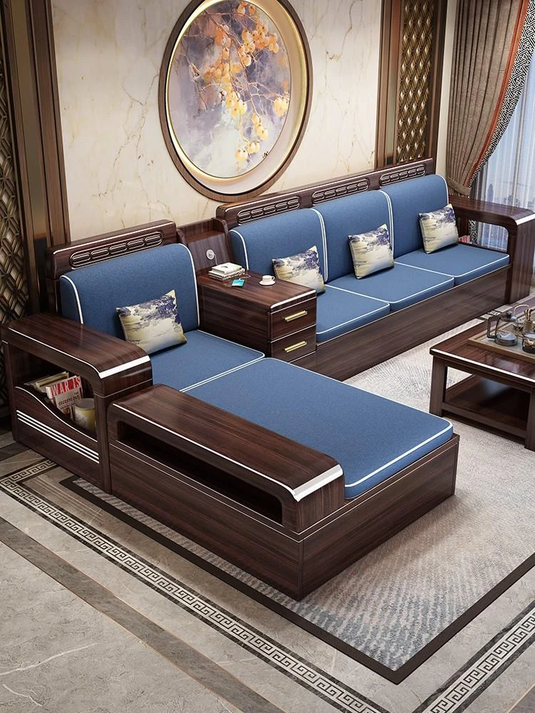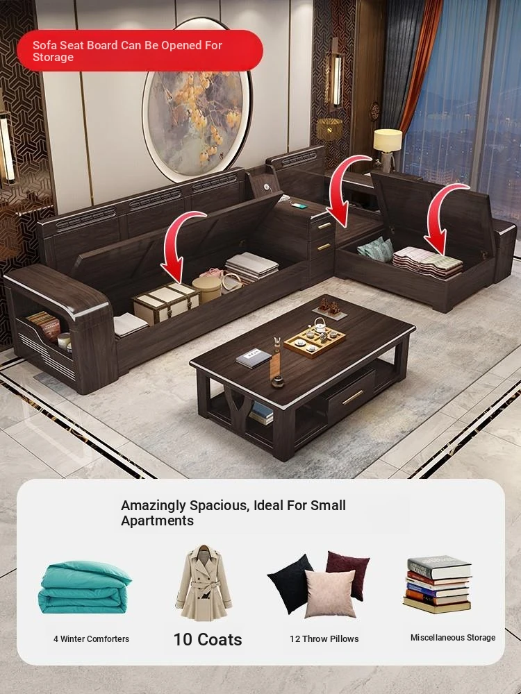 Modern Chinese-Style Solid Zitan Wood Sofa Set for Small Living Rooms - Elegant and Functional All-Wood Design with Storage Solutions