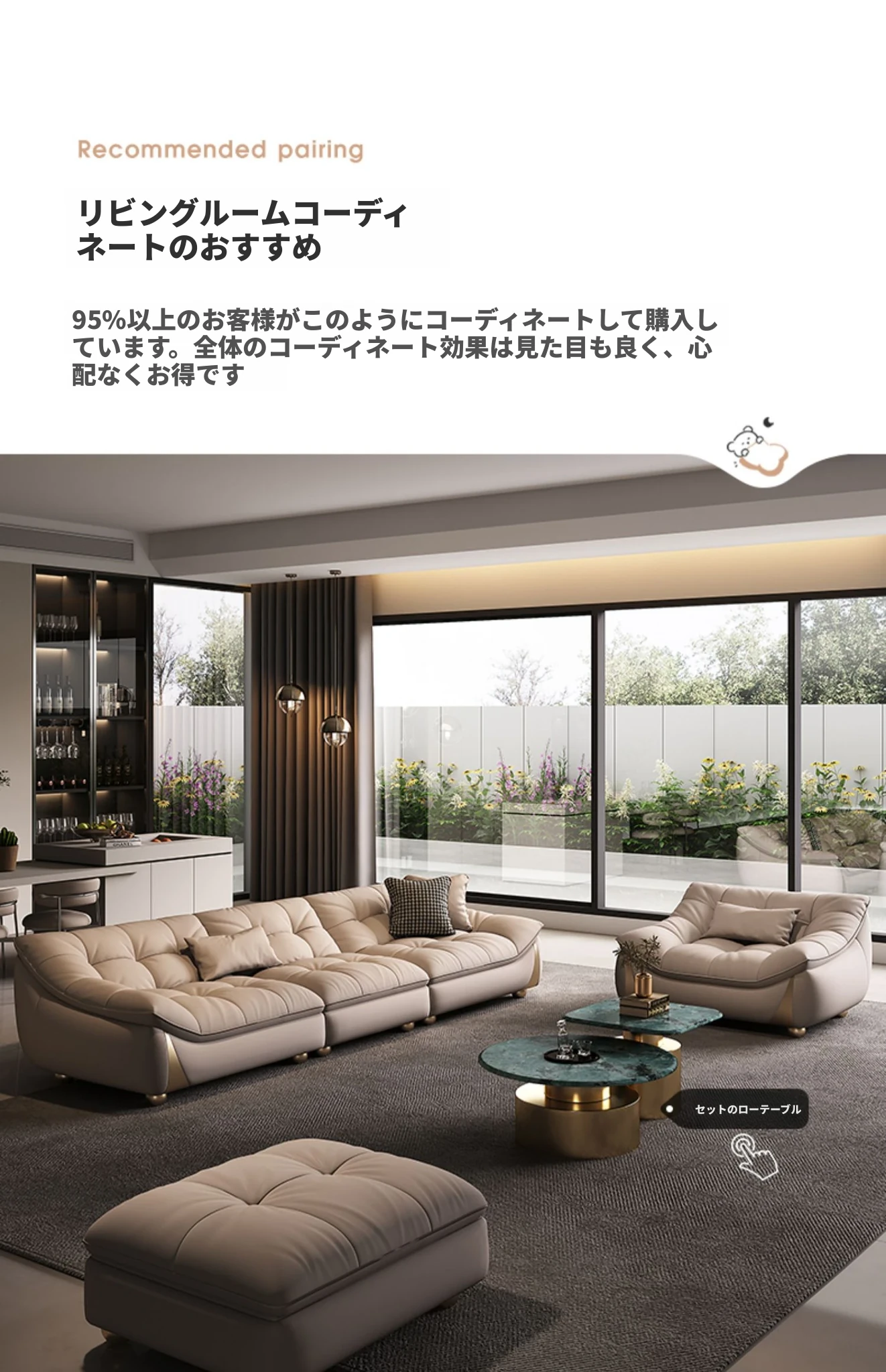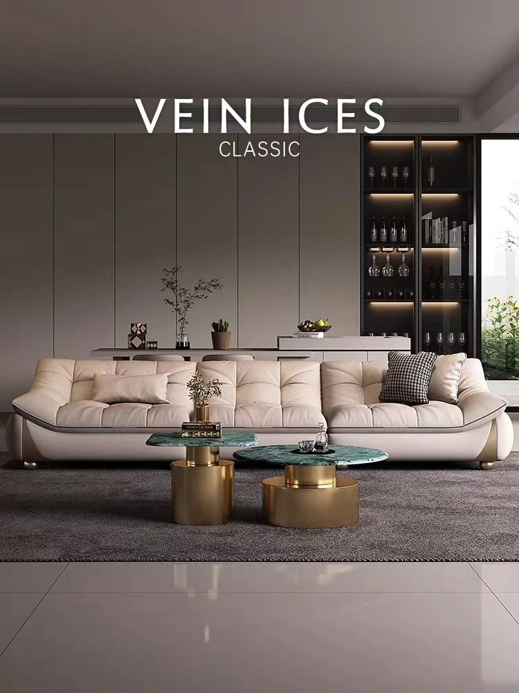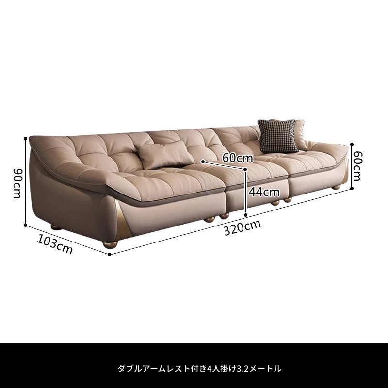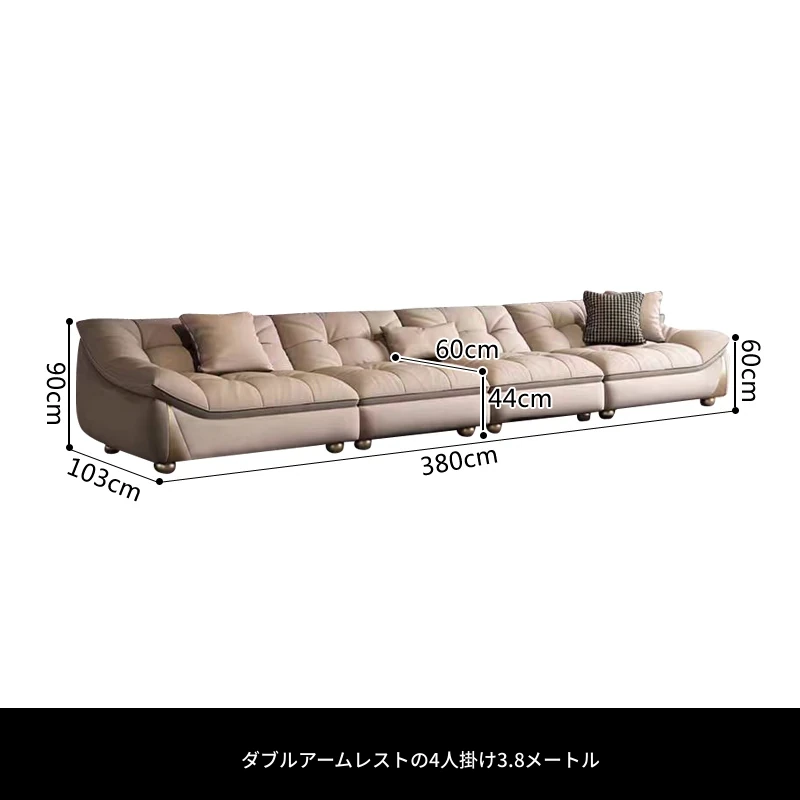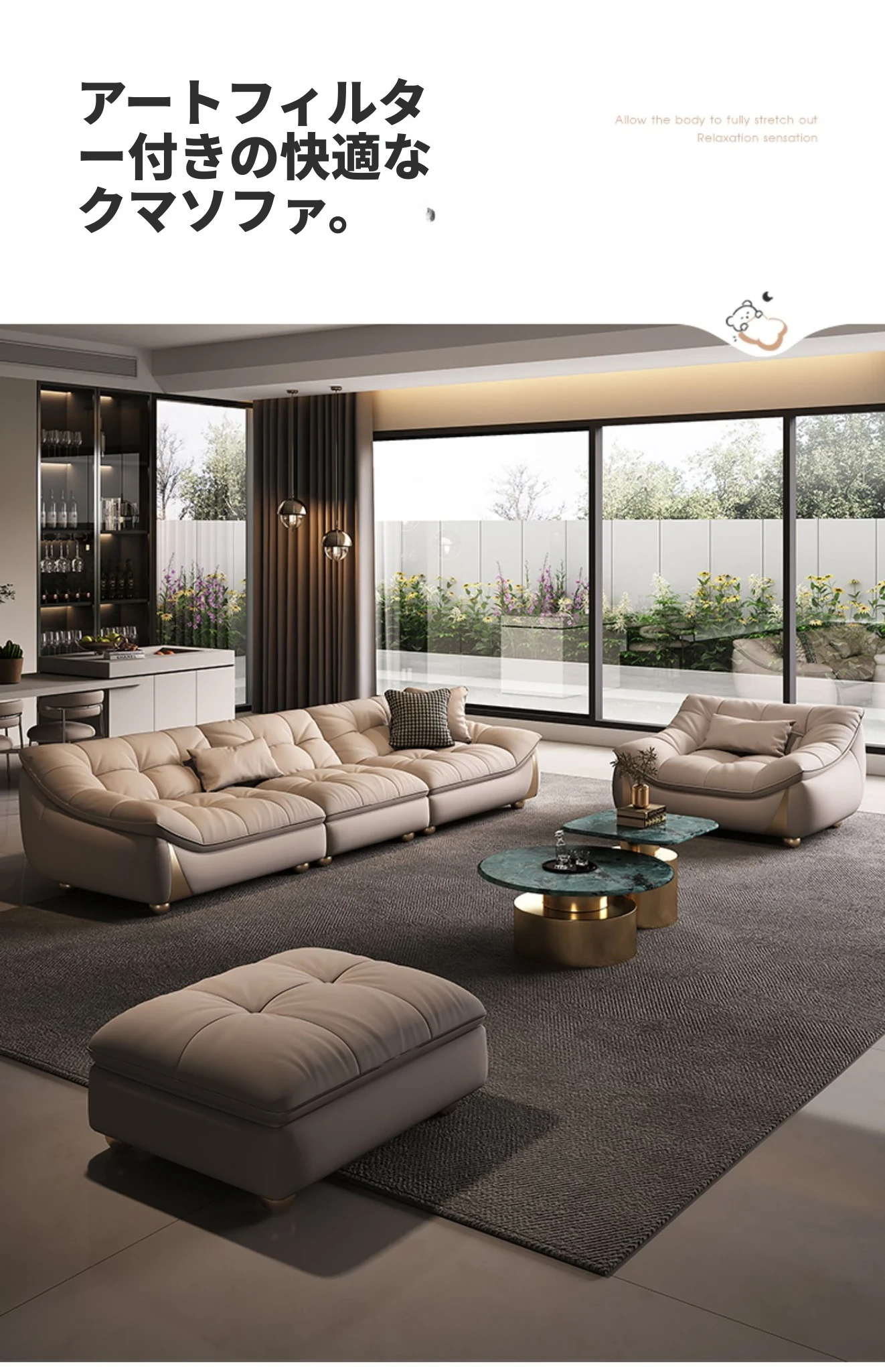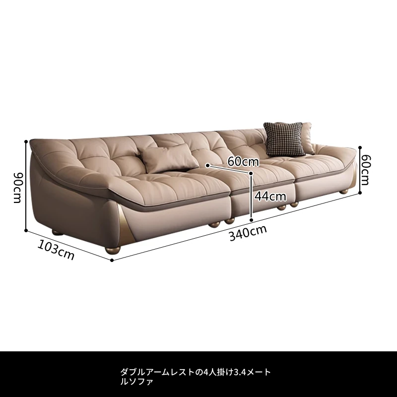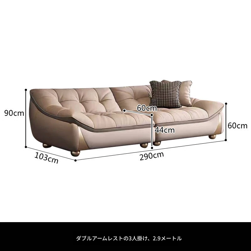 2024年最新モデル!現代的ラグジュアリーなクリーム風デザイン、真のレザーを使用したダウンセーリングソファ。横長リビングや別荘にぴったりのスタイリッシュなラグジュアリーアイテム!