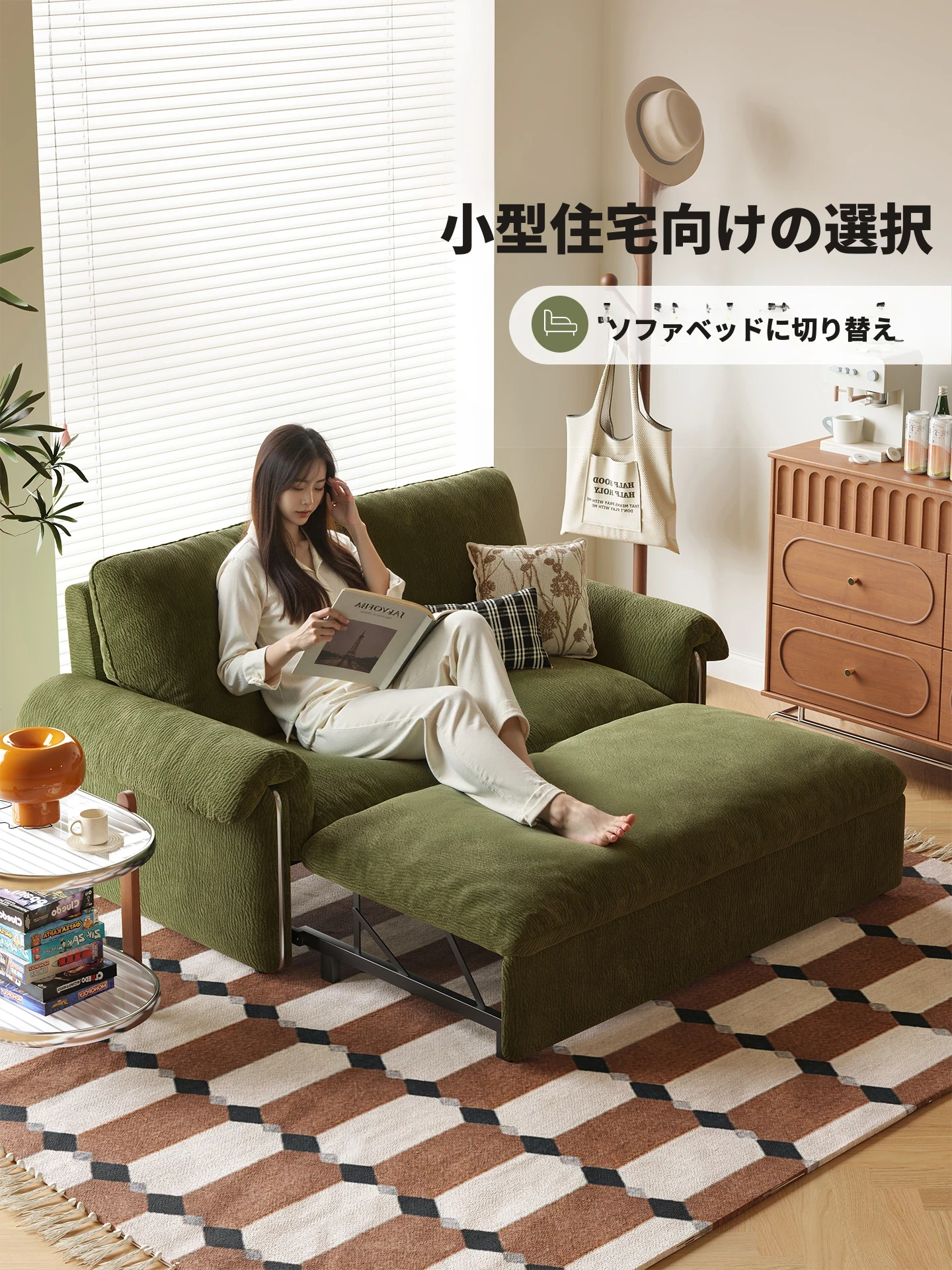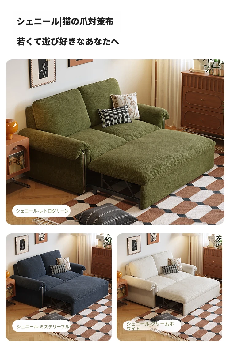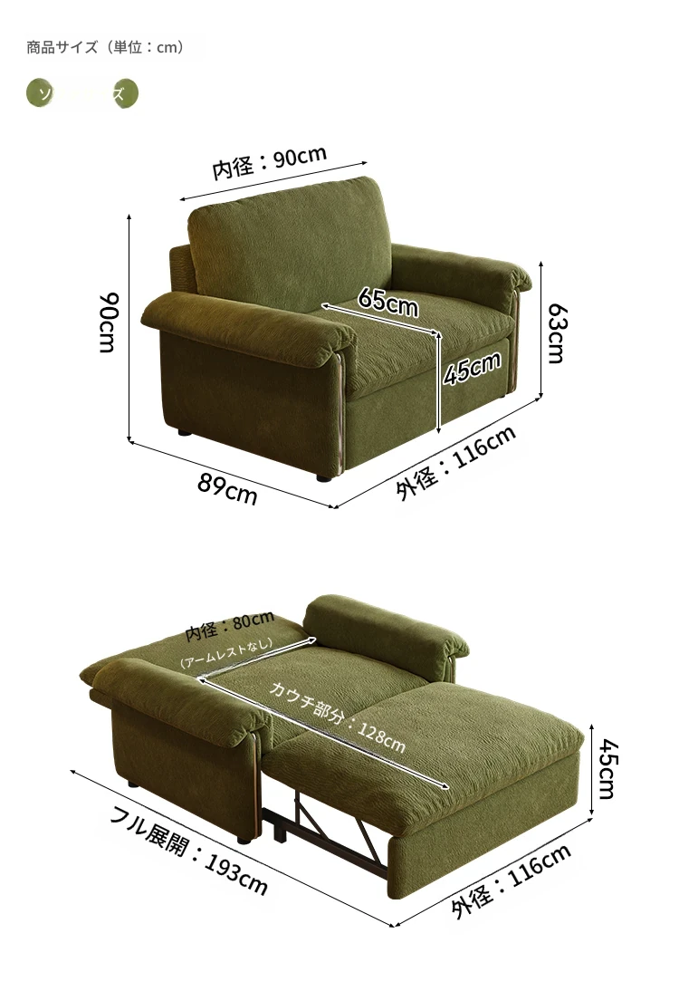 1.16メートル【ソファが瞬時にベッドに変身 全て洗えるデザイン】