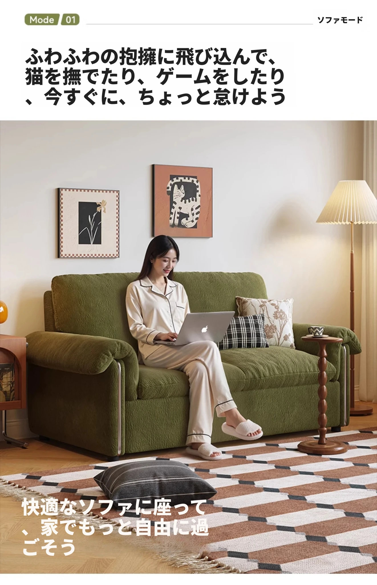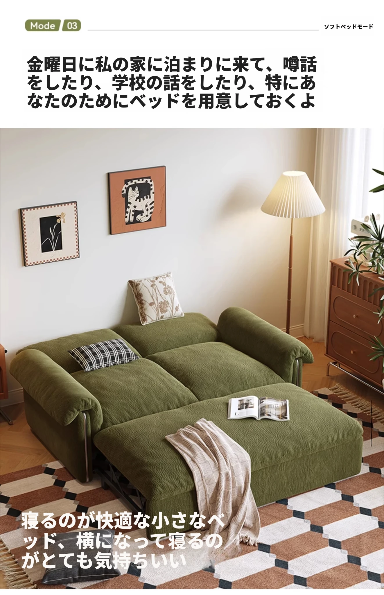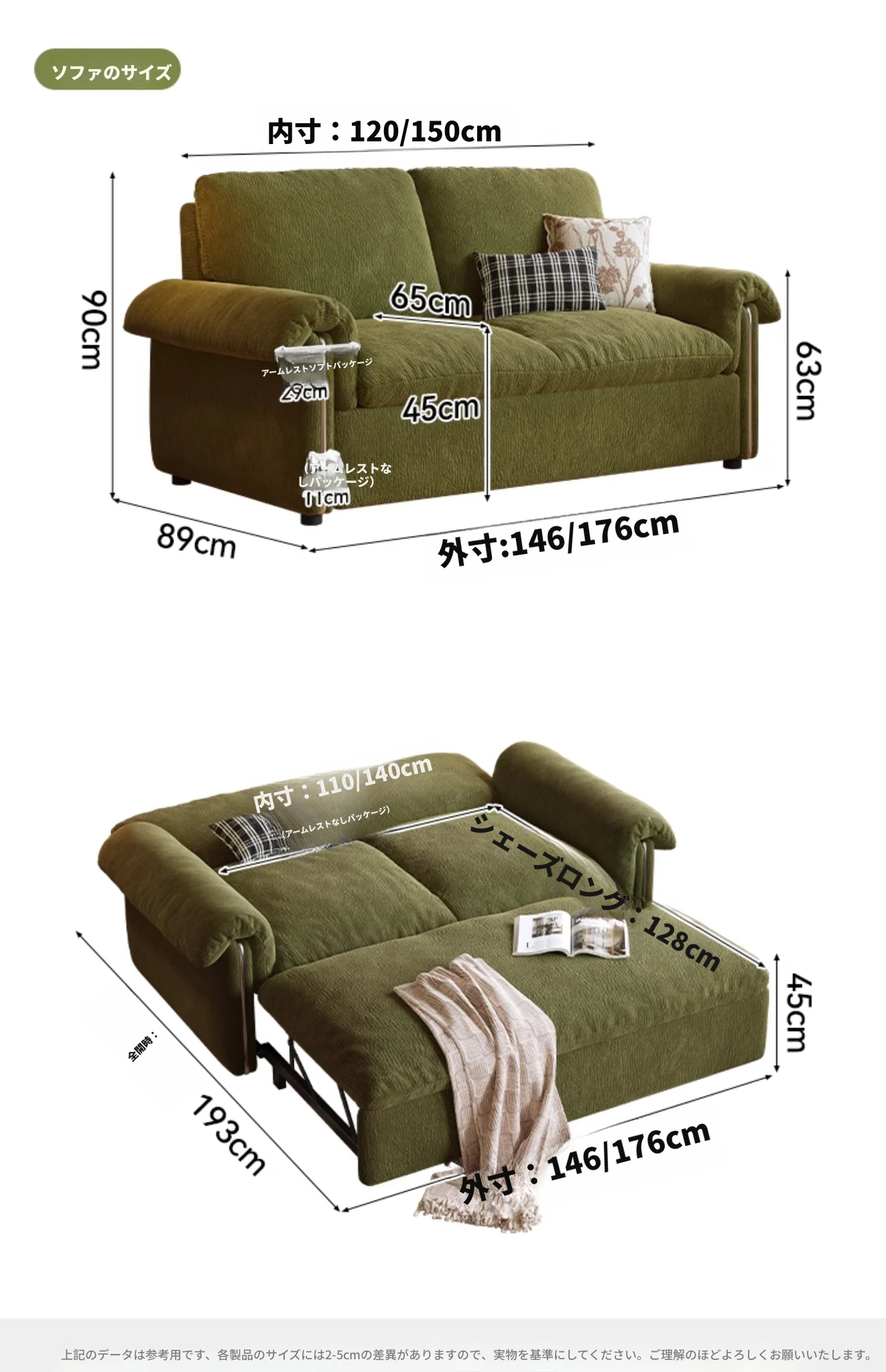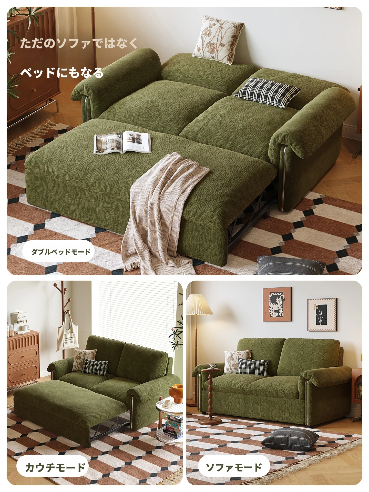 1.46メートル【ソファが瞬時にベッドに変身 全て洗えるデザイン】