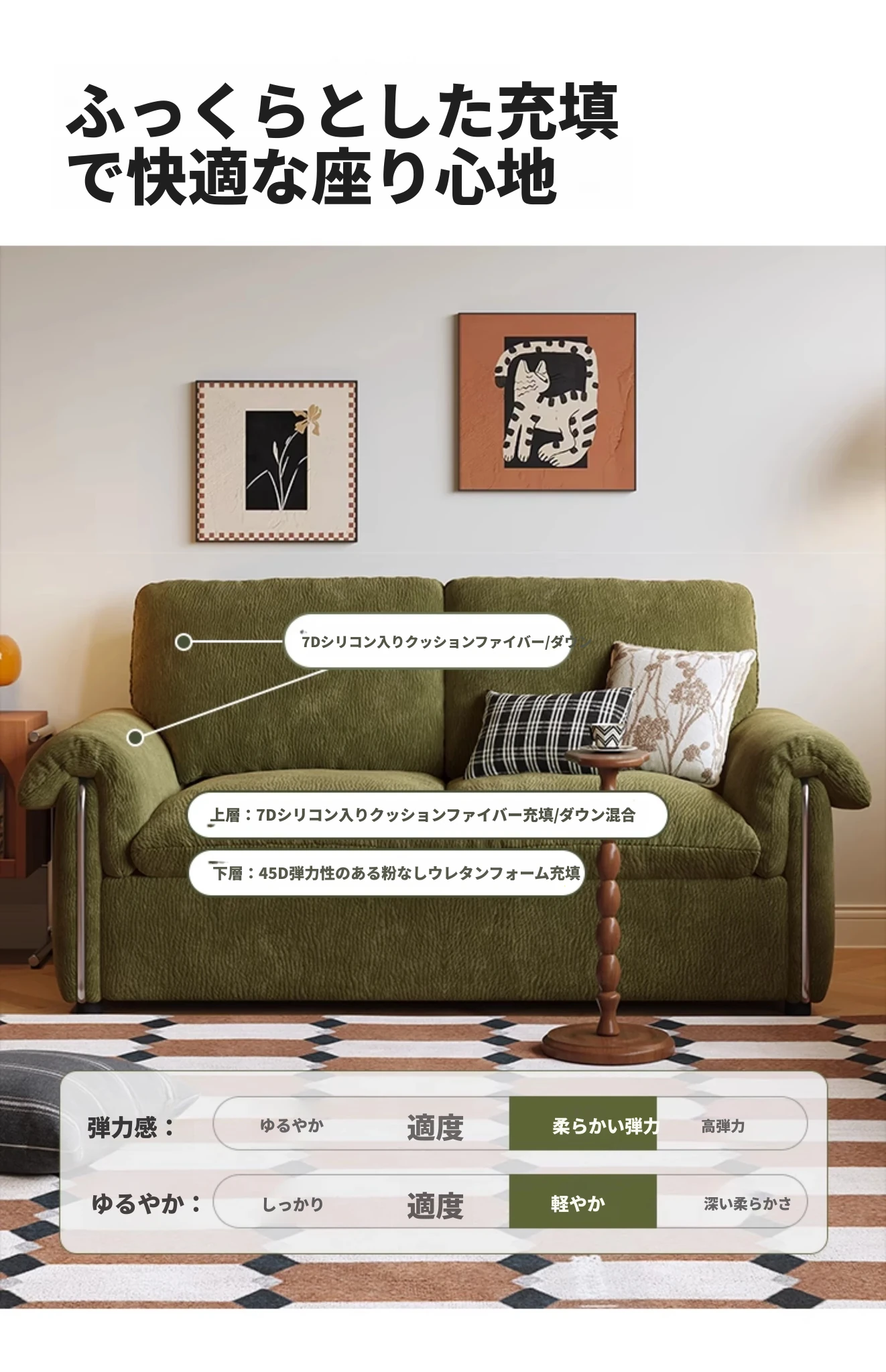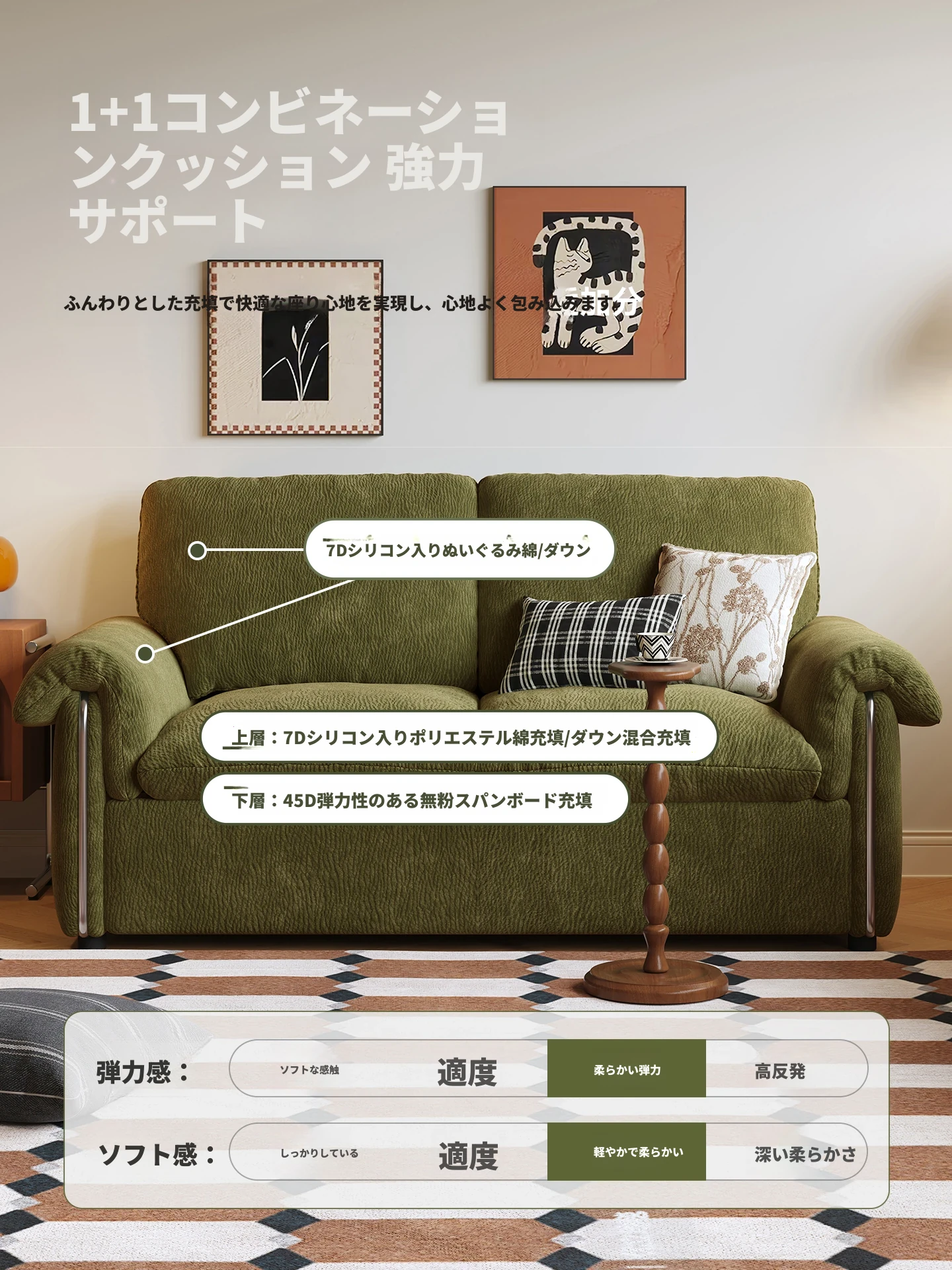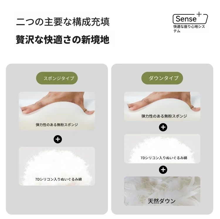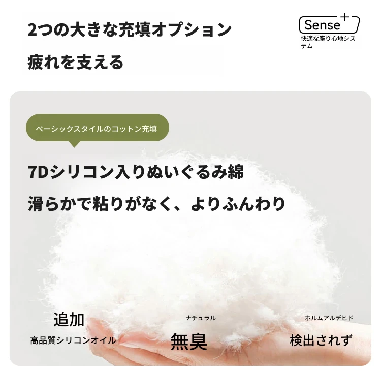 柔らかい肌触りのシェニール+【羽毛タイプ】7Dシリコン入りぬいぐるみ綿+羽毛+弾力のあるウレタンフォーム