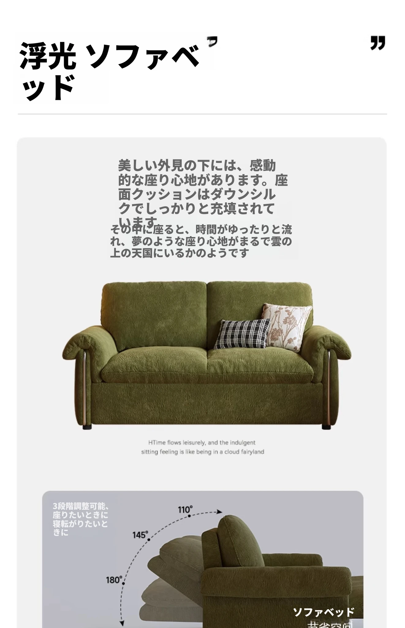 1.76メートル【ソファが瞬時にベッドに変身 全て洗えるデザイン】