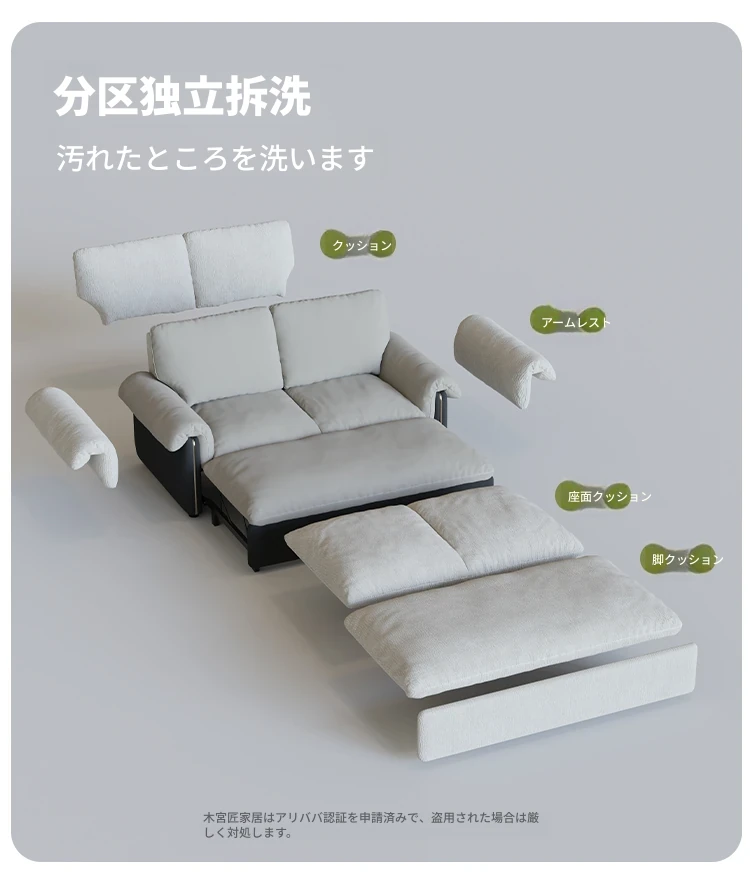 木宮工房の洗えるソファベッド|折りたたみ2WAYデザイン|小型住宅向けの二人用マルチファンクション|2025年新作!快適な空間を演出し、ライフスタイルを豊かにします!