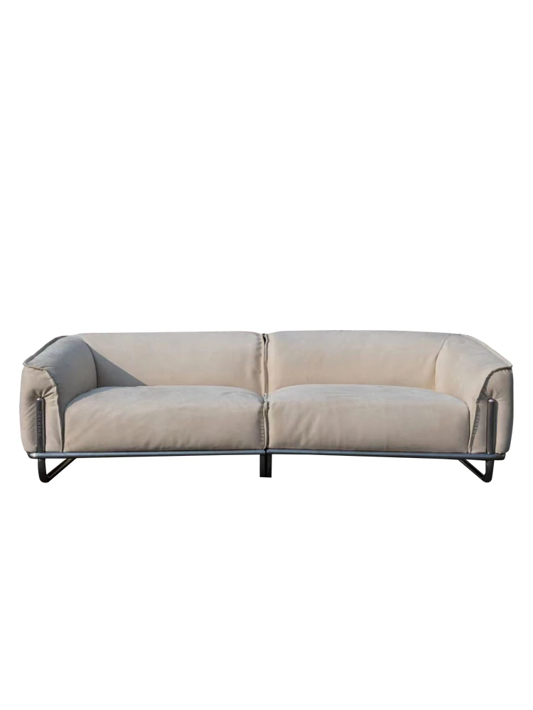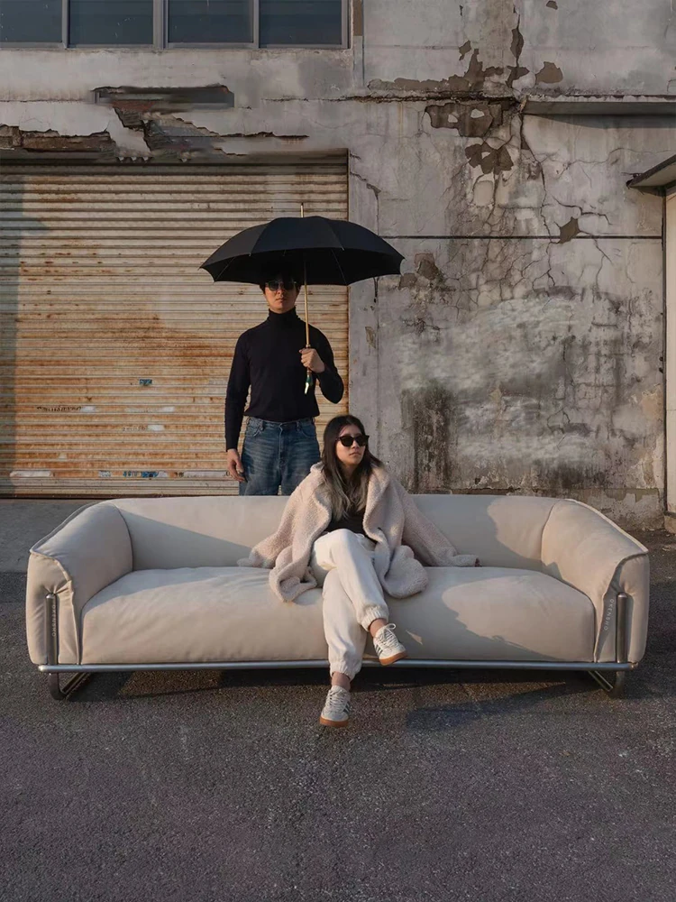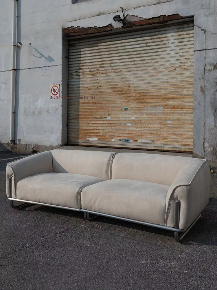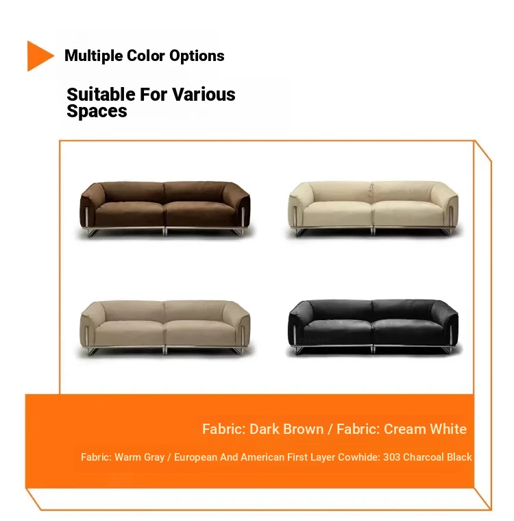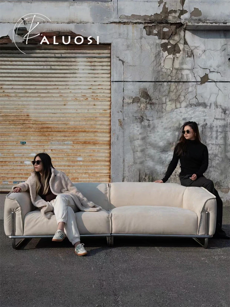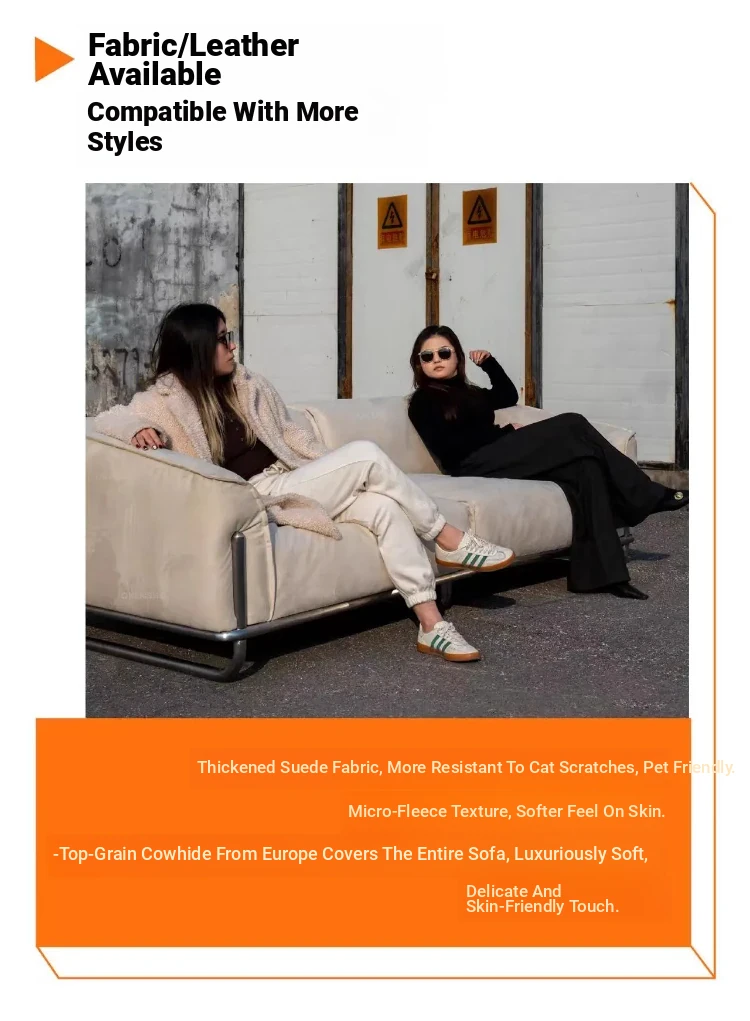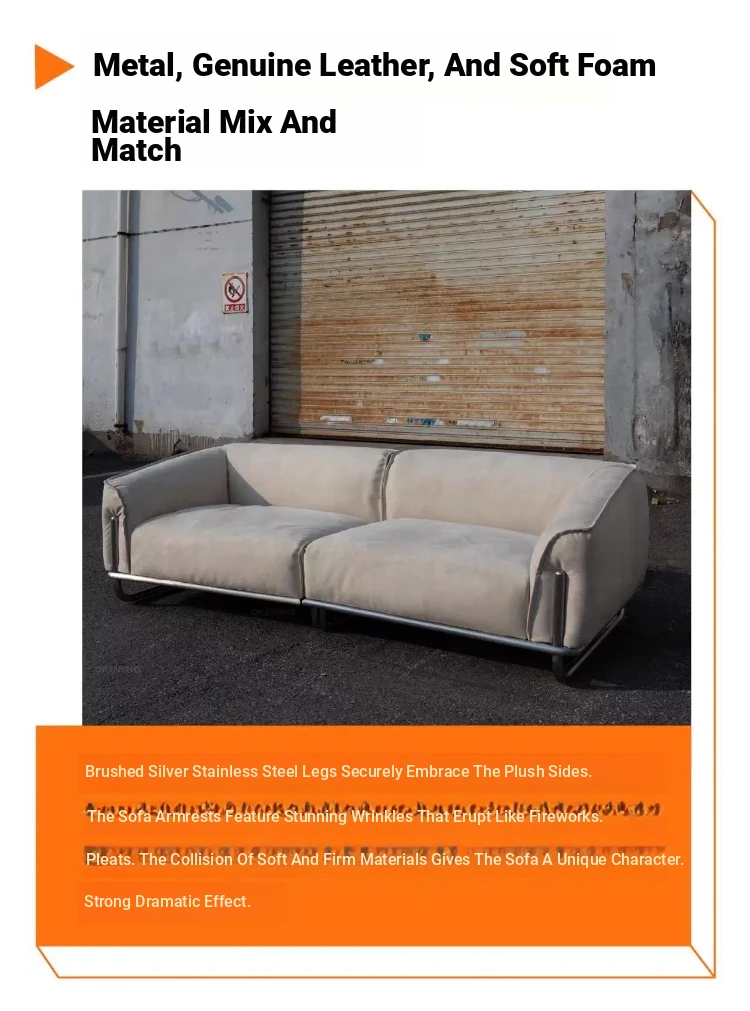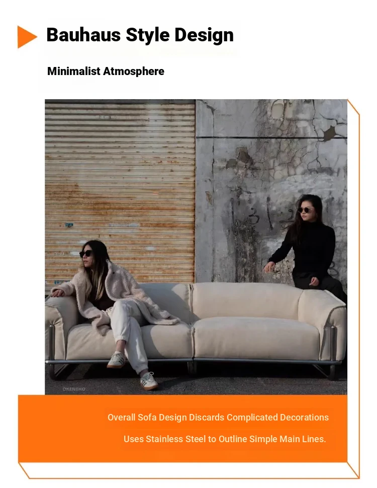 Bauhaus Genuine Leather Sofa - Premium Top Grain Cowhide, French Vintage Style, Modern Minimalist Design, Straight-Line Feather Down, 3-Seater with Small Steel Frame