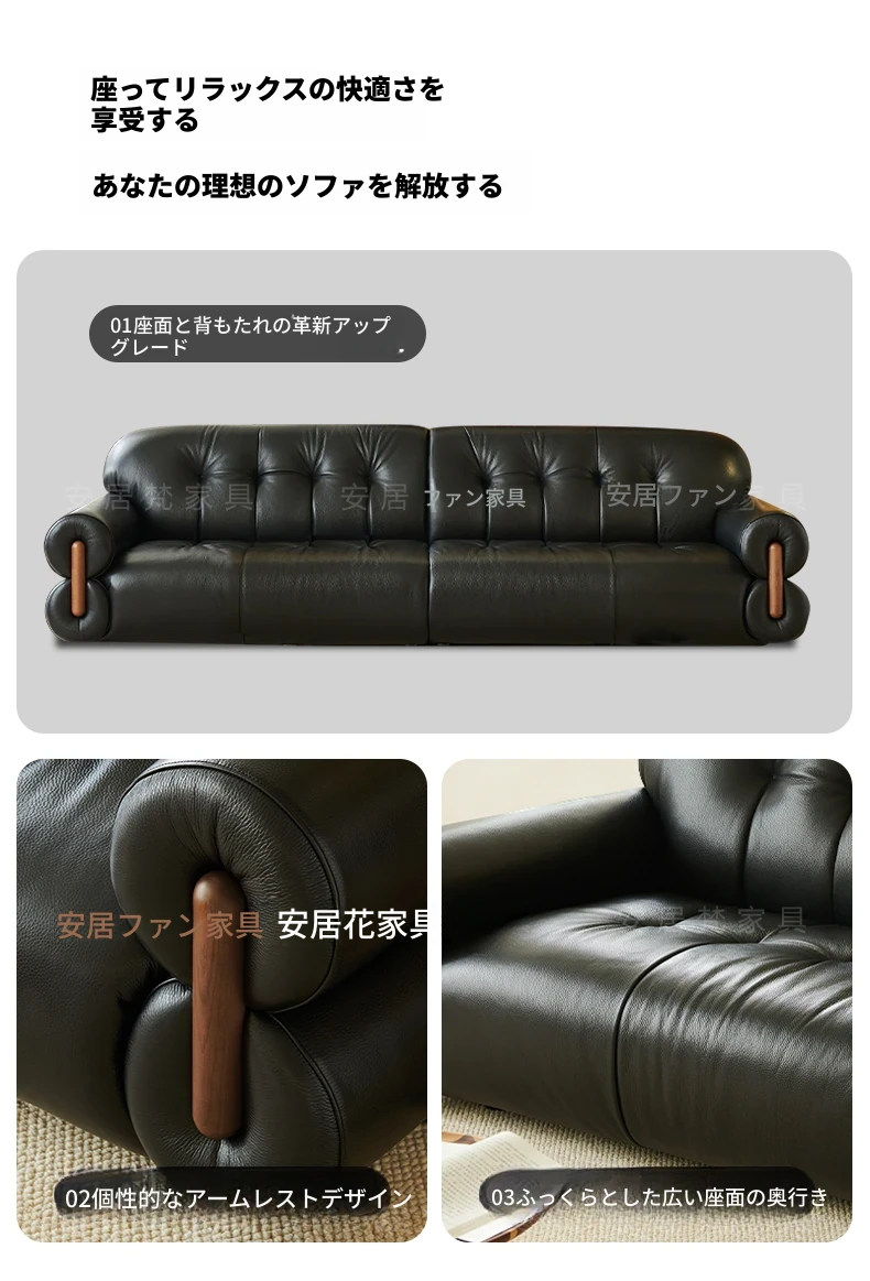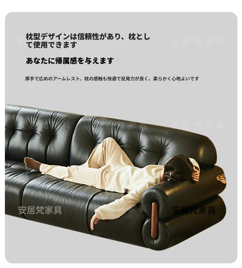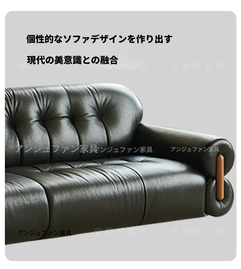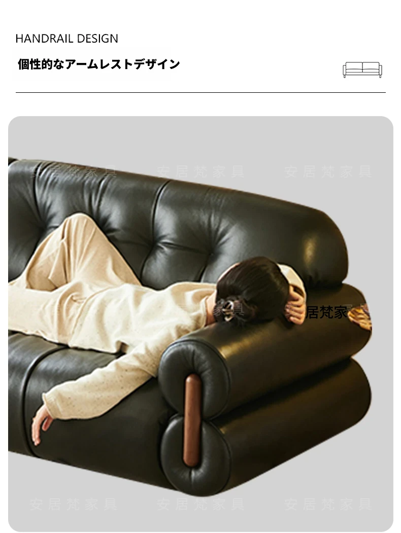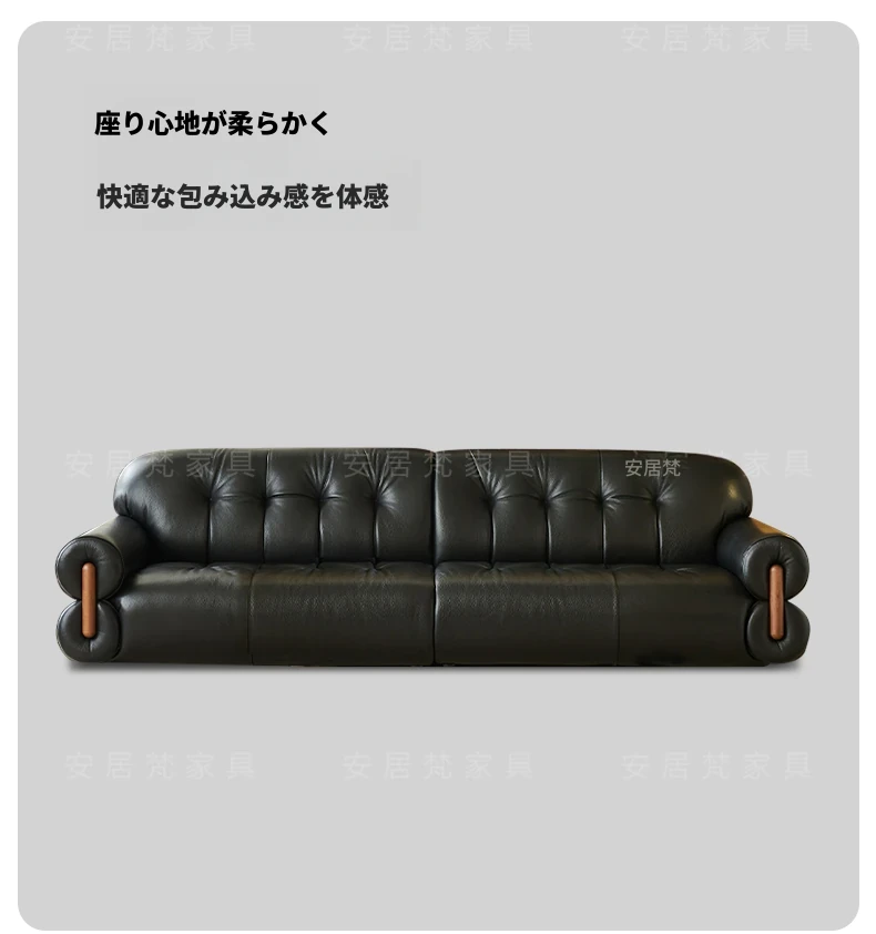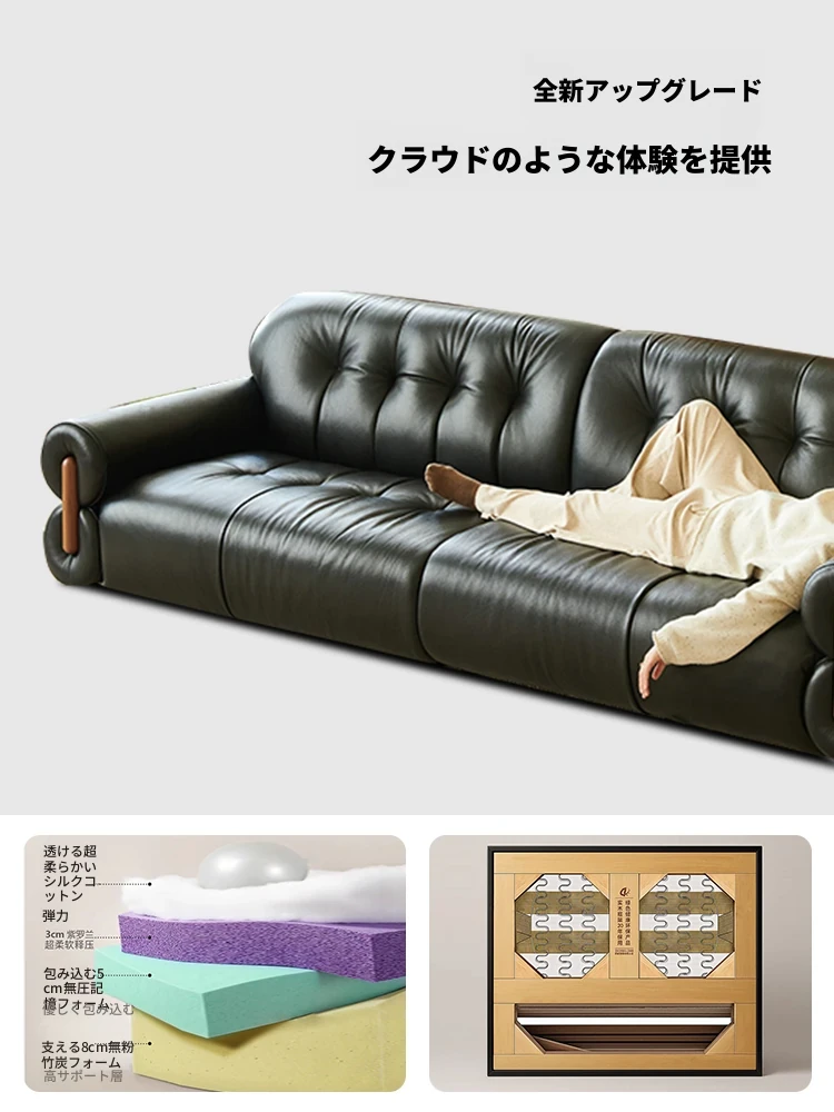 黒糖ソファ 全青皮 チェリーウッド 使用 高級レザー ヴィンテージスタイル デザイナーズ クラウドソファ - 贅沢なくつろぎを提供する、洗練されたインテリアのアイコン。