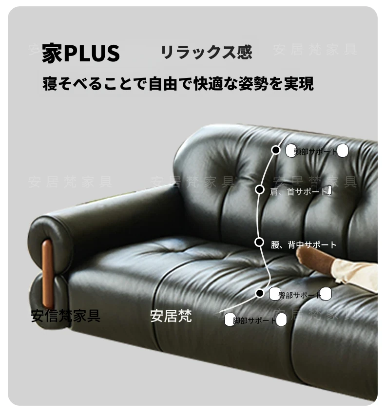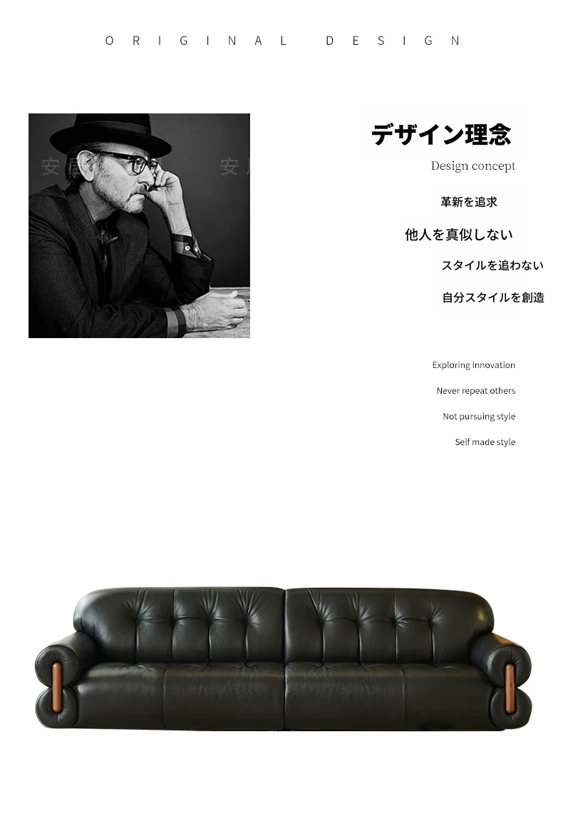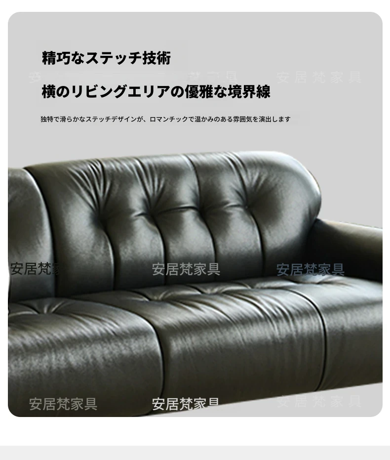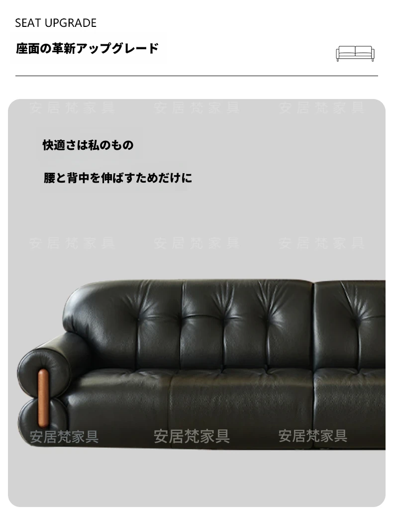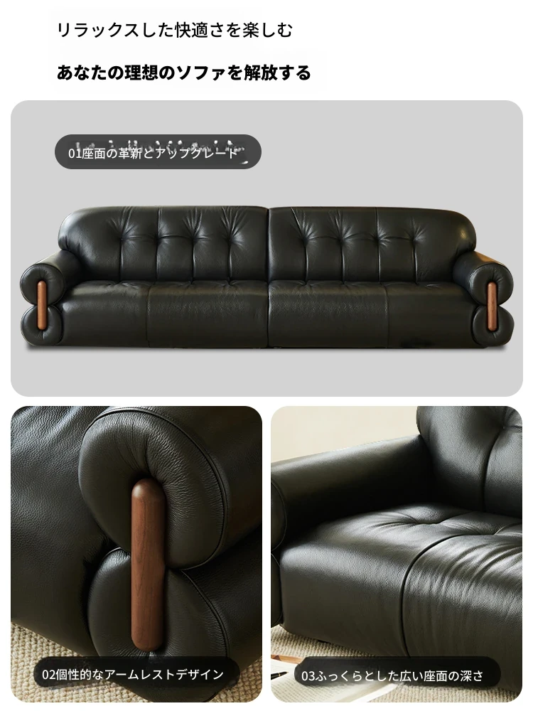 黒糖ソファ 全青皮 チェリーウッド 使用 高級レザー ヴィンテージスタイル デザイナーズ クラウドソファ - 贅沢なくつろぎを提供する、洗練されたインテリアのアイコン。