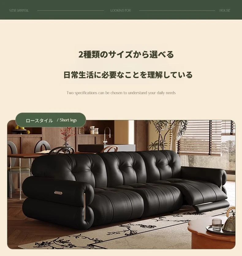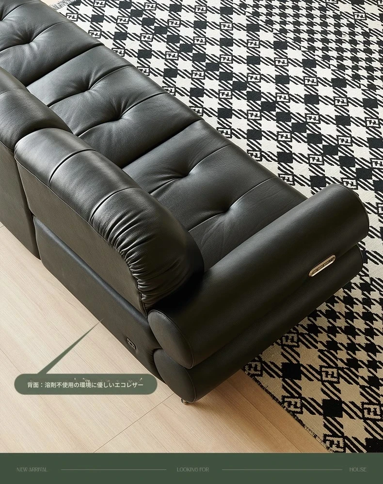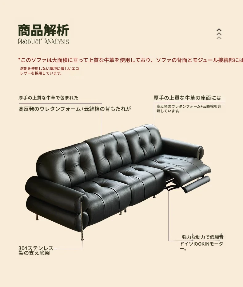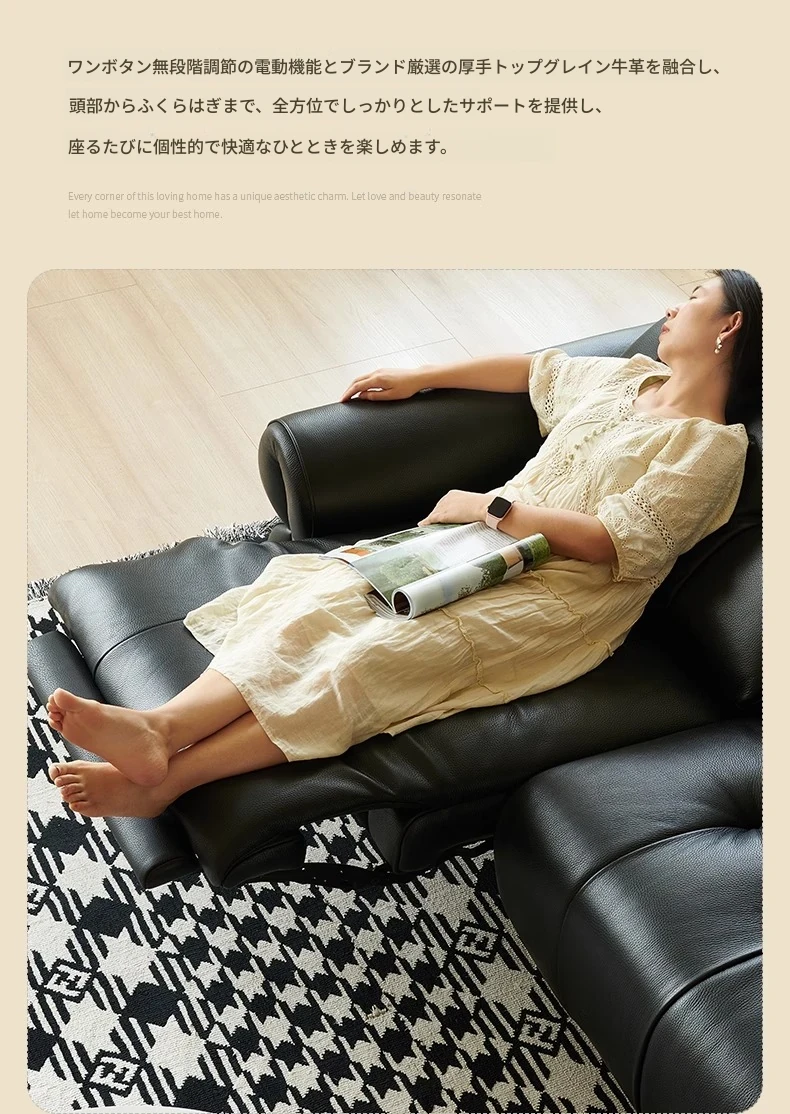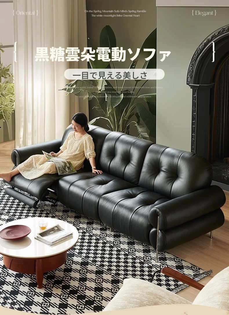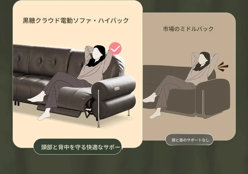 黒糖カラーのリクライニング電動ソファ - イタリアン・ラグジュアリーな本革レトロデザイン、壁にぴったりフィットする雲のような快適さを提供するリビングルーム用ソファ。