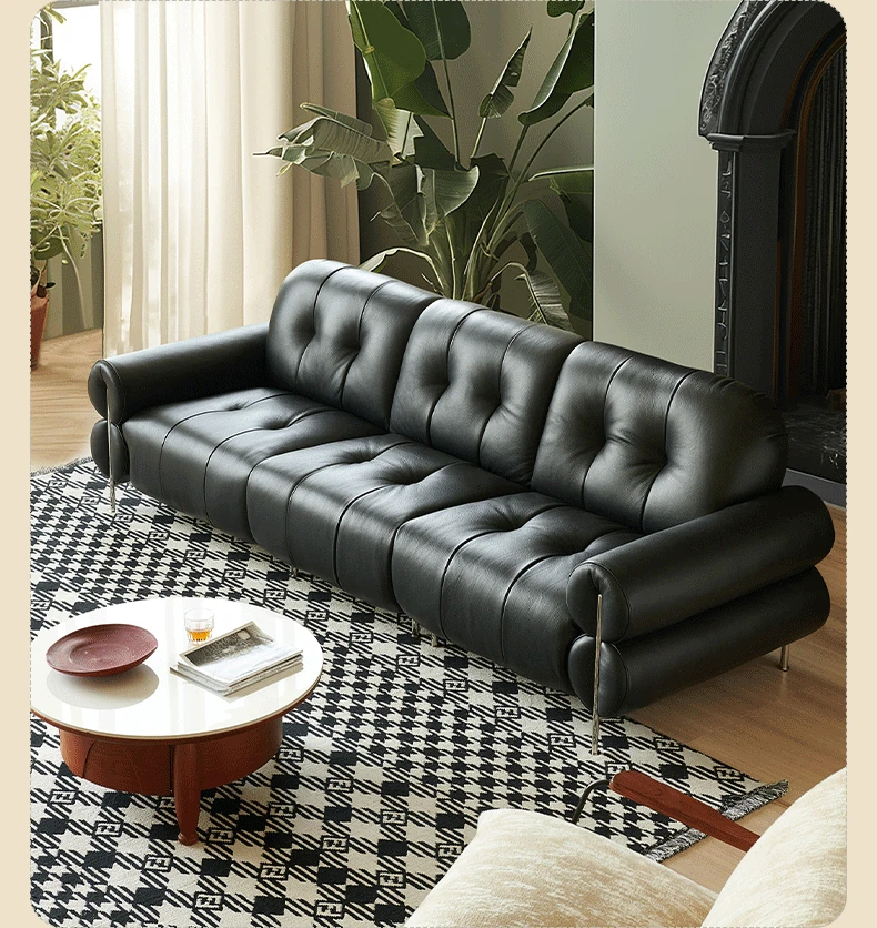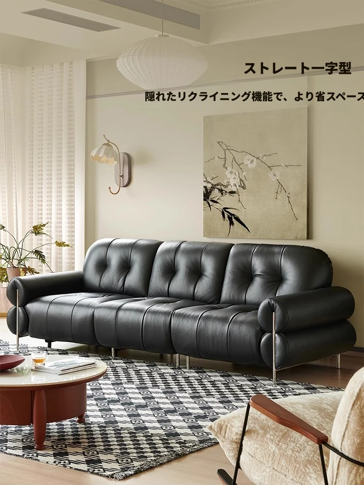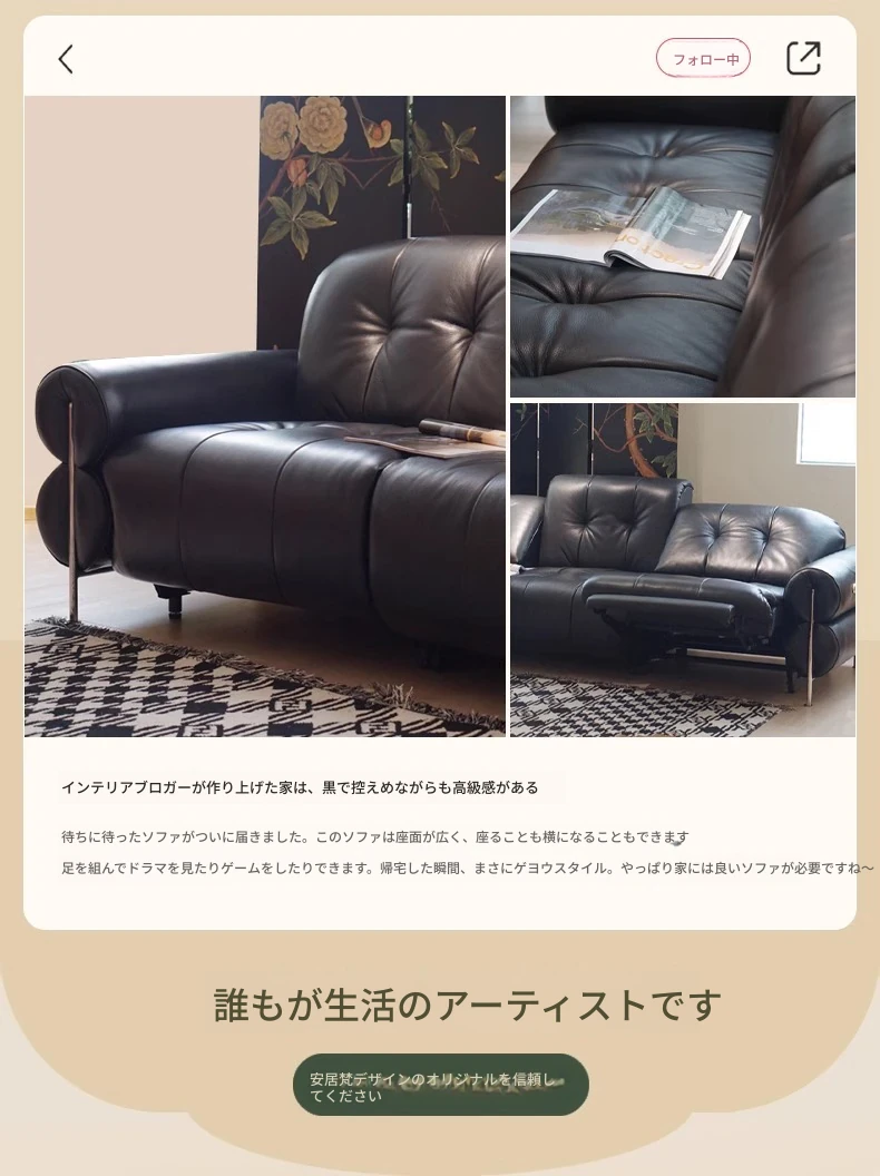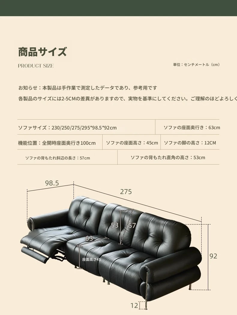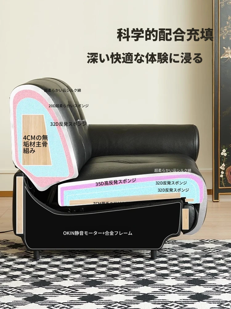 黒糖カラーのリクライニング電動ソファ - イタリアン・ラグジュアリーな本革レトロデザイン、壁にぴったりフィットする雲のような快適さを提供するリビングルーム用ソファ。