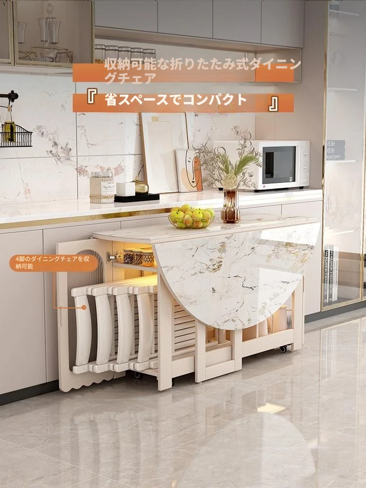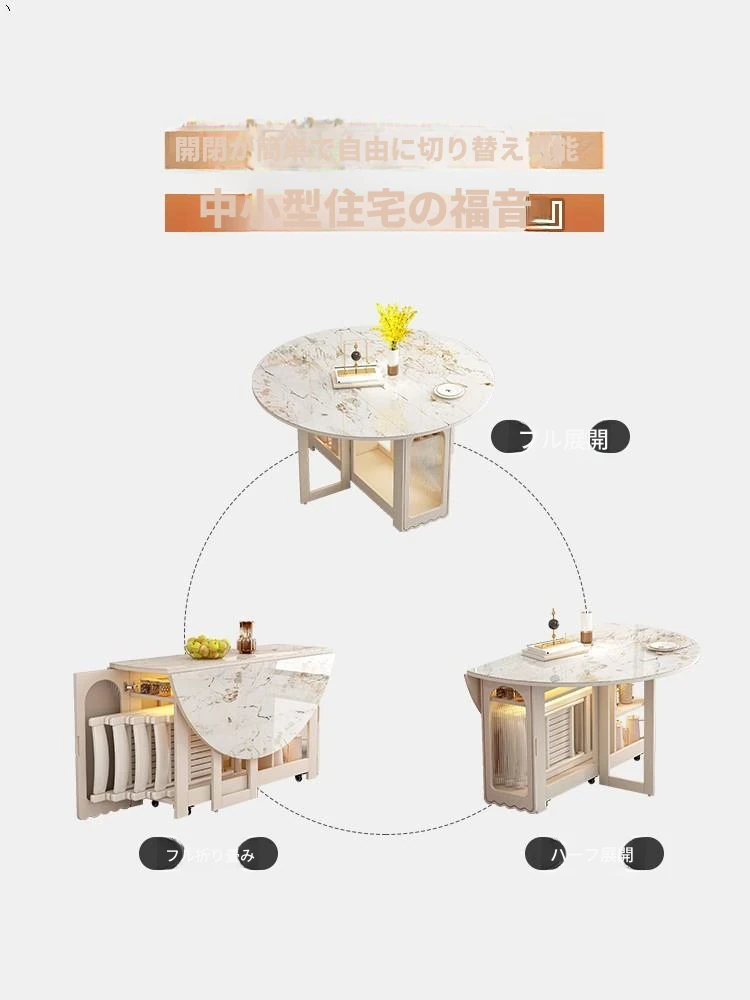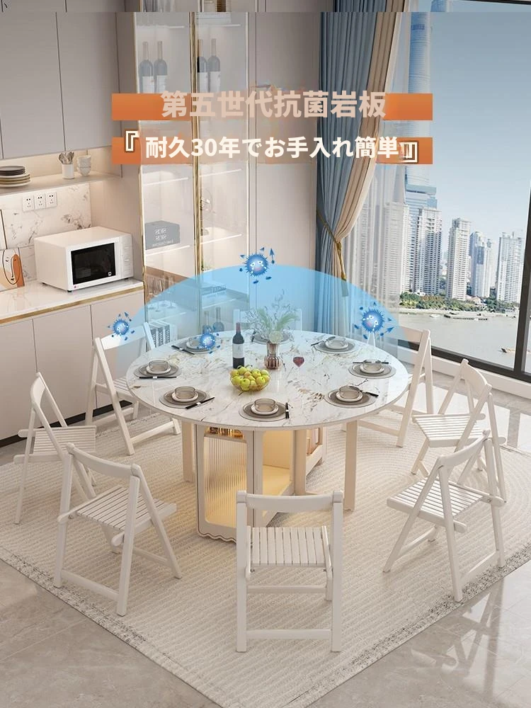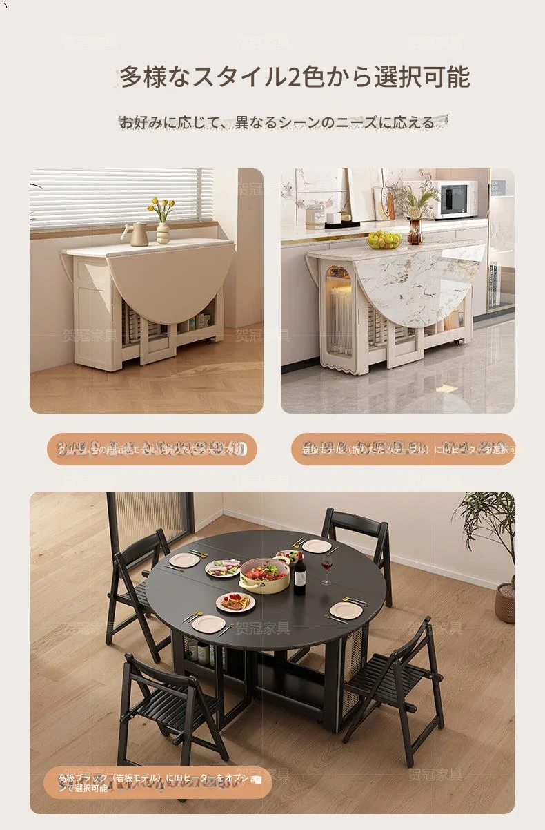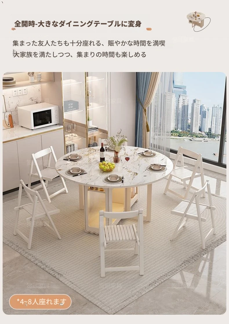 小スペースに最適!移動可能な折りたたみ食卓 - 家庭用ラウンドテーブル、モダンでシンプルなデザイン、多機能なサイドボード一体型。快適な食事空間を演出します!