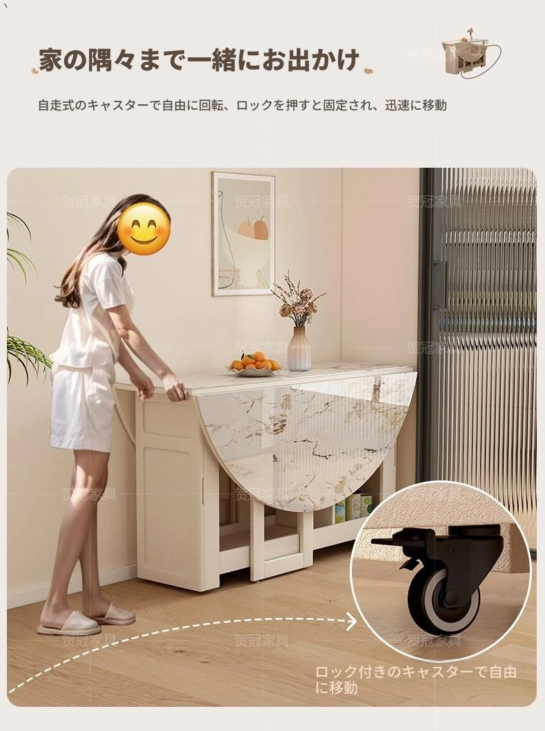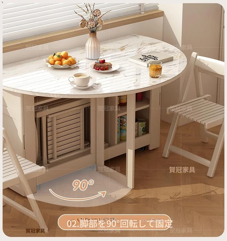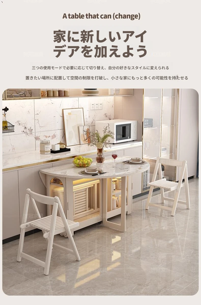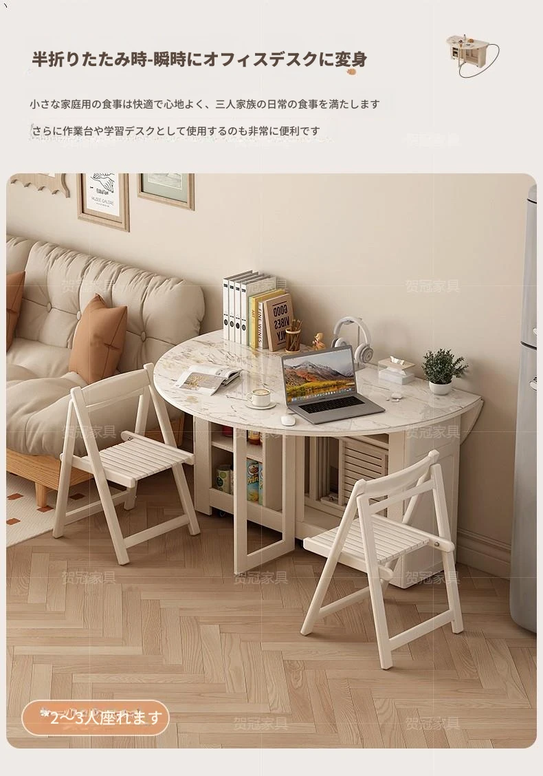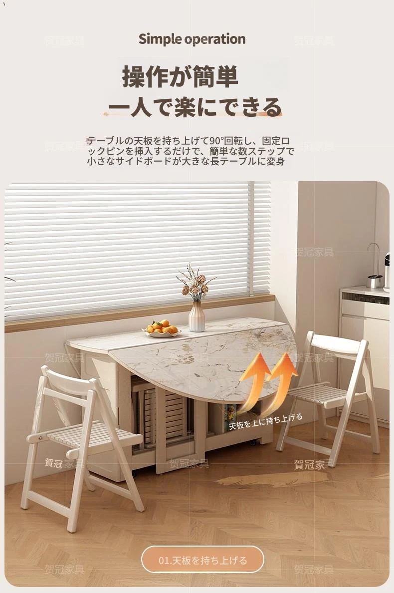 小スペースに最適!移動可能な折りたたみ食卓 - 家庭用ラウンドテーブル、モダンでシンプルなデザイン、多機能なサイドボード一体型。快適な食事空間を演出します!