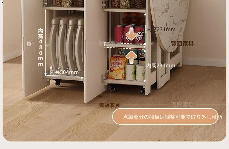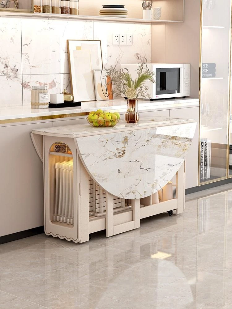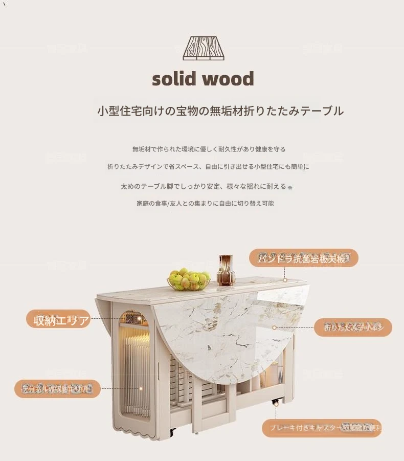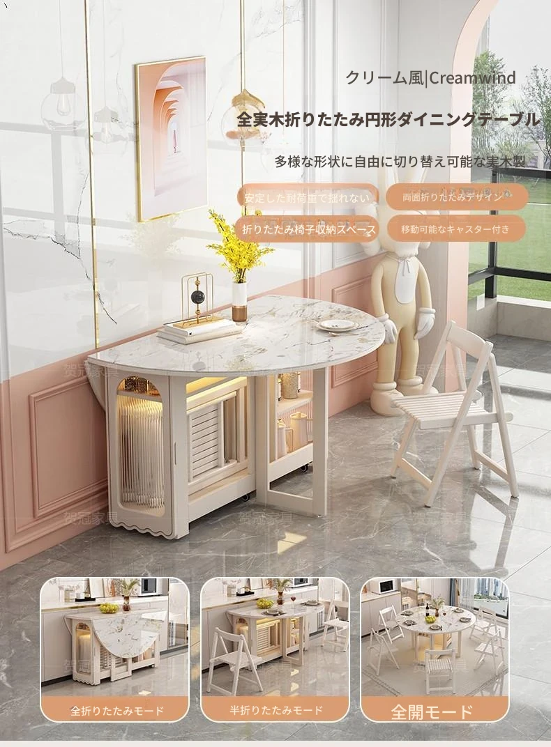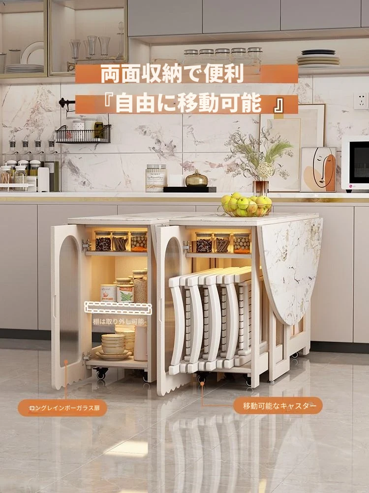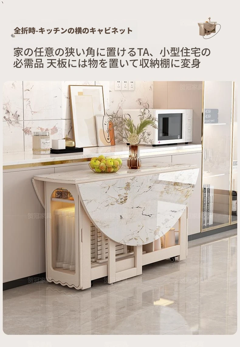小スペースに最適!移動可能な折りたたみ食卓 - 家庭用ラウンドテーブル、モダンでシンプルなデザイン、多機能なサイドボード一体型。快適な食事空間を演出します!