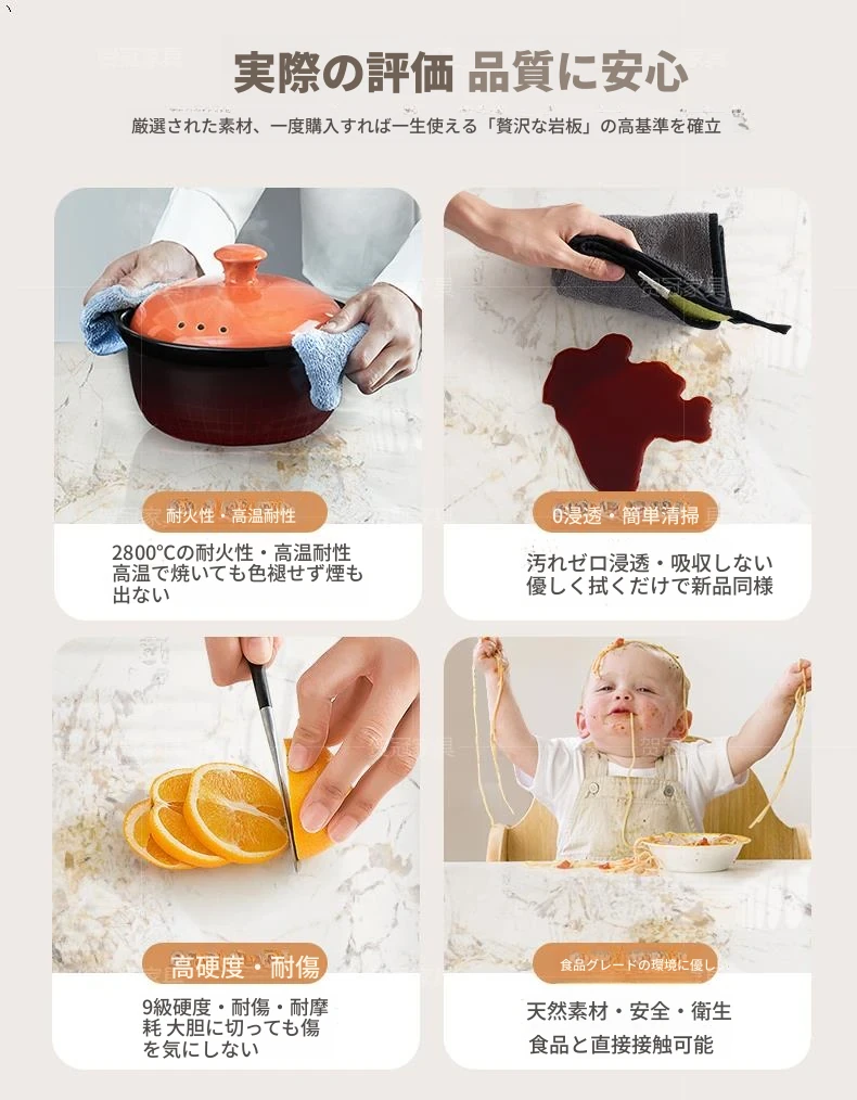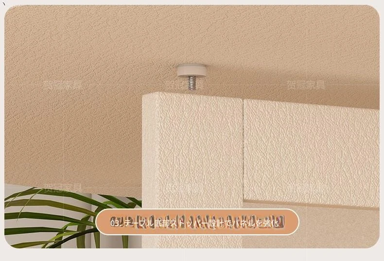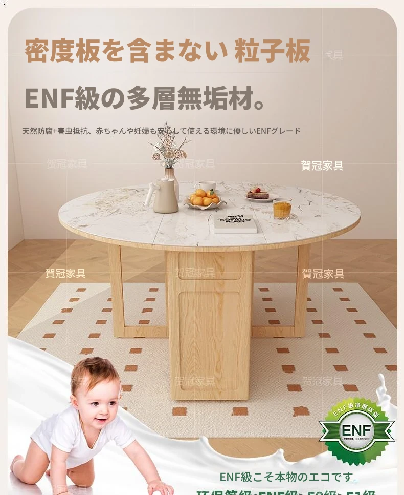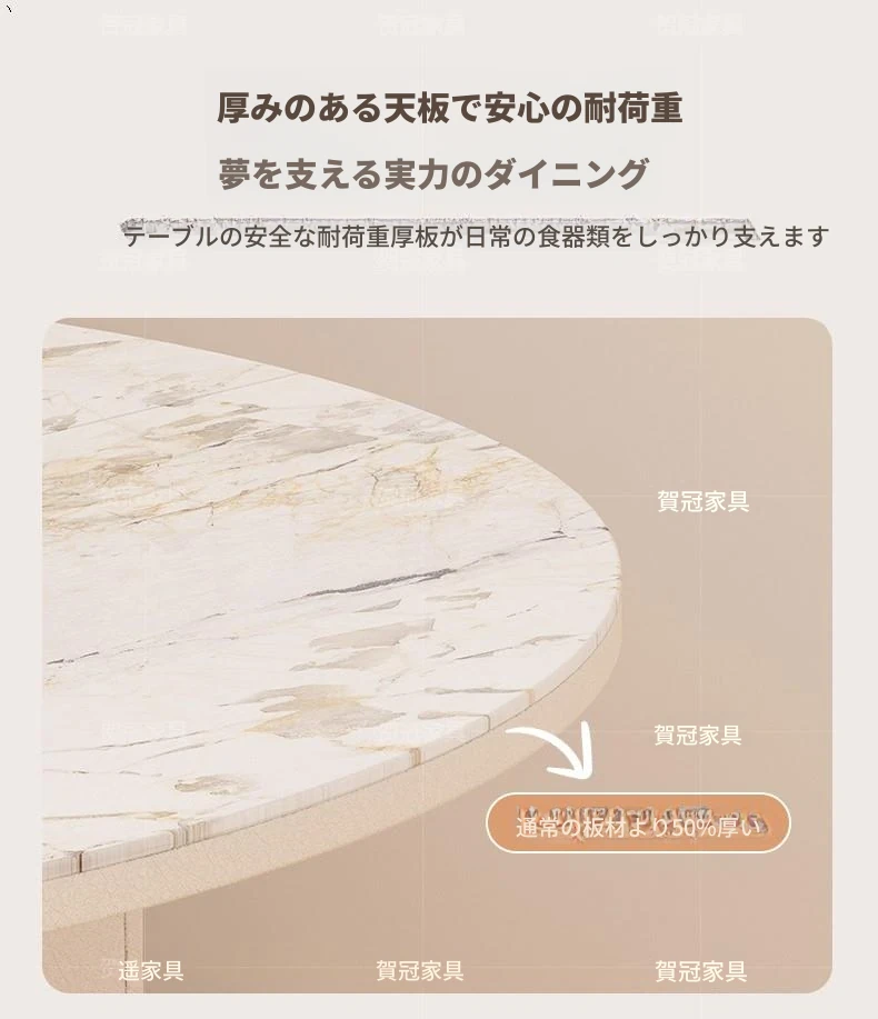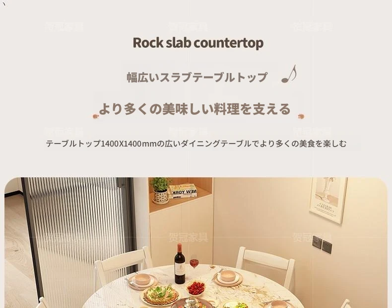 1.4メートル実木岩板円形折りたたみダイニングテーブル【肌感皮纹クリーム色】+電磁炉