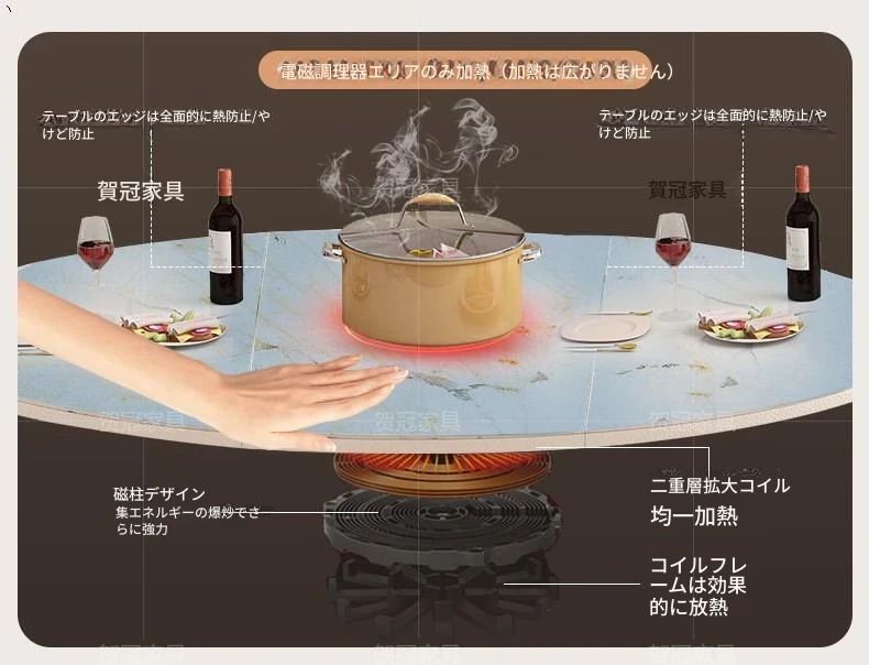 1.4メートル実木岩板円形折りたたみダイニングテーブル【五防抗菌高級黒】+電磁炉