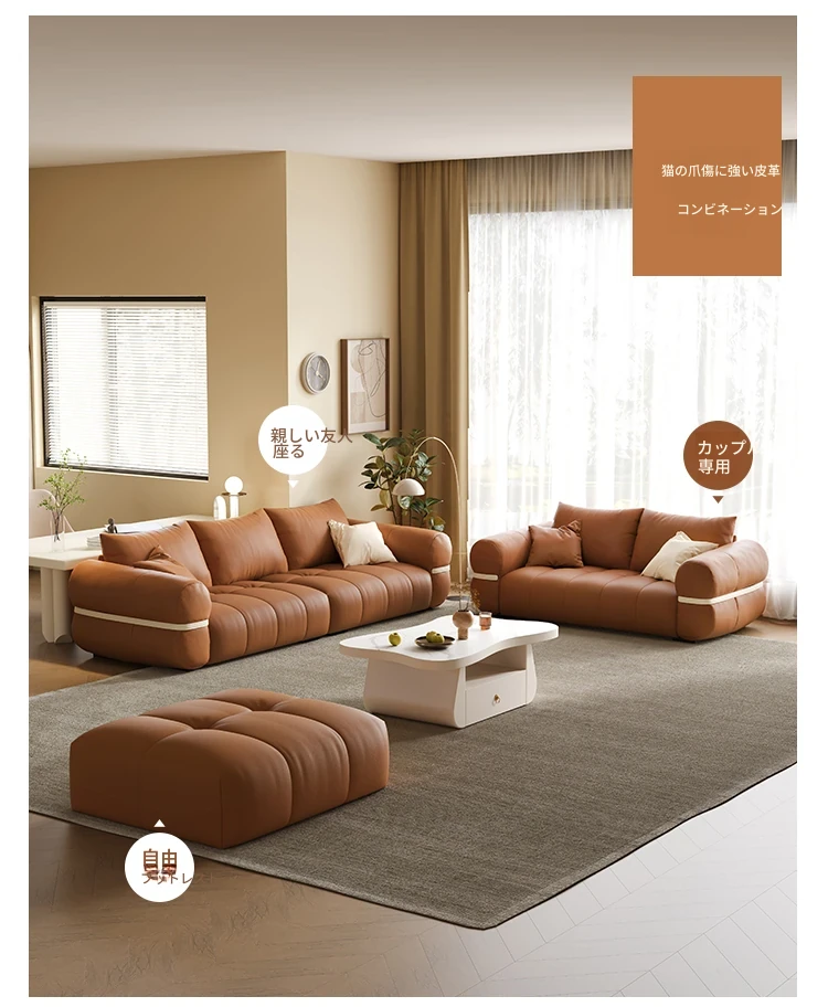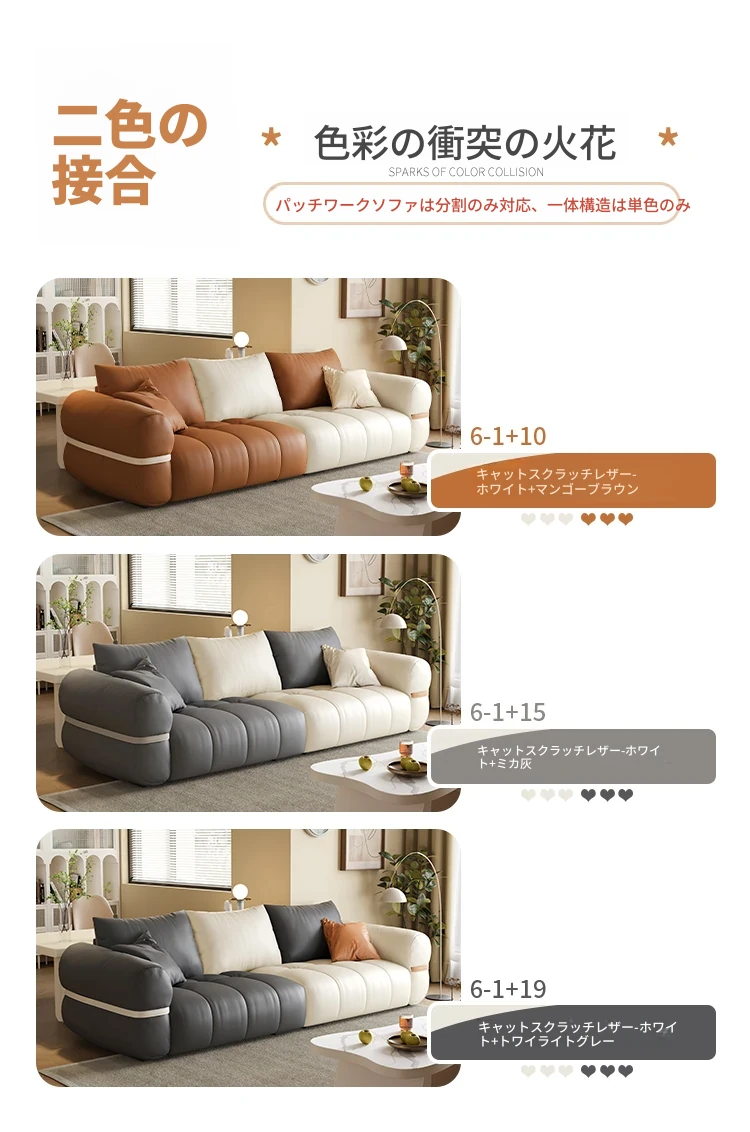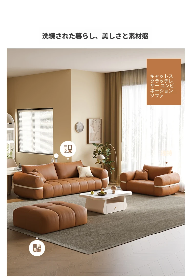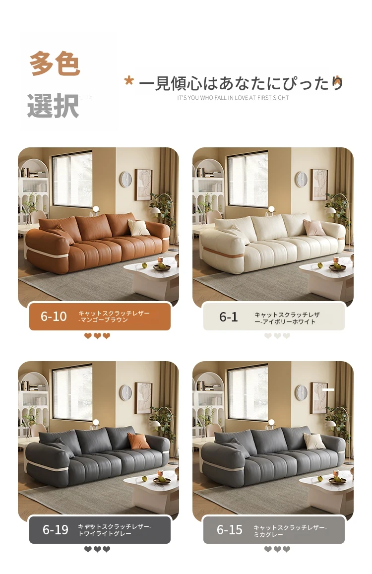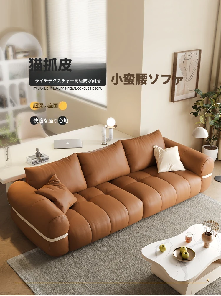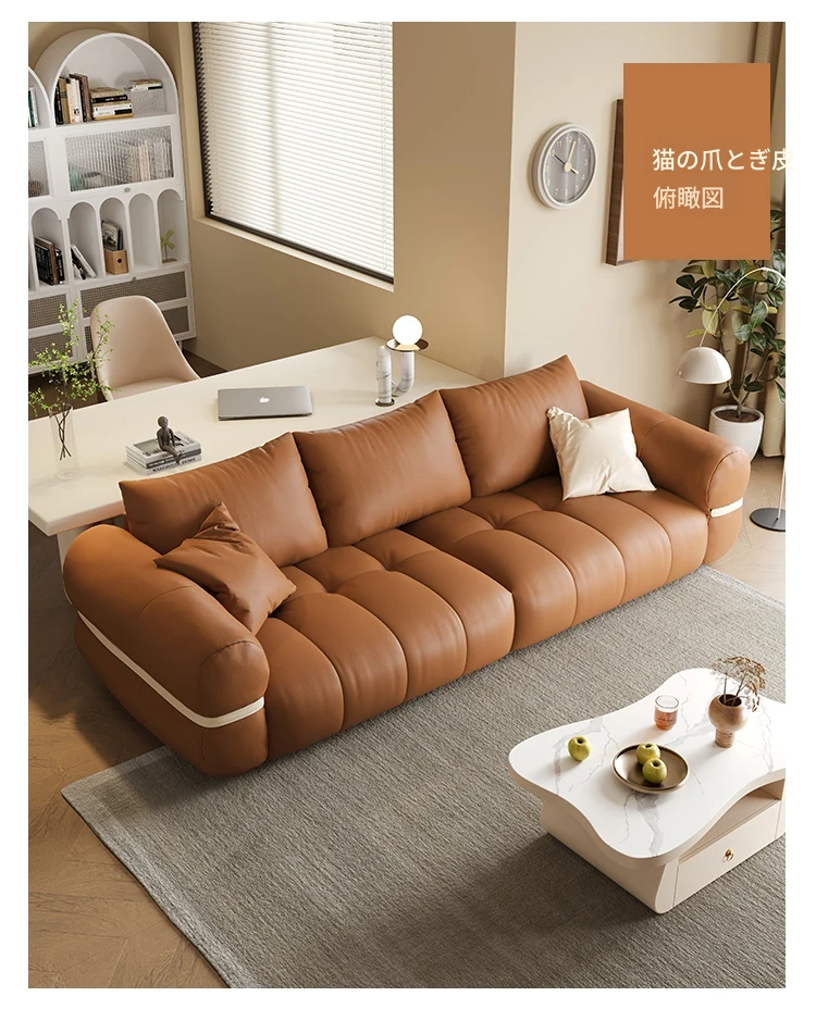 クリーミー風のトレンド感あふれるラグジュアリーなミニマリストデザイン!新作リビングルーム用キャットスクラッチレザーソファ。シンプルでモダン、三〜四人用、小さな部屋にぴったりです!