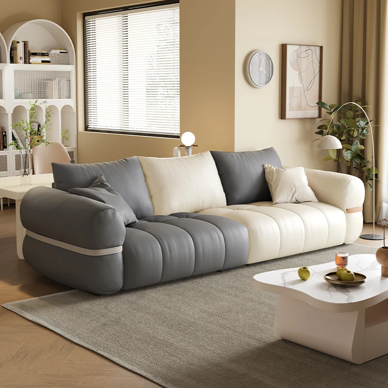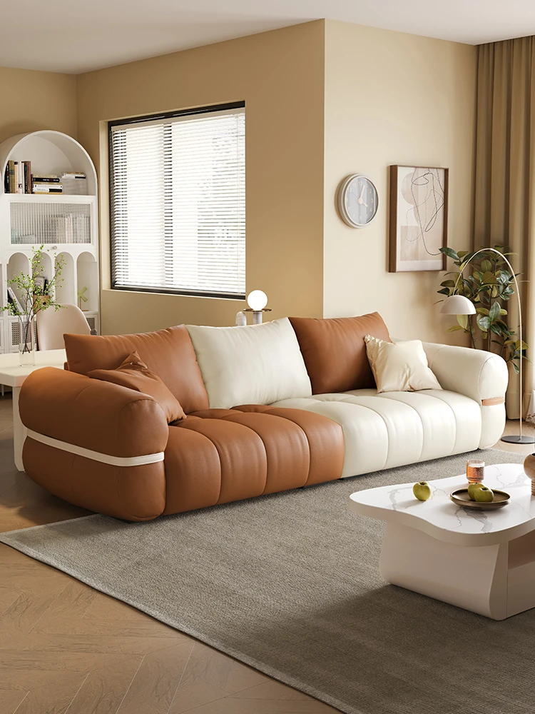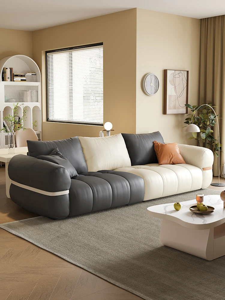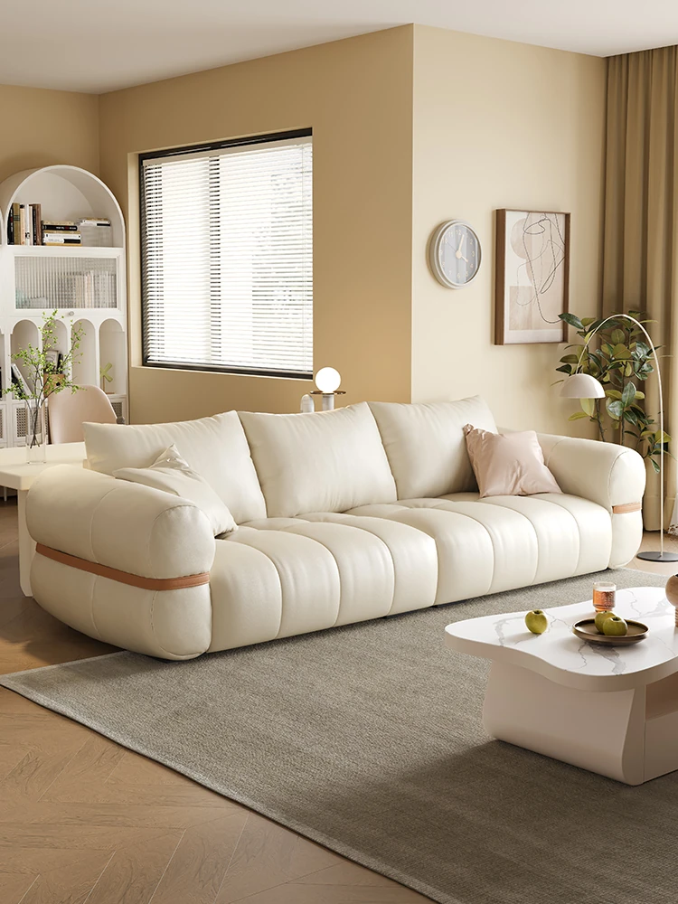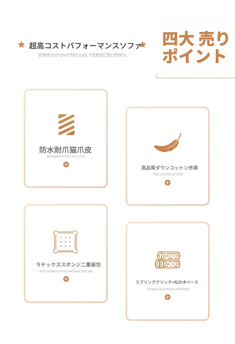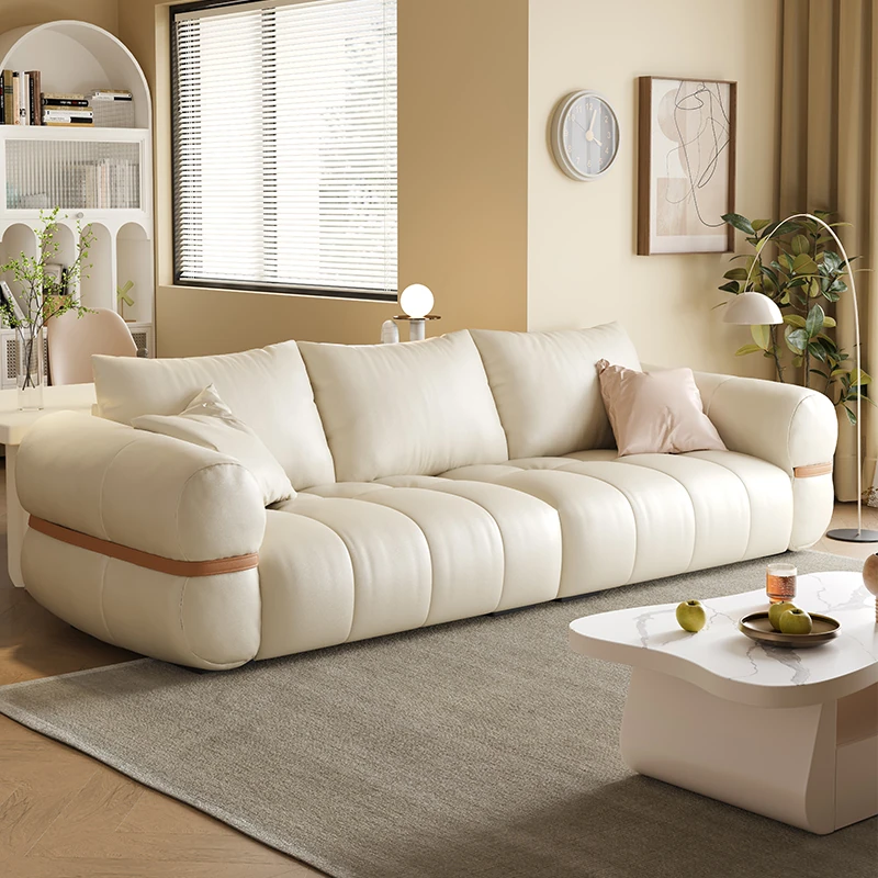クリーミー風のトレンド感あふれるラグジュアリーなミニマリストデザイン!新作リビングルーム用キャットスクラッチレザーソファ。シンプルでモダン、三〜四人用、小さな部屋にぴったりです!