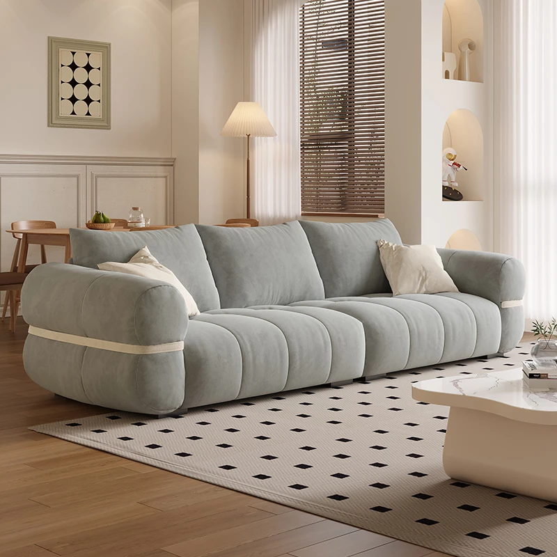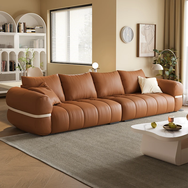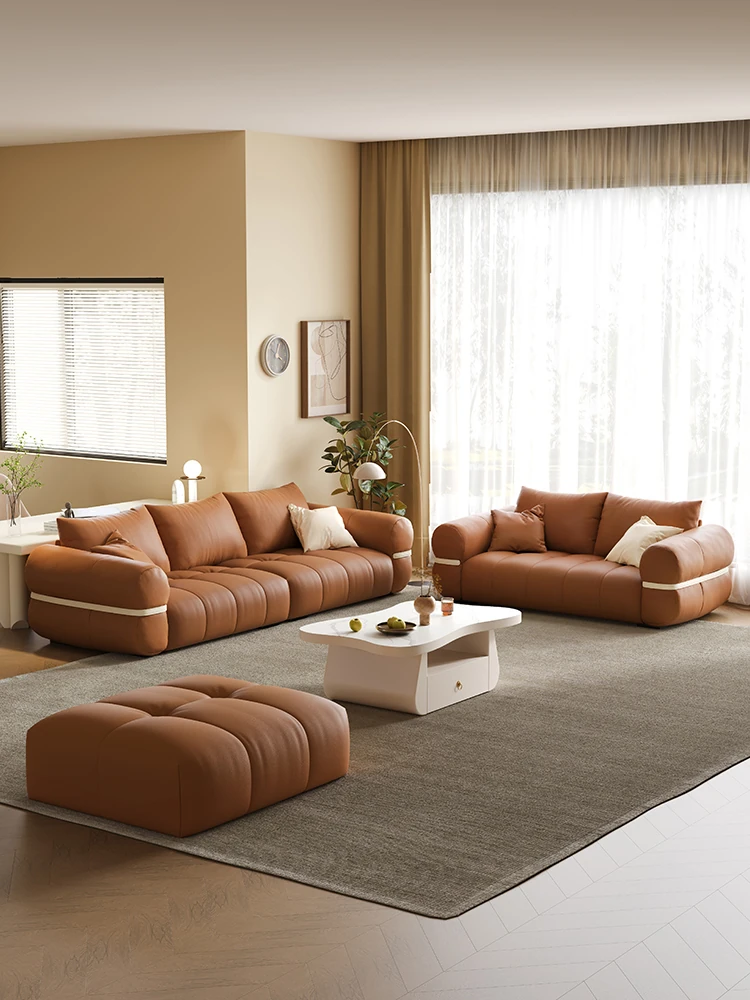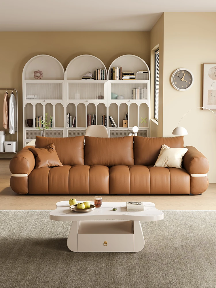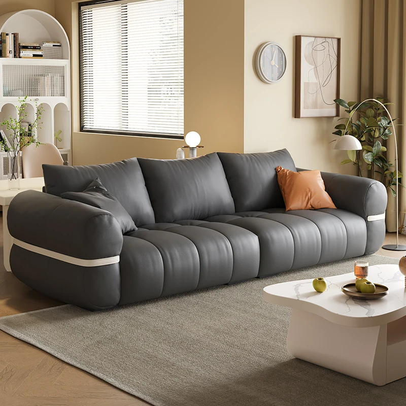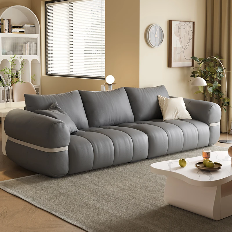クリーミー風のトレンド感あふれるラグジュアリーなミニマリストデザイン!新作リビングルーム用キャットスクラッチレザーソファ。シンプルでモダン、三〜四人用、小さな部屋にぴったりです!