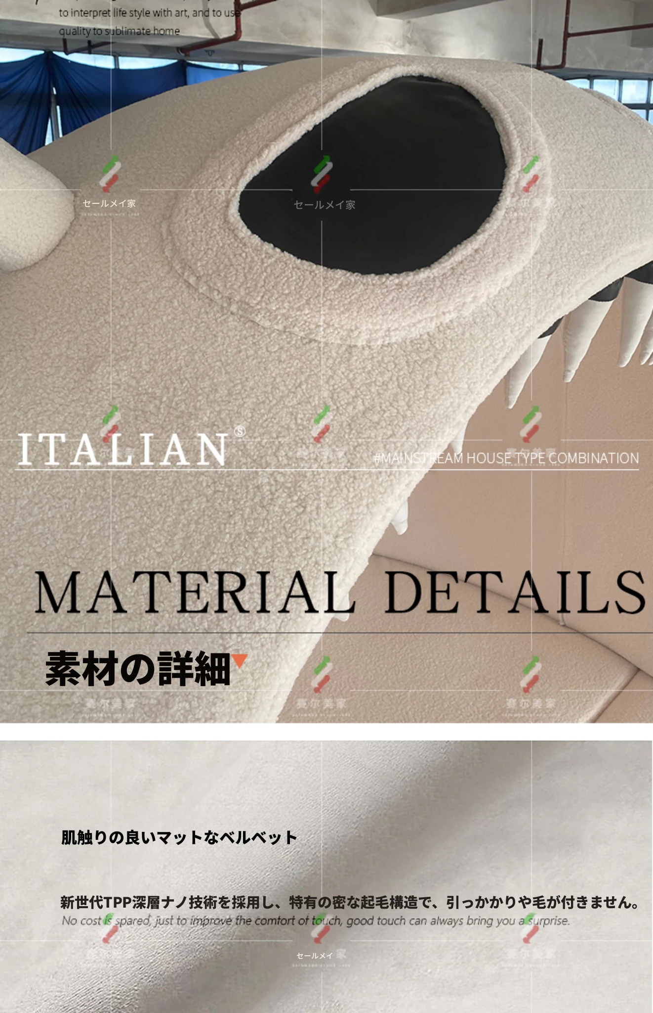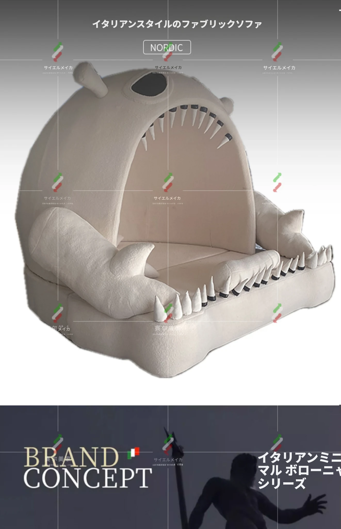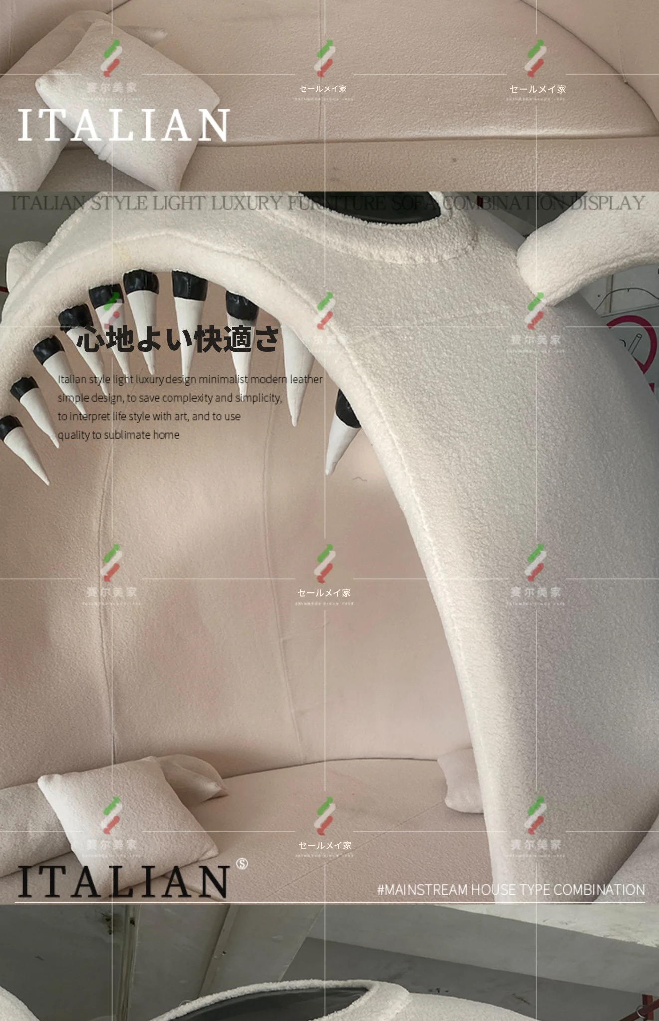 【香港送料無料】イタリアンラグジュアリー風 カラーブロックソファ 大きな象耳デザイン クラシッククリーム色 テクノロジーファブリック使用 モダンで洗練されたスタイル